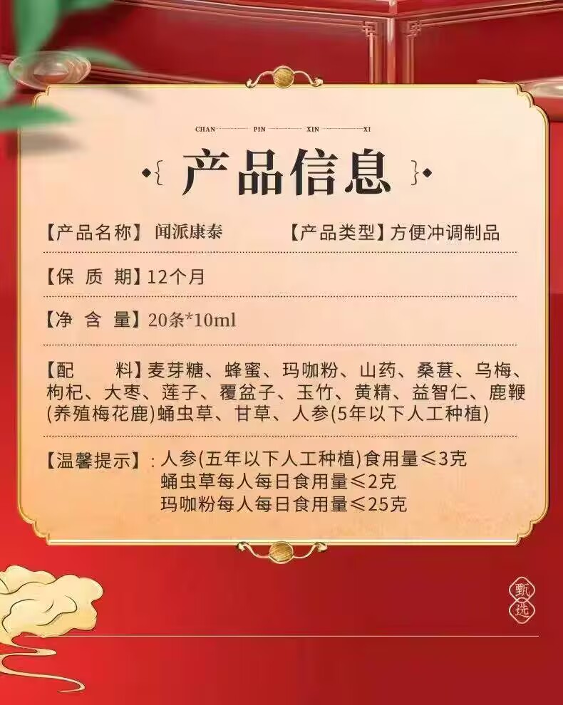 闻派康泰可以提升精气神,含有鹿鞭,鹿血,黄精等等中药成分,这些成分里面含有比较丰富的营养,滋补身体效果是比较好的,服用以后可以缓解人体的疲劳,男性在大量运动后或者生活压力过大时都会产生疲惫感,通过服用闻派康泰能够有效的增强男性体力和经历,补充身体元气,从而清除疲惫感,对改善身体疲劳感具有较好的效果。