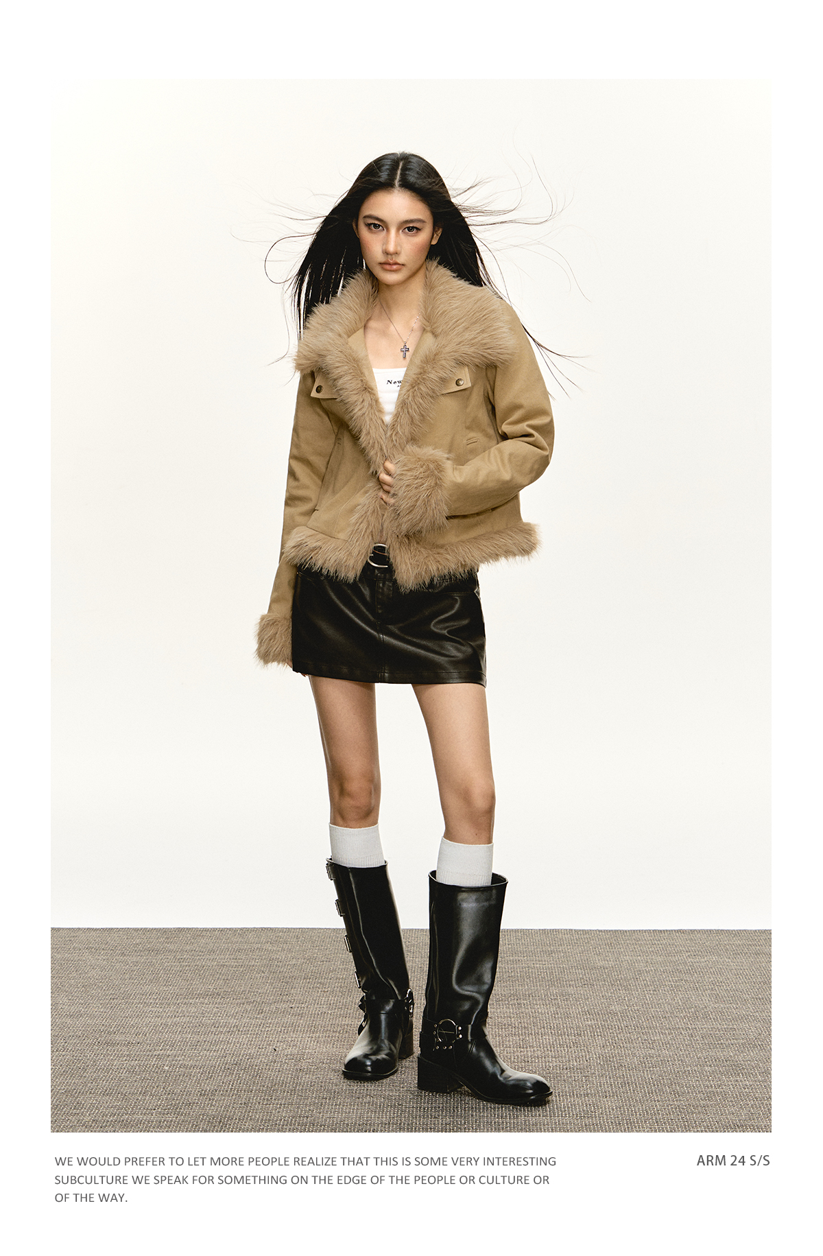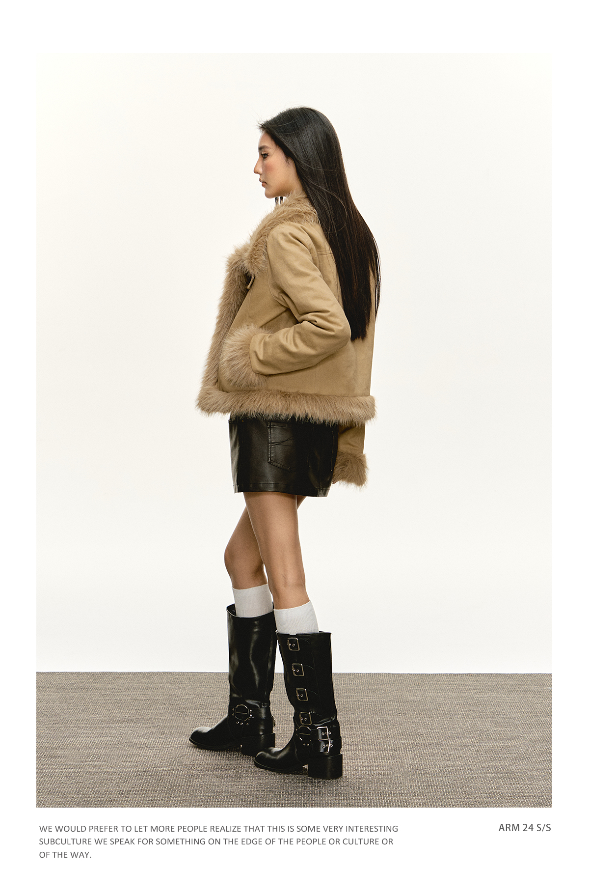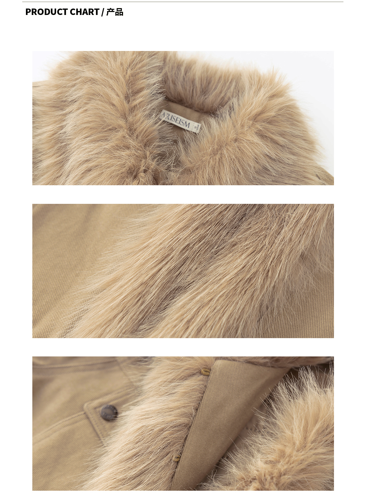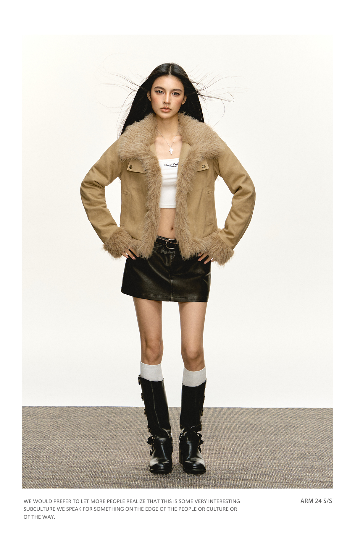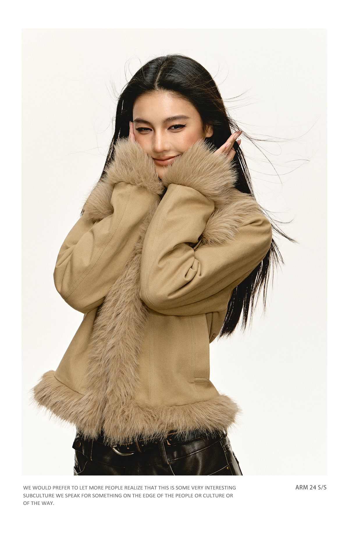 Ariseism 美式复古高级感带毛领毛毛外套女秋冬新款修身上衣