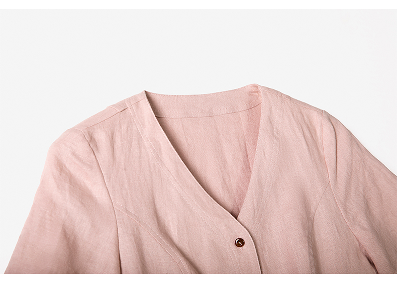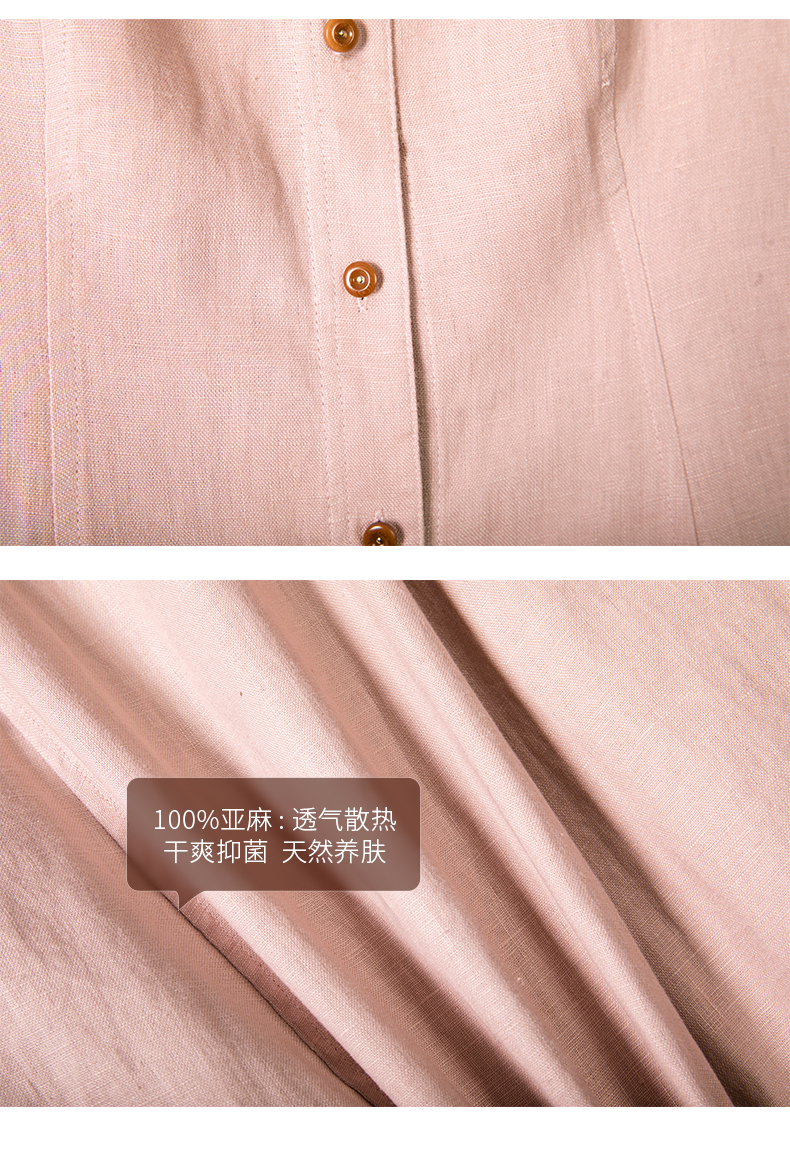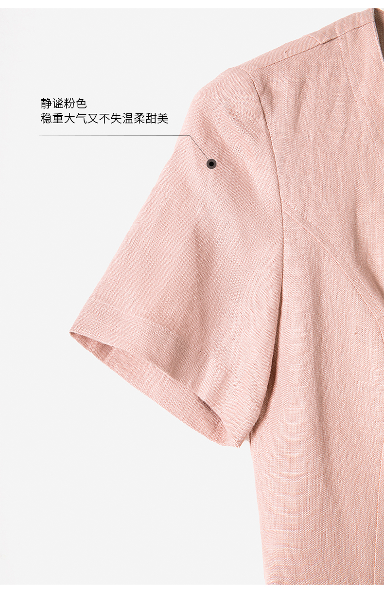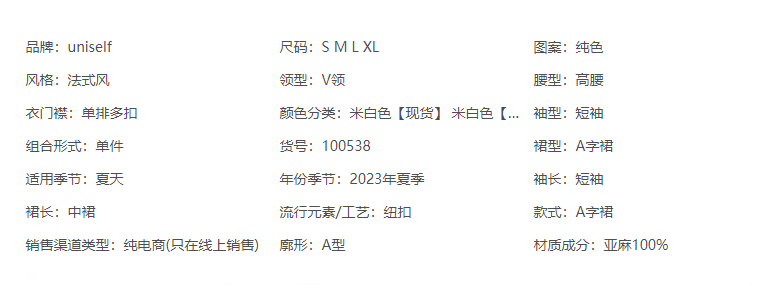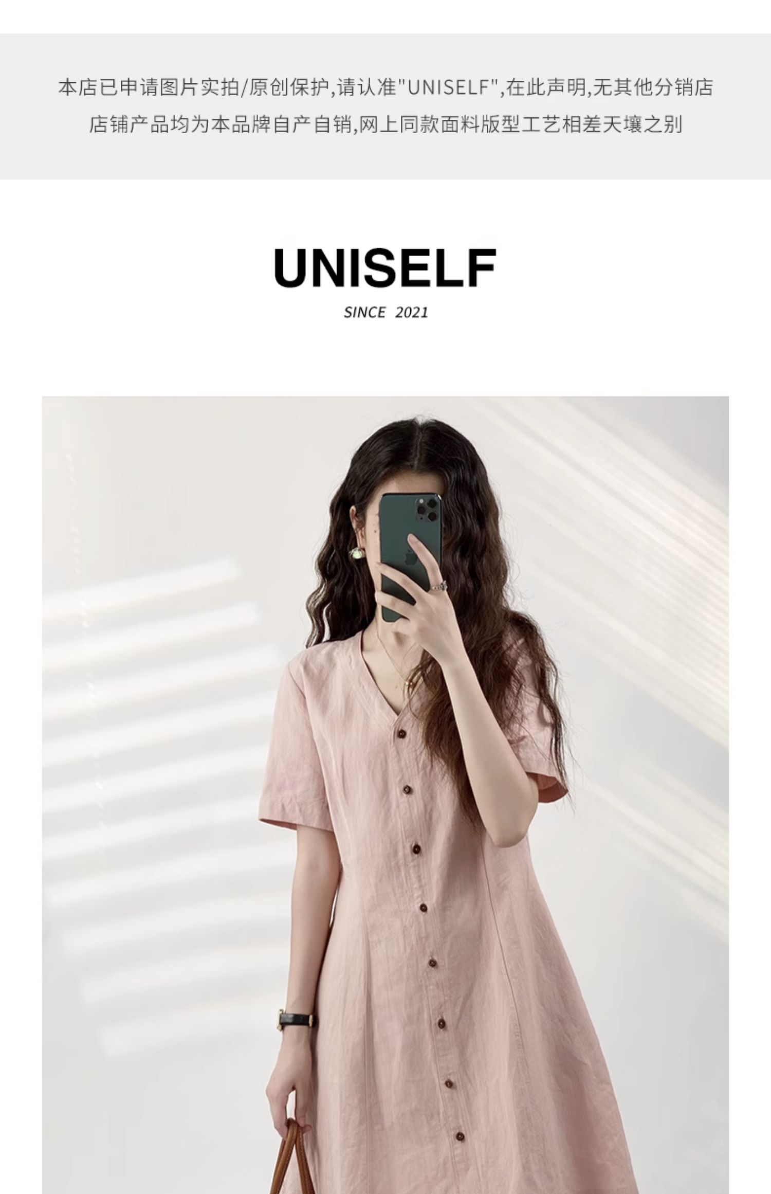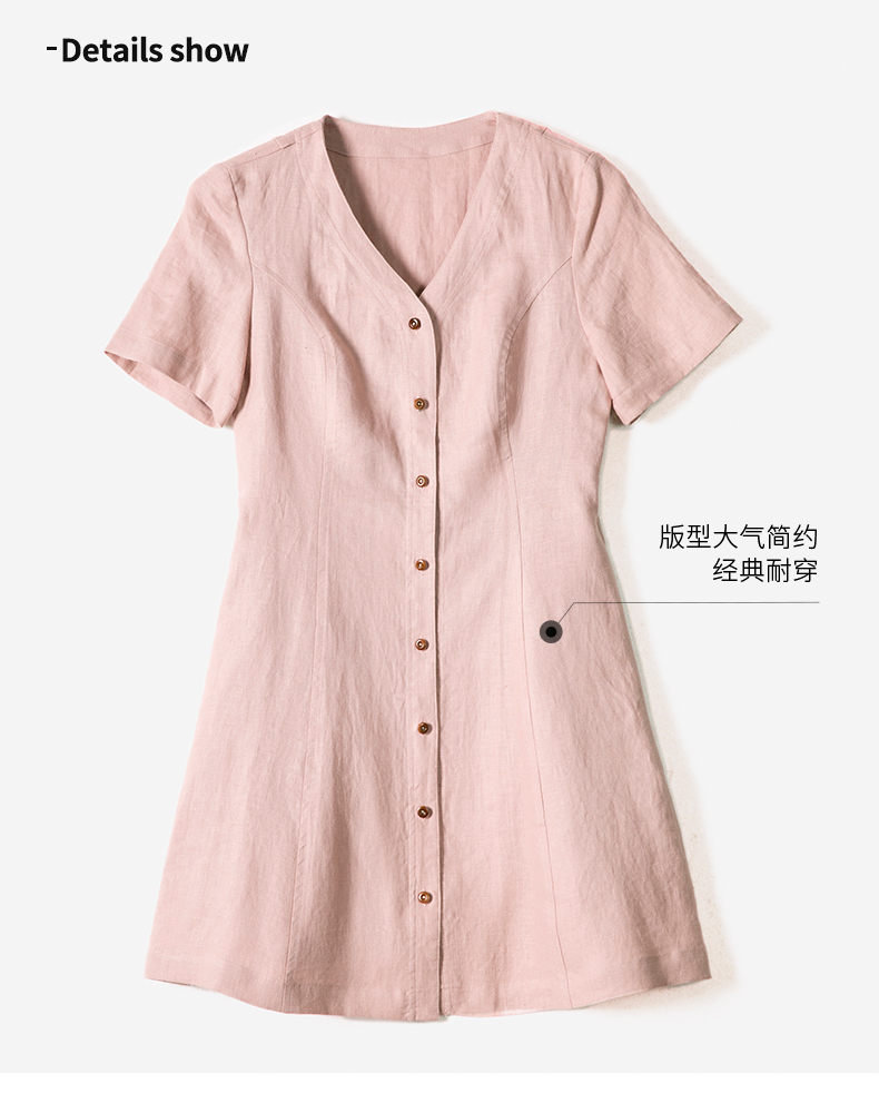 YX【现货7天】法式通勤气质亚麻连衣裙女2023夏季新款设计感单排扣短袖a字裙
