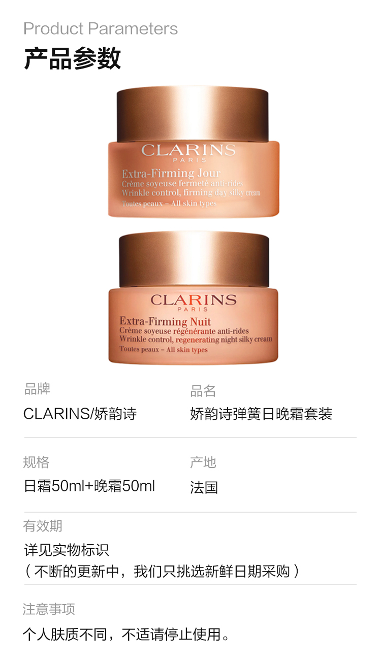 【航免仓】CLARINS娇韵诗焕颜弹力日霜50ml+晚霜50ml(版本随机发货)