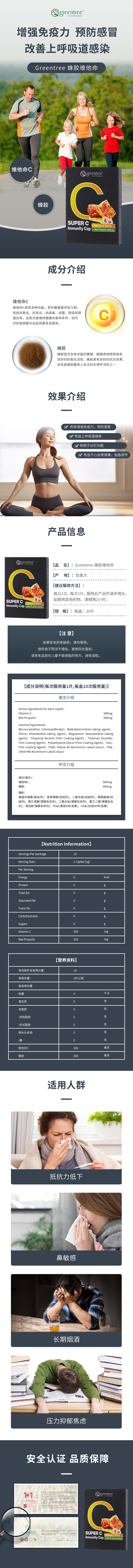 【香港直邮】増强免疫力舒缓感冒加拿大greentree维他命C+蜂胶(10粒)