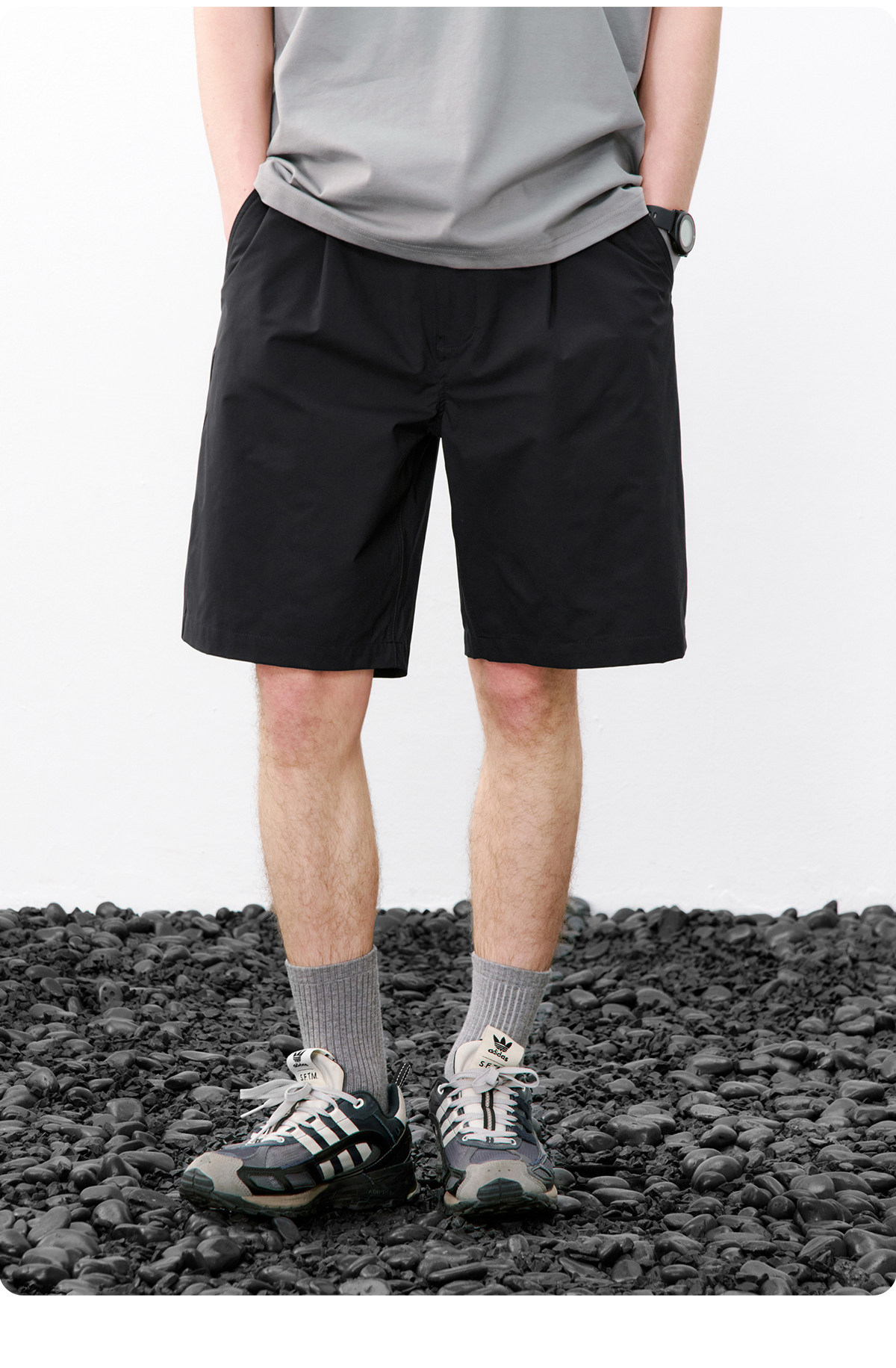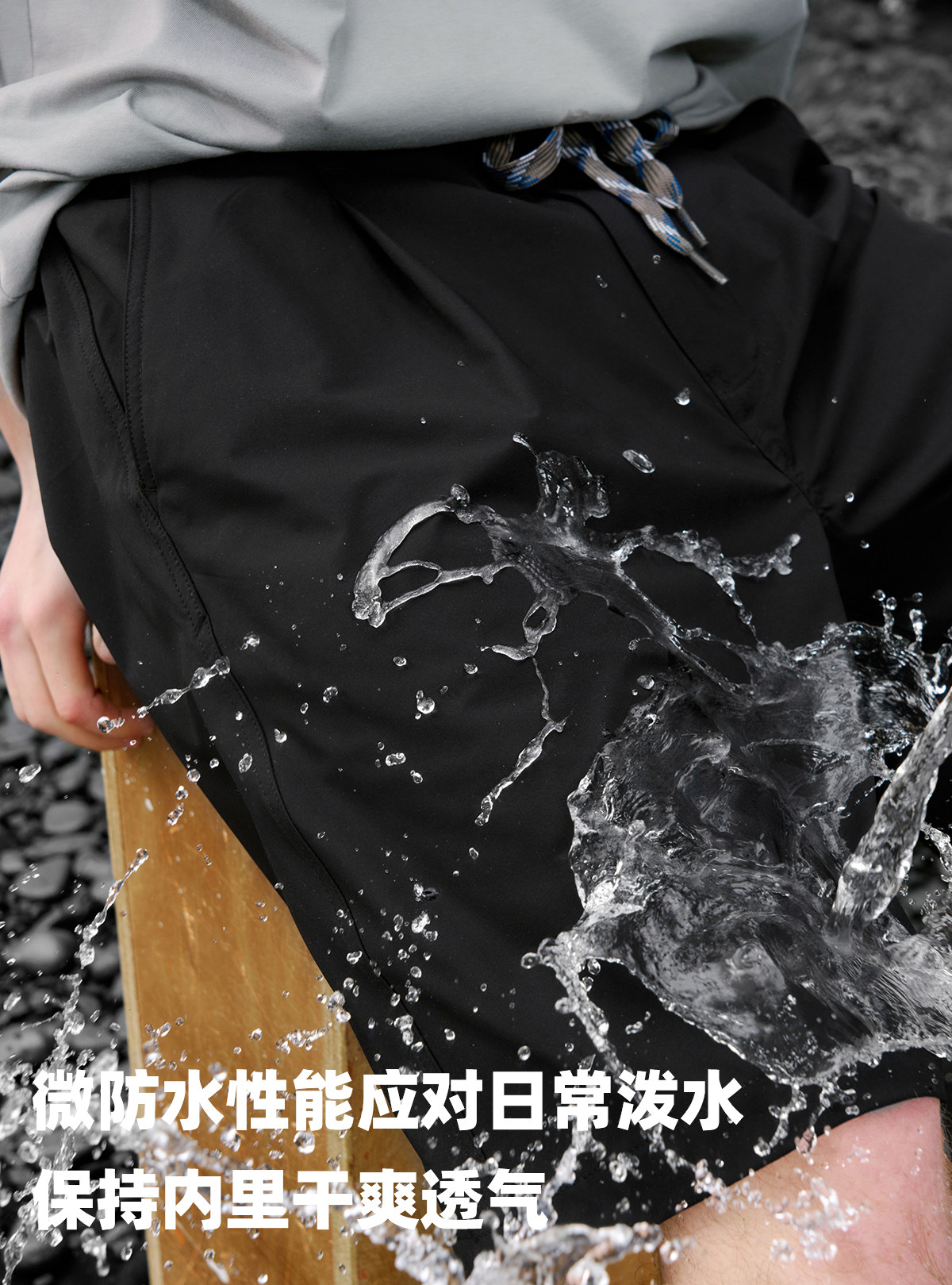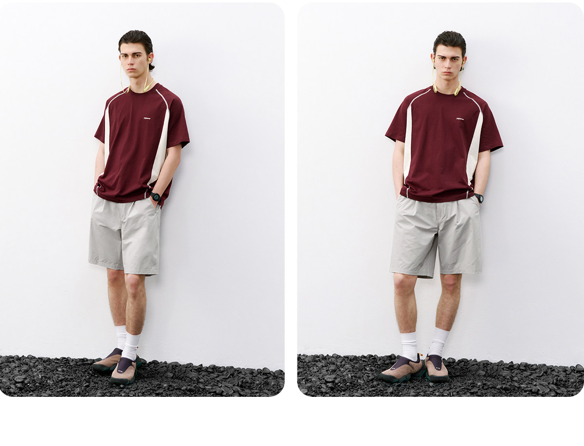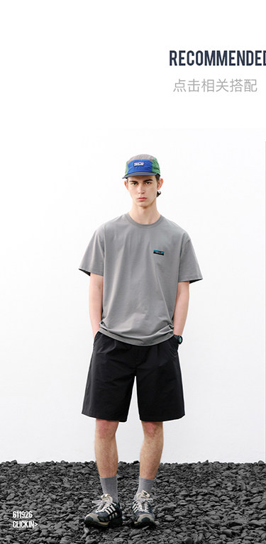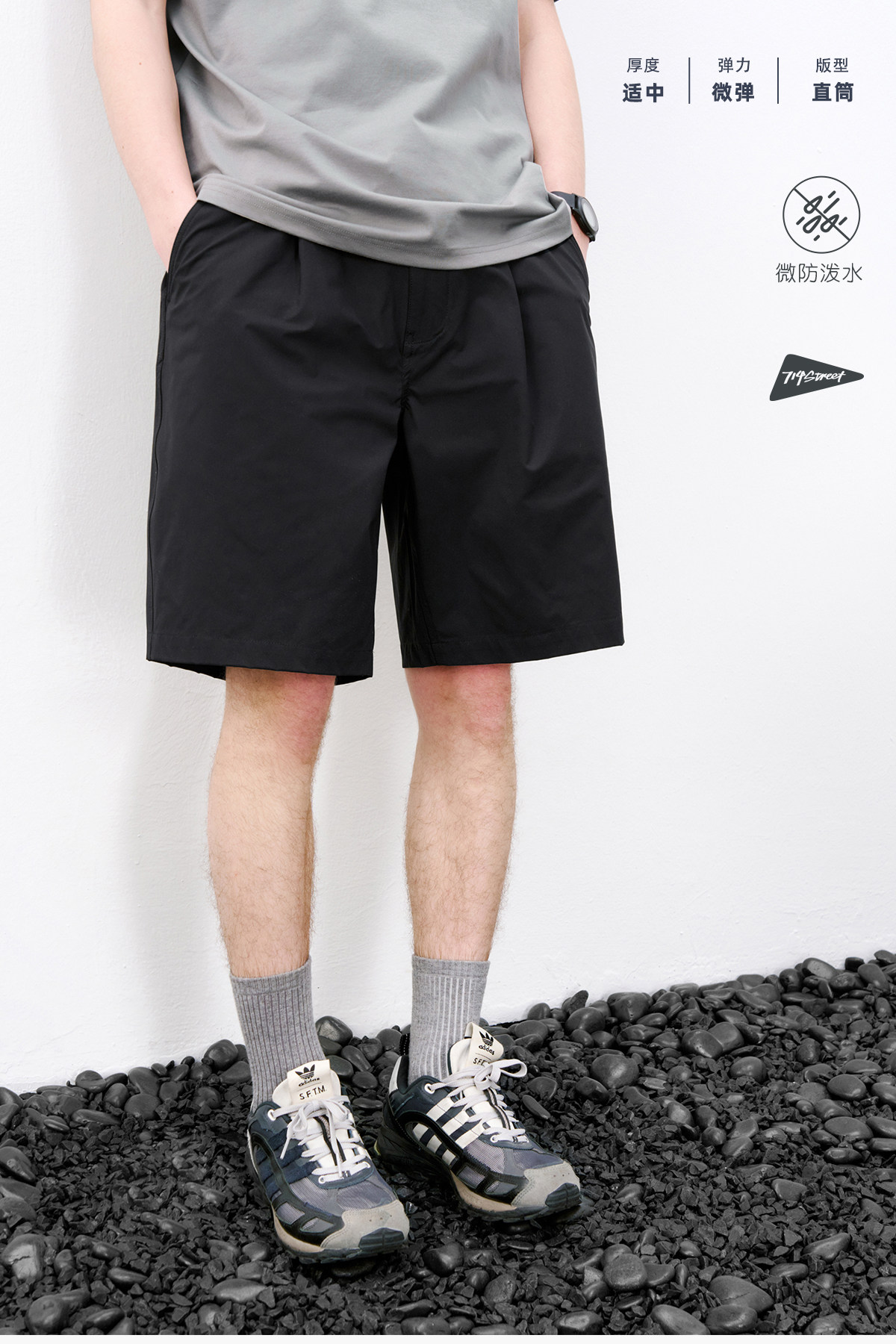 714street休闲立体剪裁打褶短裤男2026夏季防水松紧腰宽松直筒裤