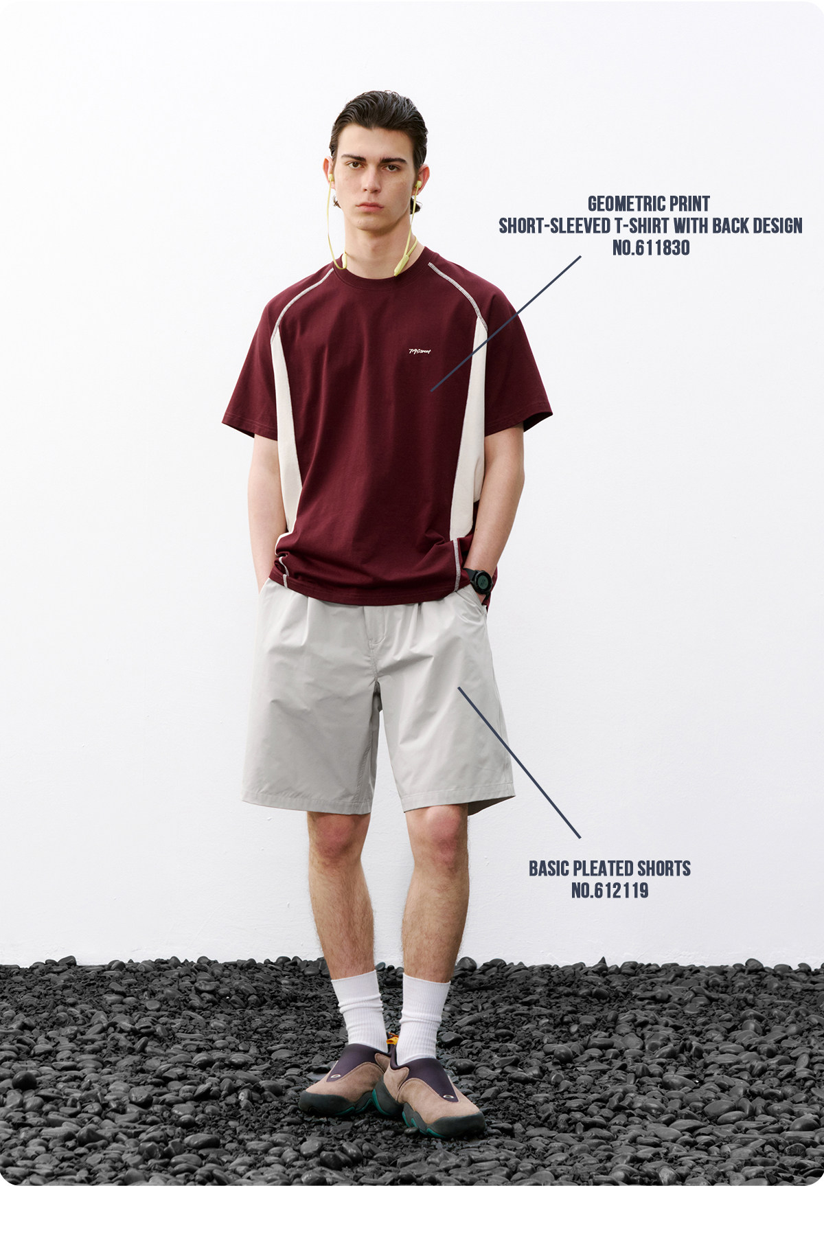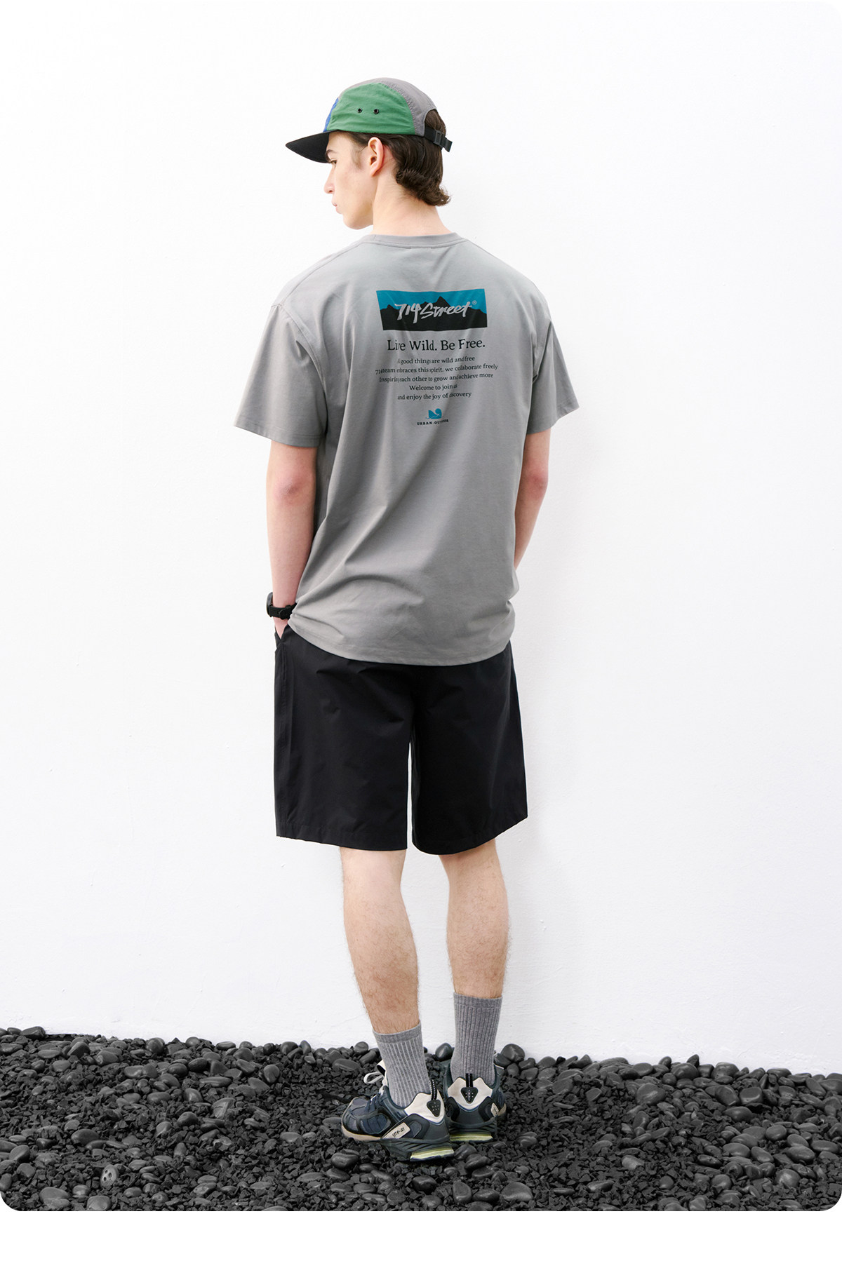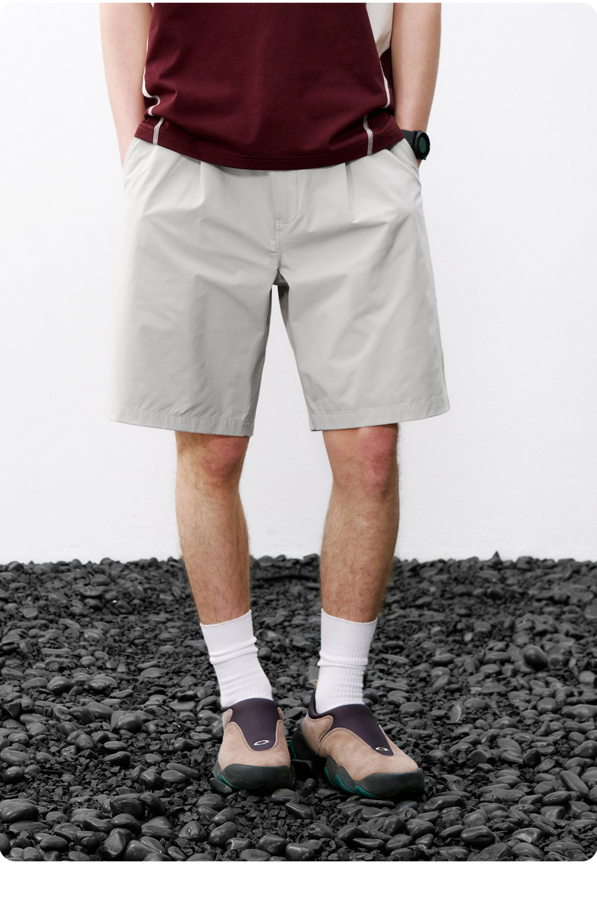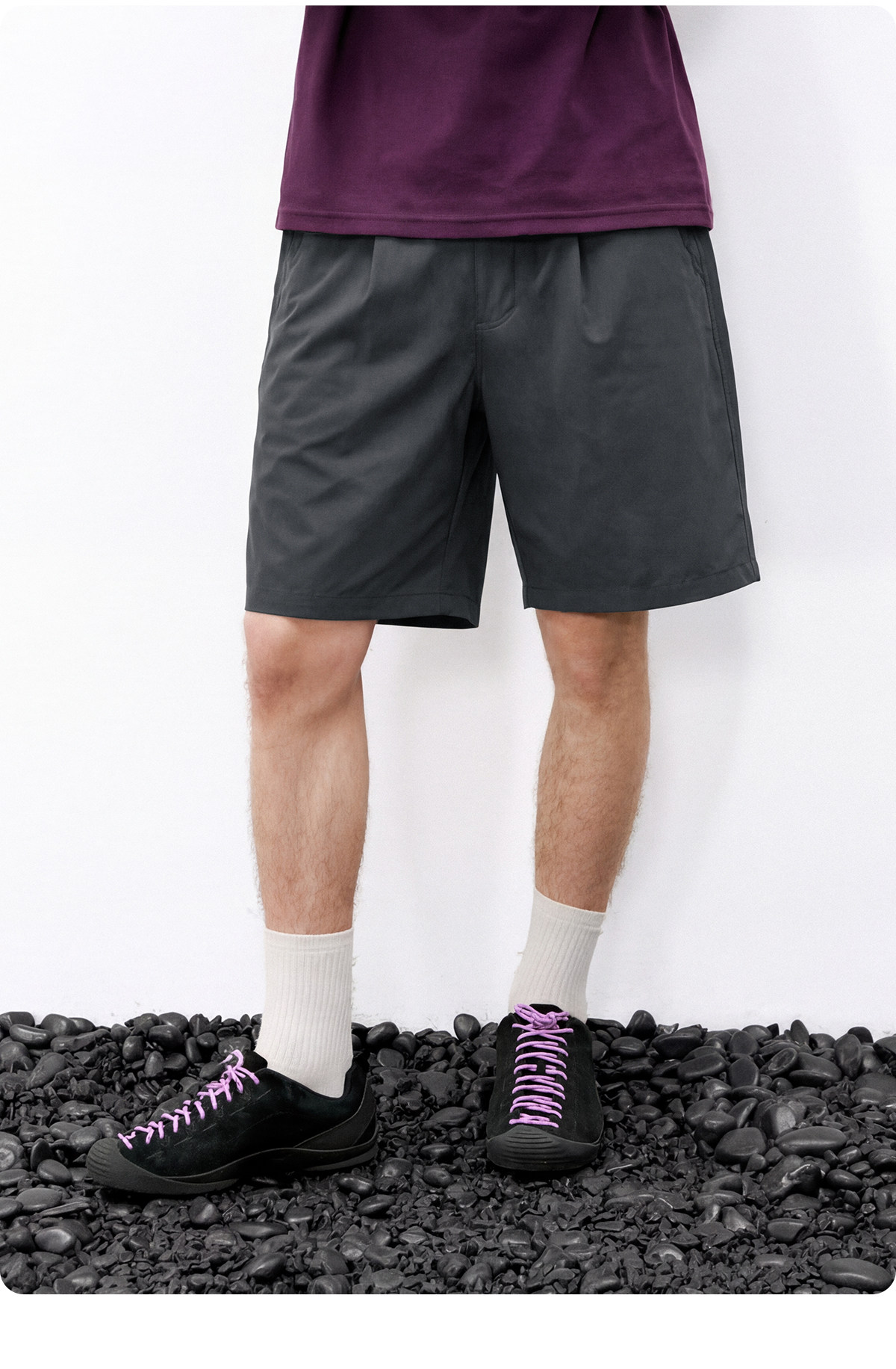 714street休闲立体剪裁打褶短裤男2026夏季防水松紧腰宽松直筒裤