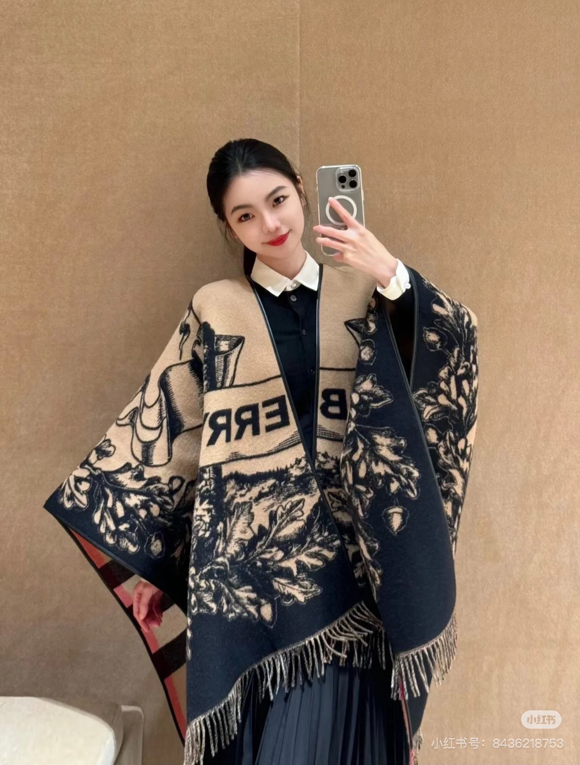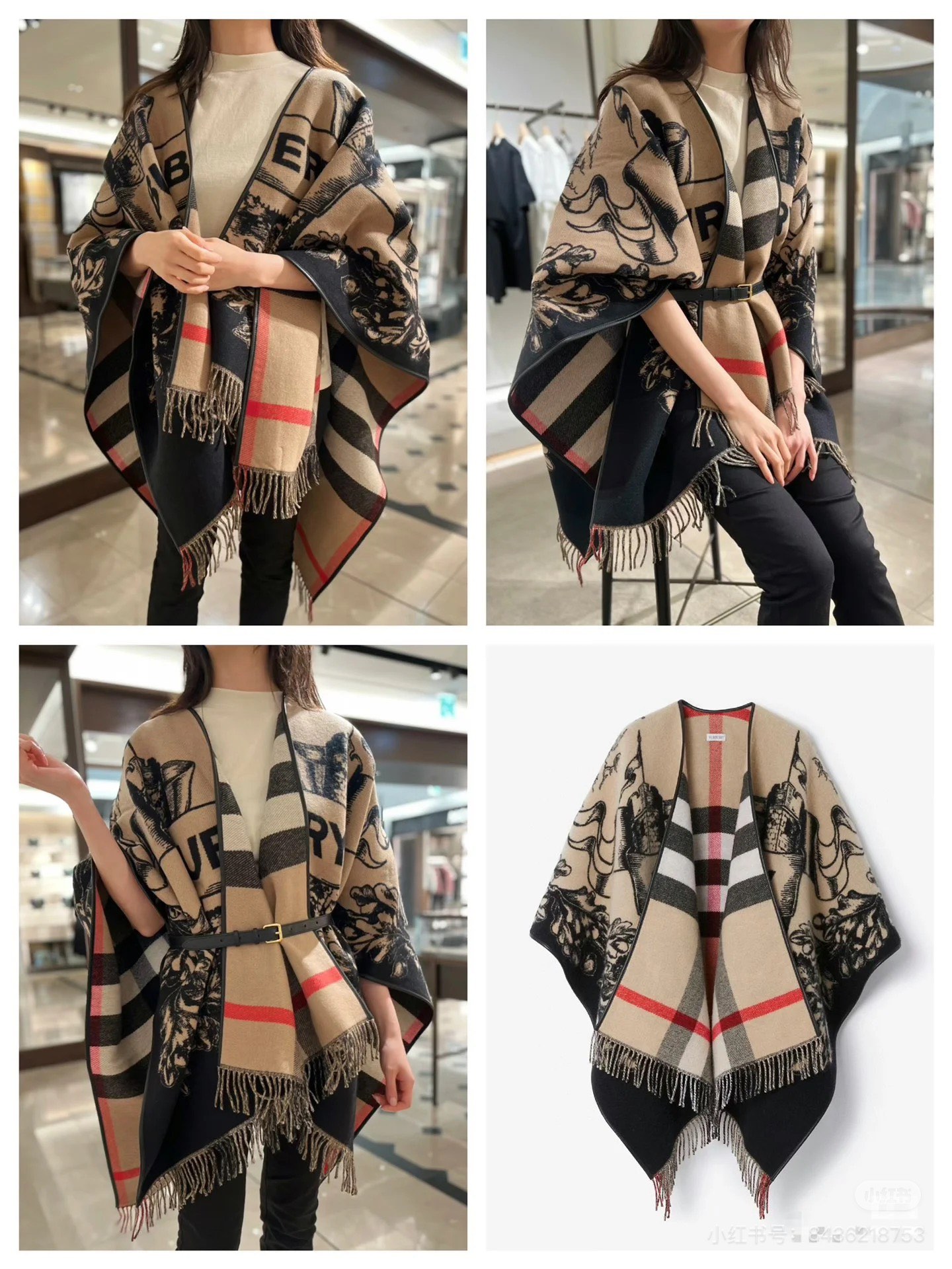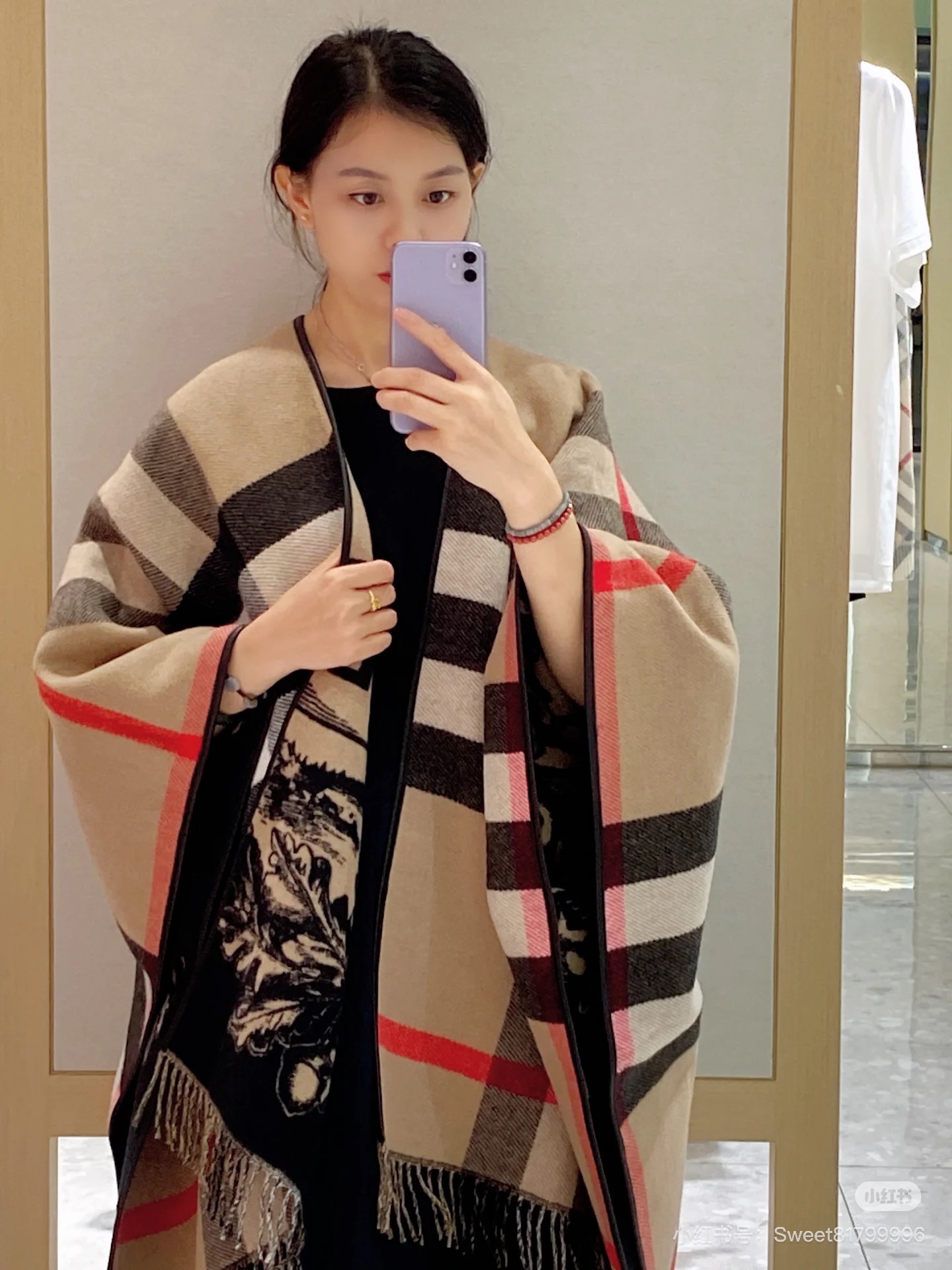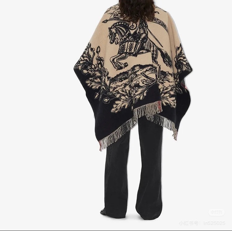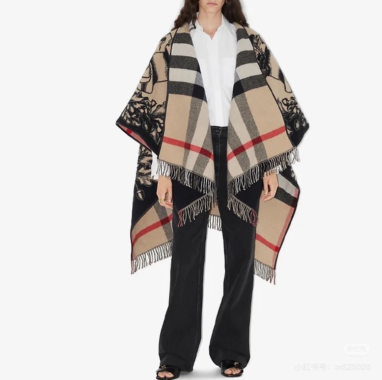 𝐁𝐔𝐑𝐁𝐄𝐑𝐑𝐘 · 新《战马双面斗篷》美拉德色 · - 130x155cm 成份 100%羊绒 爆款斗篷🔥 冬日必备!精致小羊皮锁边-两面风格 一面战马刺绣图案搭配一面经典格纹,融入创新 比起单一的格纹Logo 更特别一些,美拉德深秋氛围感十足,百搭减龄