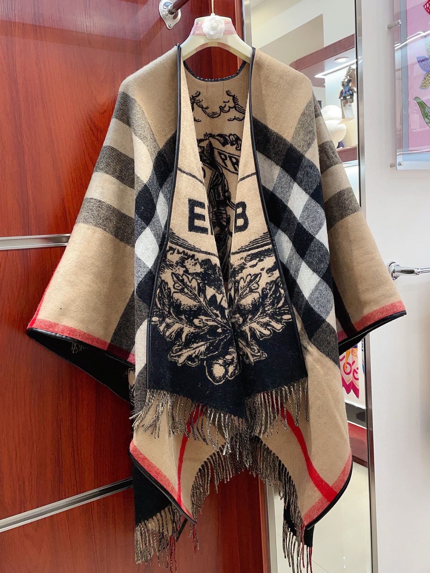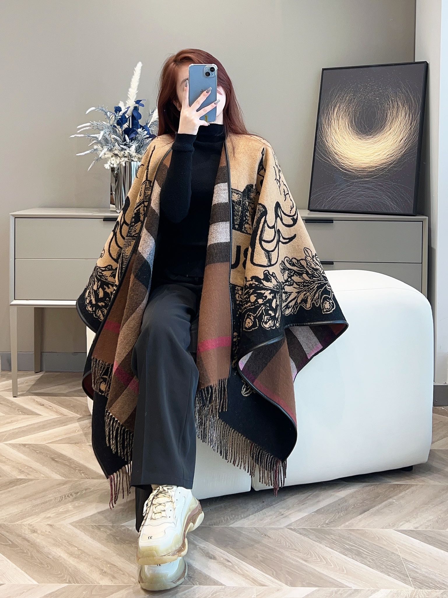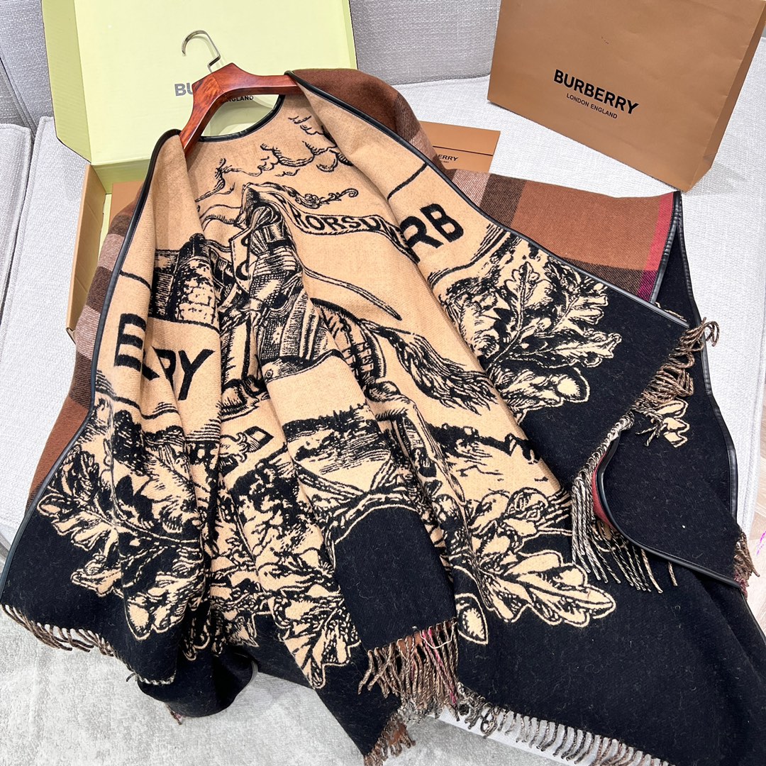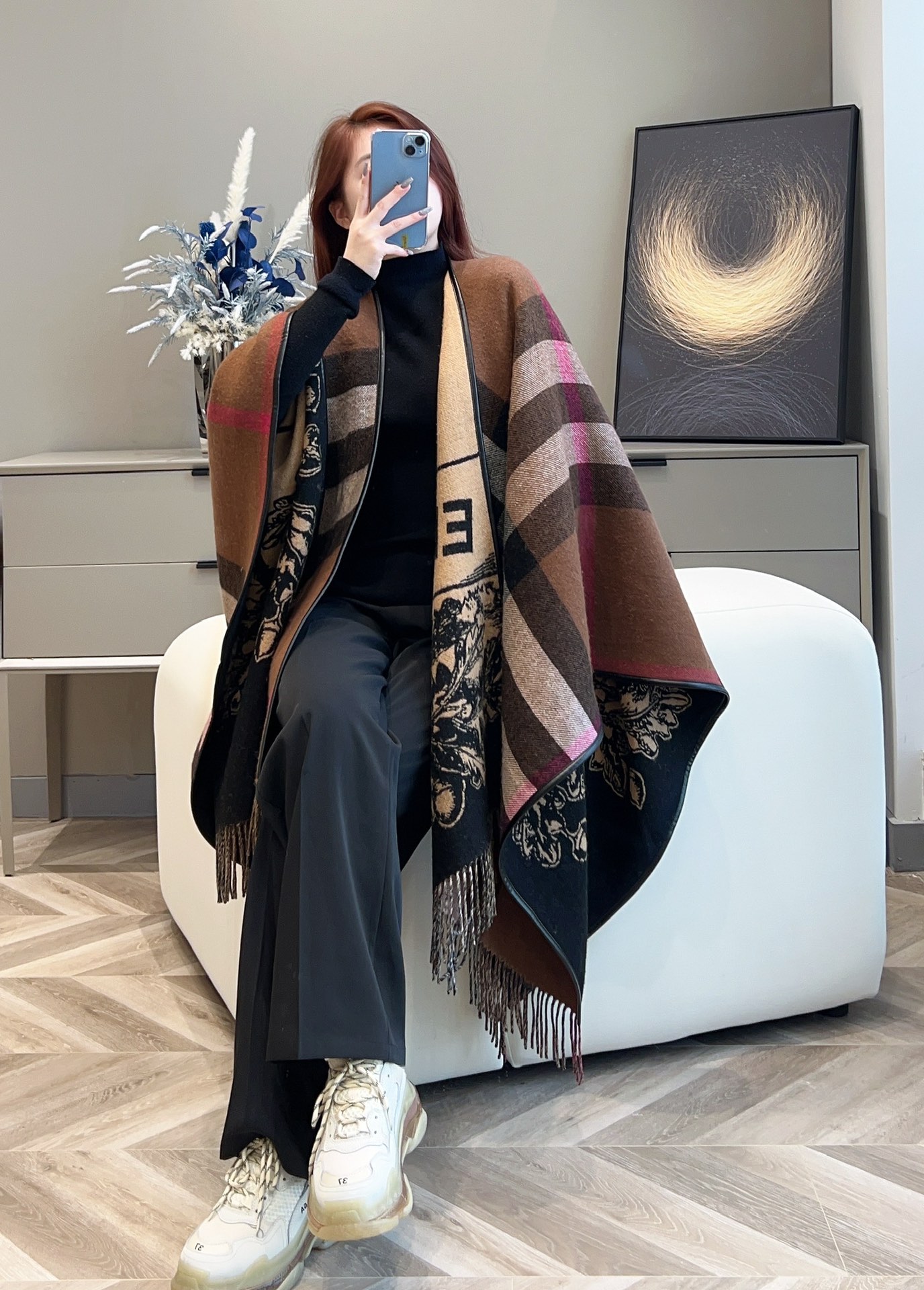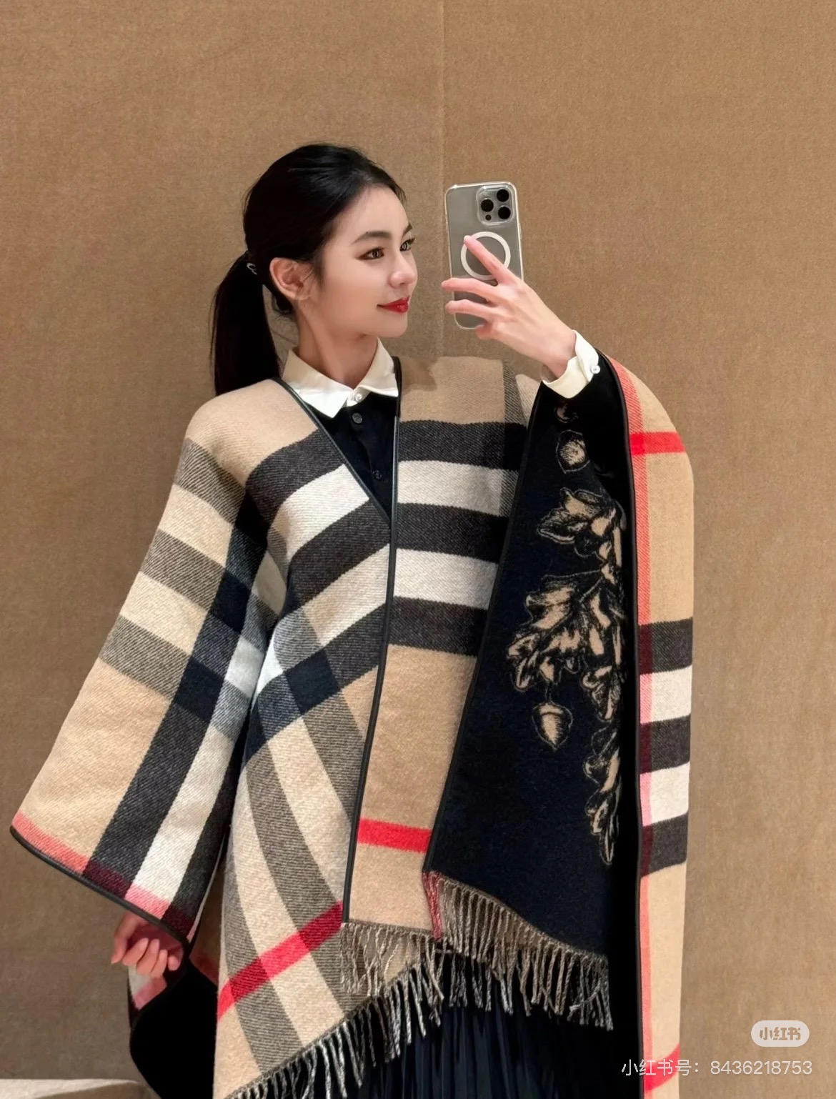 𝐁𝐔𝐑𝐁𝐄𝐑𝐑𝐘 · 新《战马双面斗篷》美拉德色 · - 130x155cm 成份 100%羊绒 爆款斗篷🔥 冬日必备!精致小羊皮锁边-两面风格 一面战马刺绣图案搭配一面经典格纹,融入创新 比起单一的格纹Logo 更特别一些,美拉德深秋氛围感十足,百搭减龄