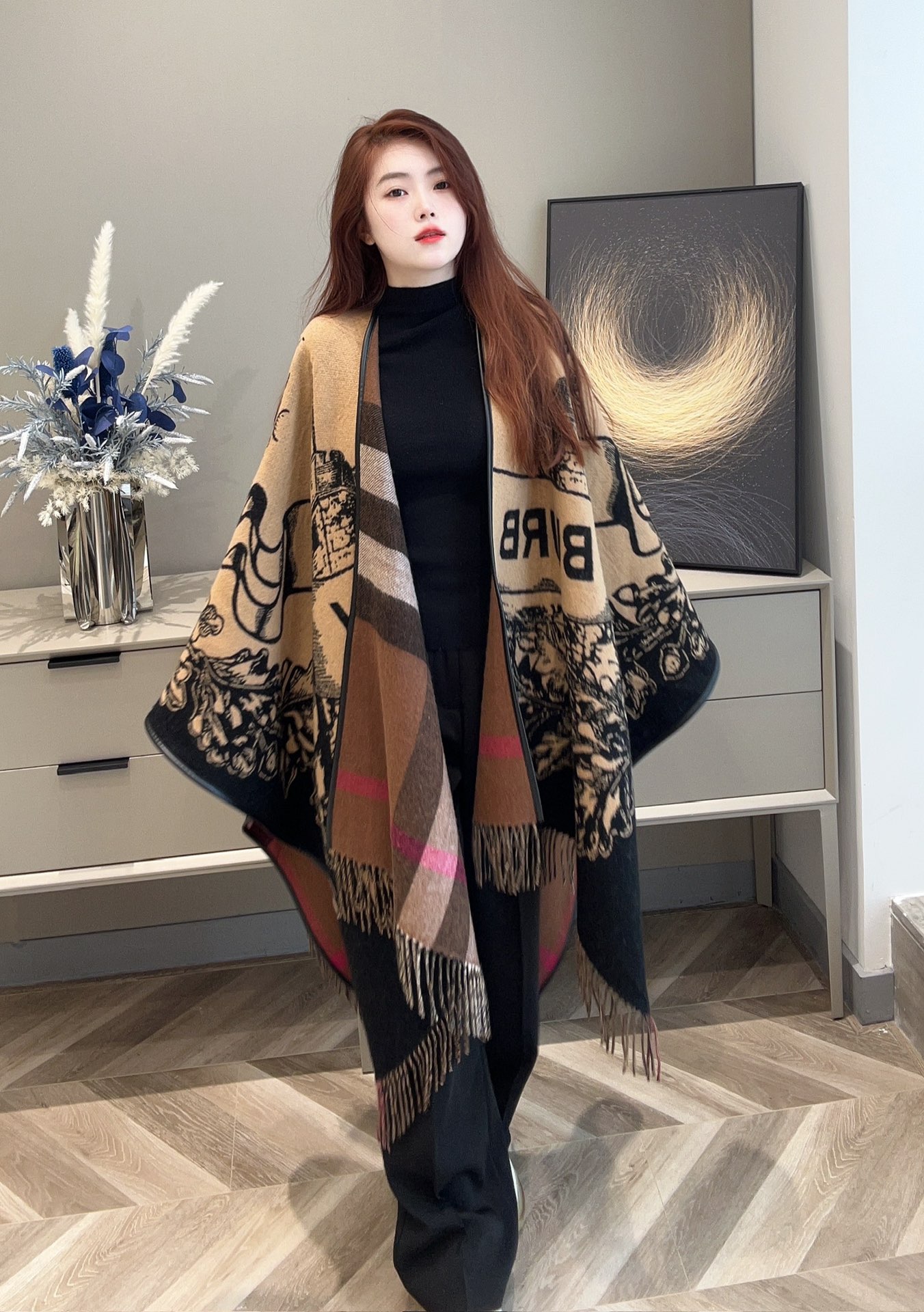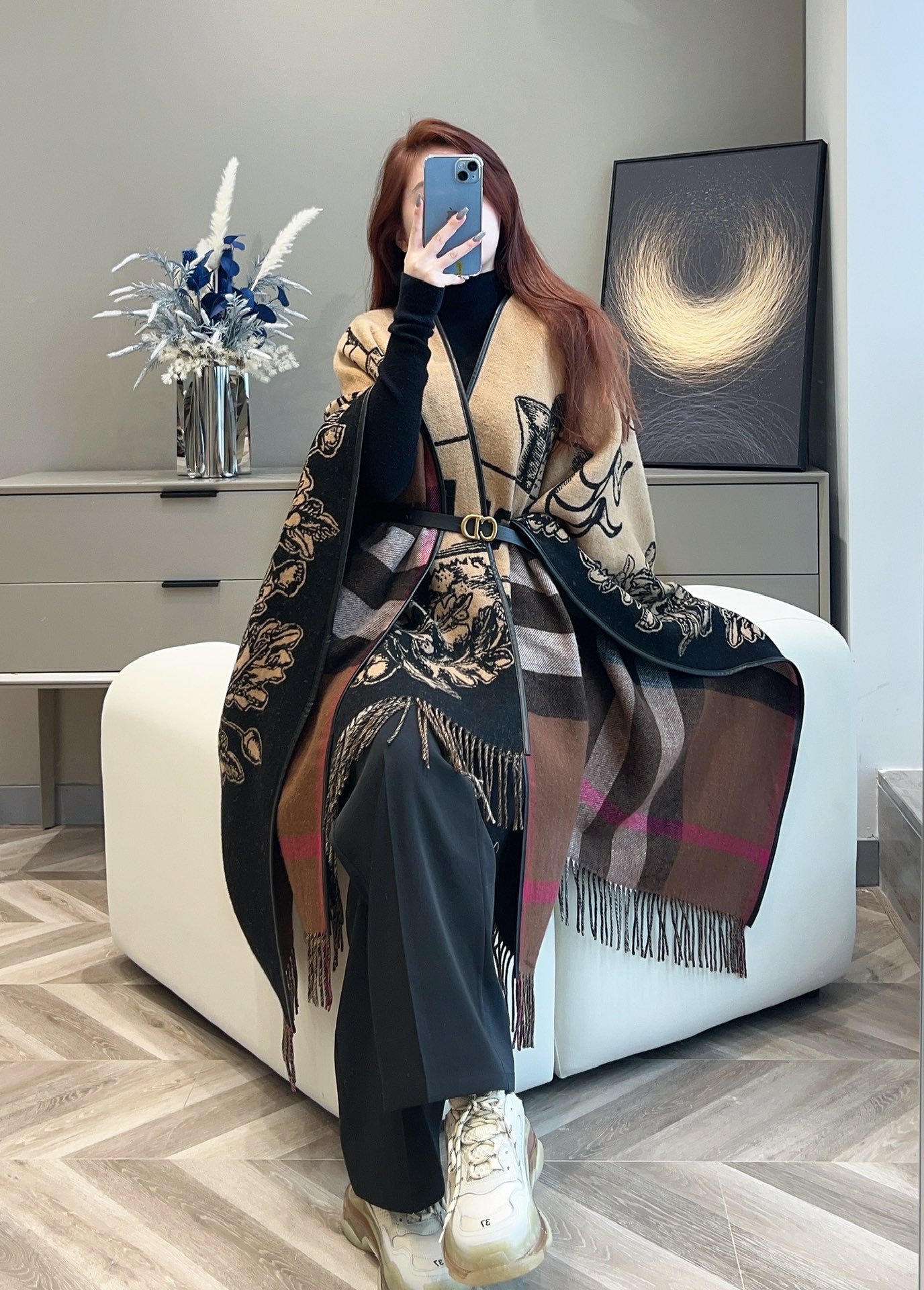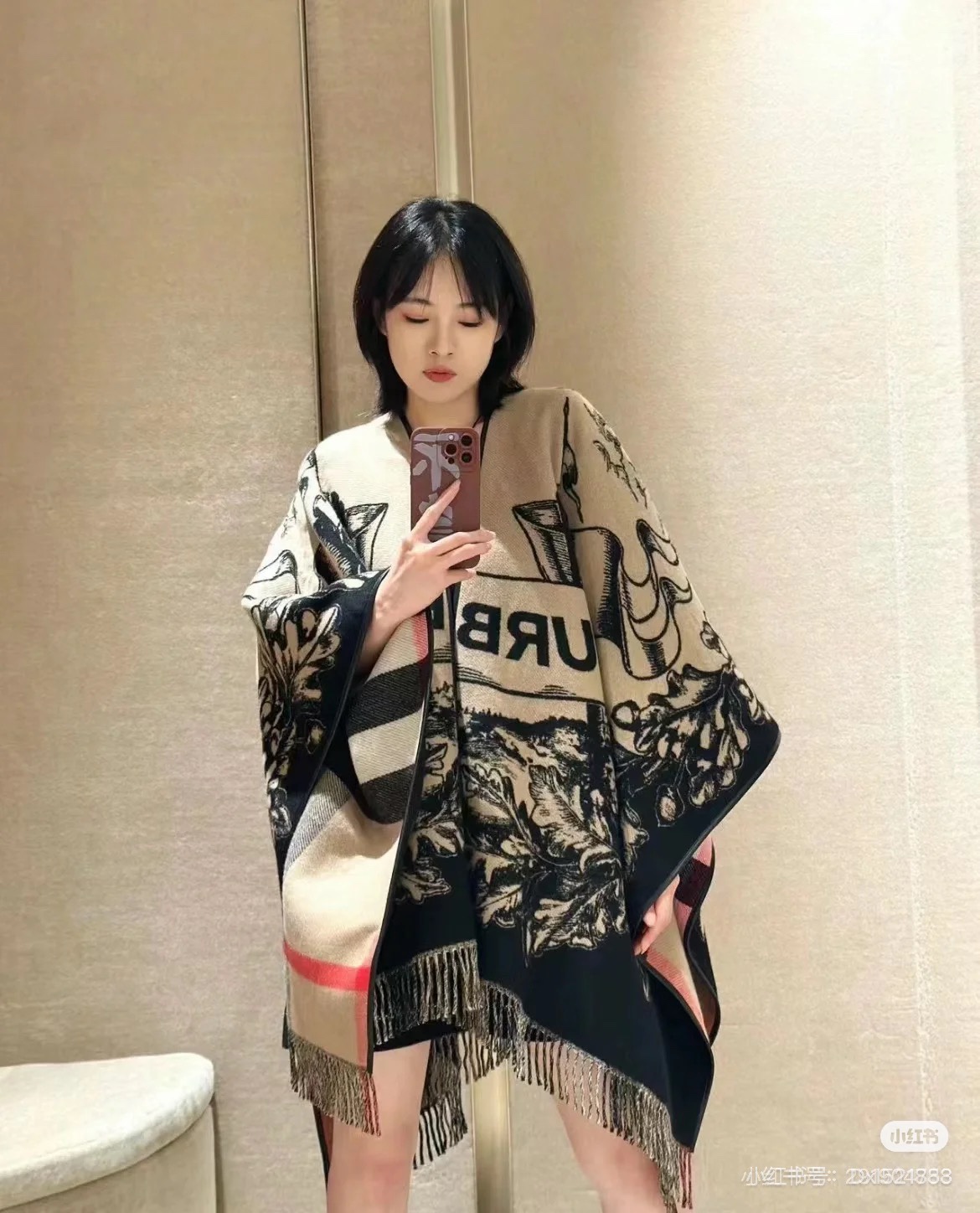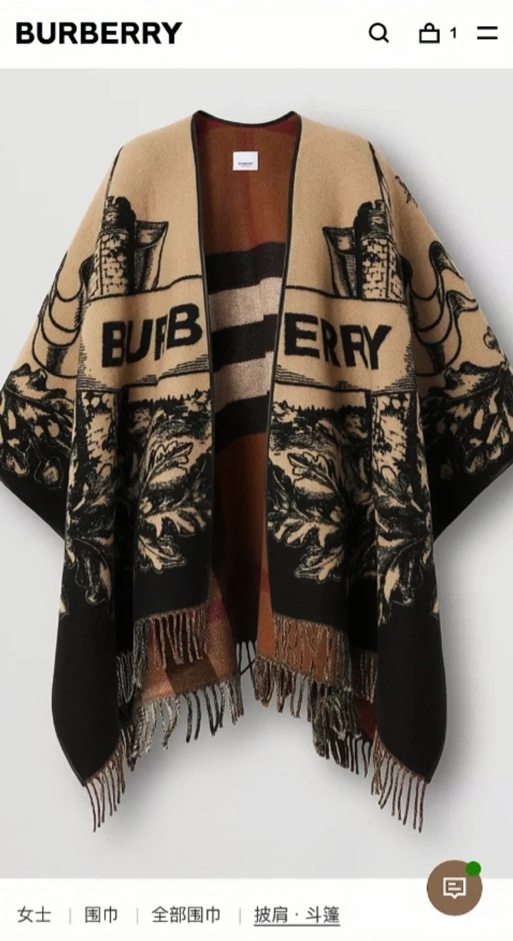 𝐁𝐔𝐑𝐁𝐄𝐑𝐑𝐘 · 新《战马双面斗篷》美拉德色 · - 130x155cm 成份 100%羊绒 爆款斗篷🔥 冬日必备!精致小羊皮锁边-两面风格 一面战马刺绣图案搭配一面经典格纹,融入创新 比起单一的格纹Logo 更特别一些,美拉德深秋氛围感十足,百搭减龄