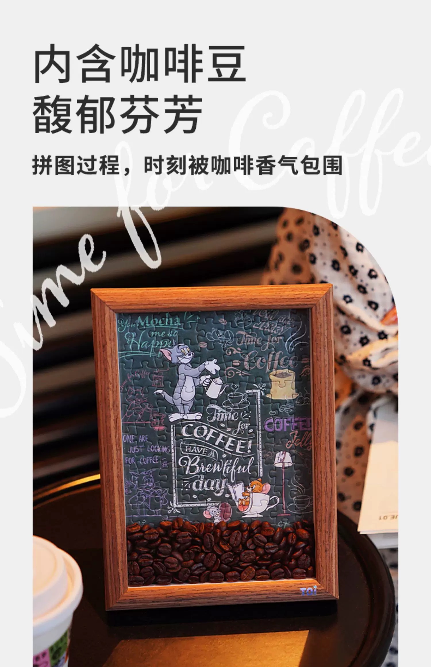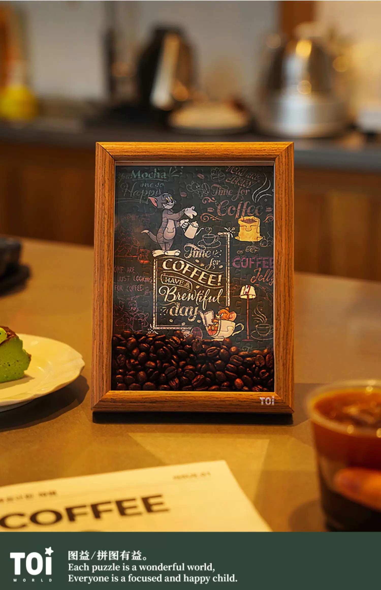 【拼图】猫和老鼠 咖啡时刻 -126片自带实木相框
