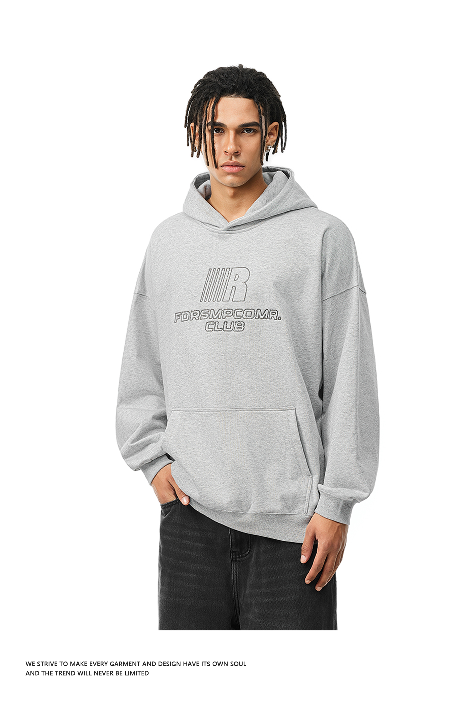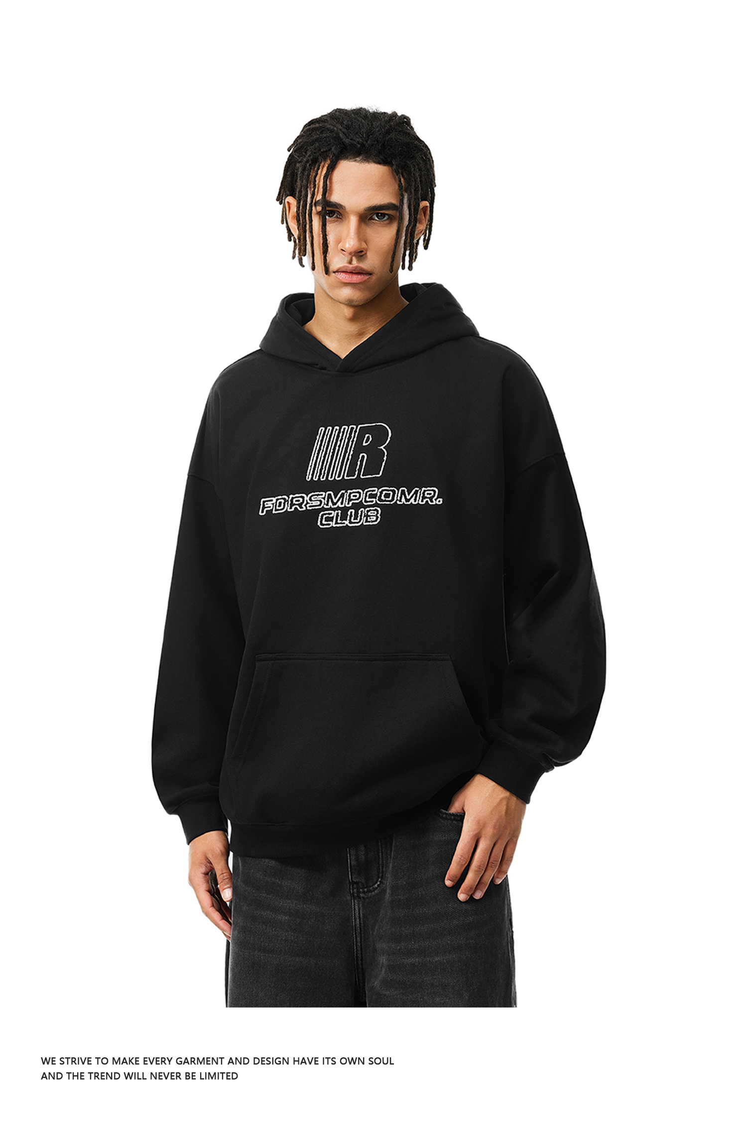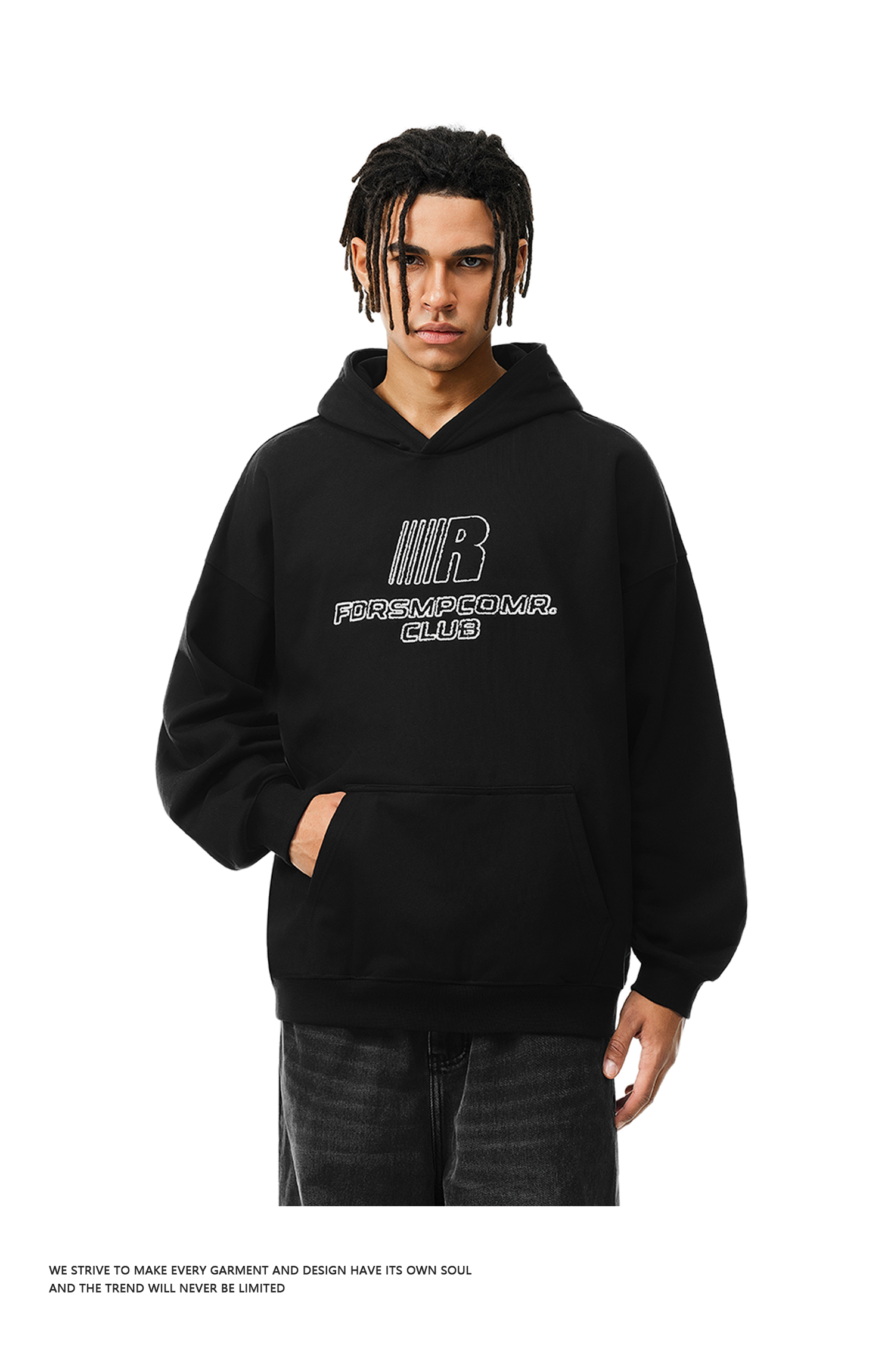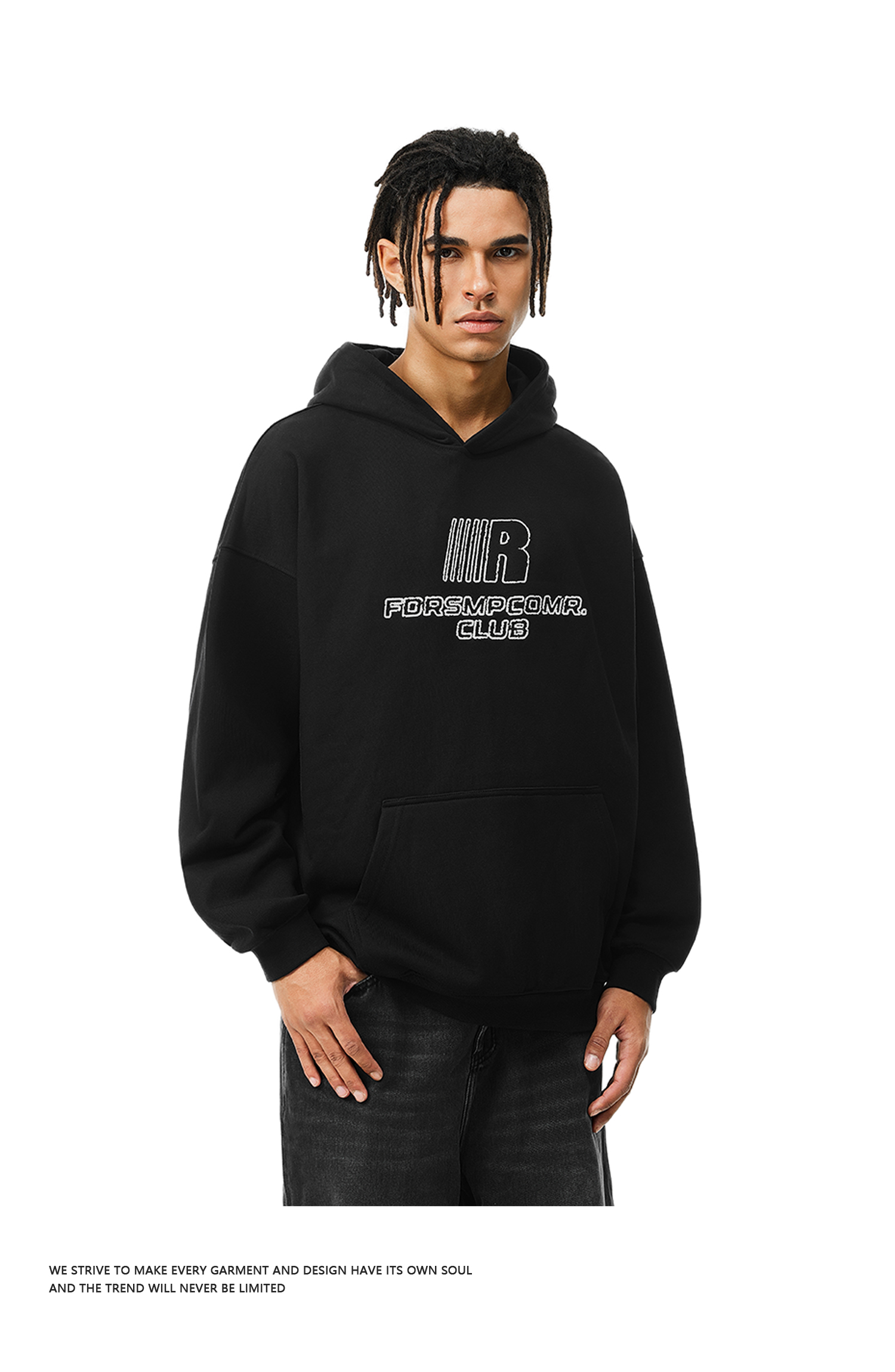 FDR官方店 R字绣花美式运动连帽卫衣男女春秋季重磅情侣上衣帽衫