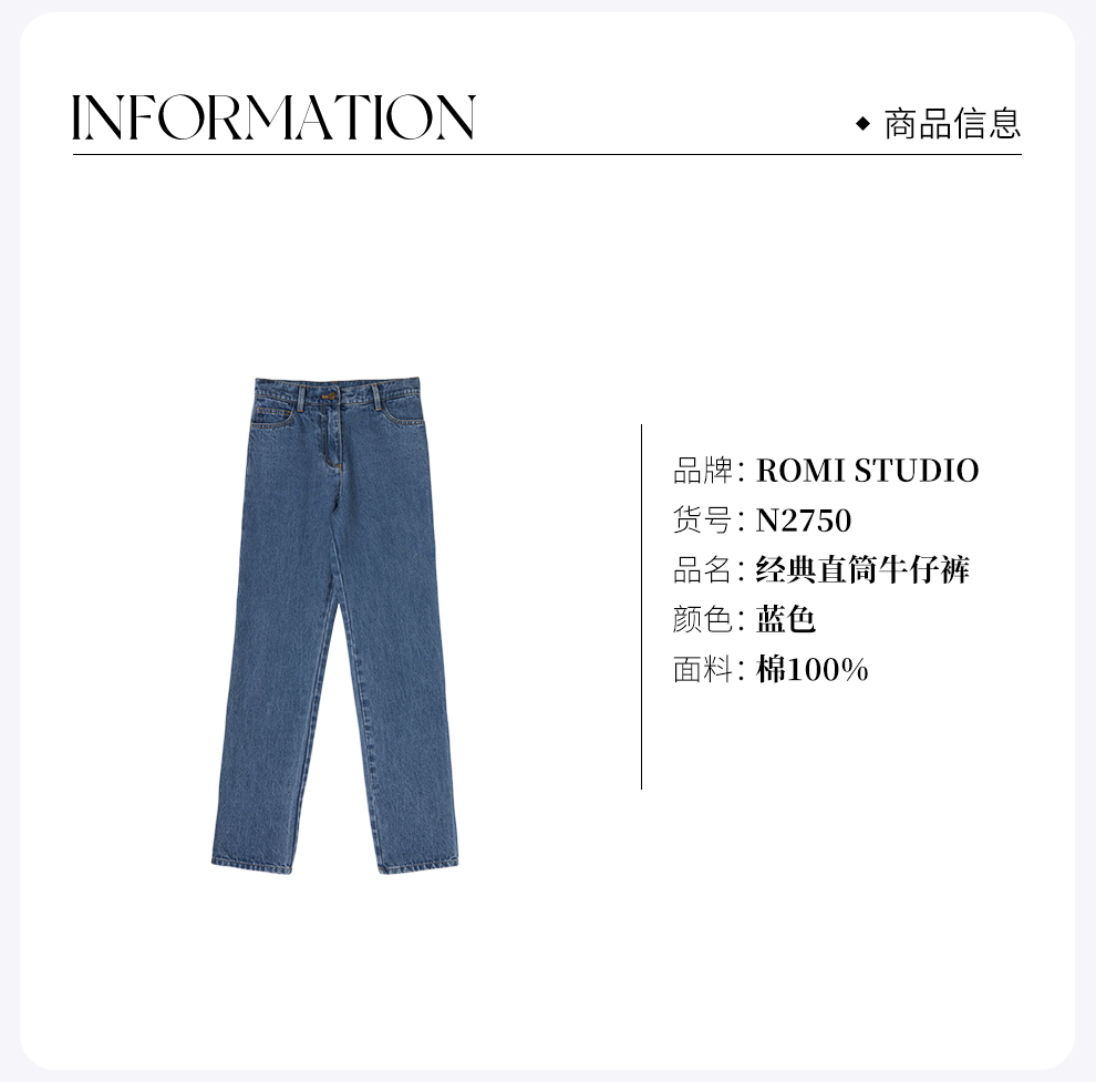 ROMI STUDIO-B【高品质】四季刚需高腰直筒休闲蓝色复古牛仔裤N2750