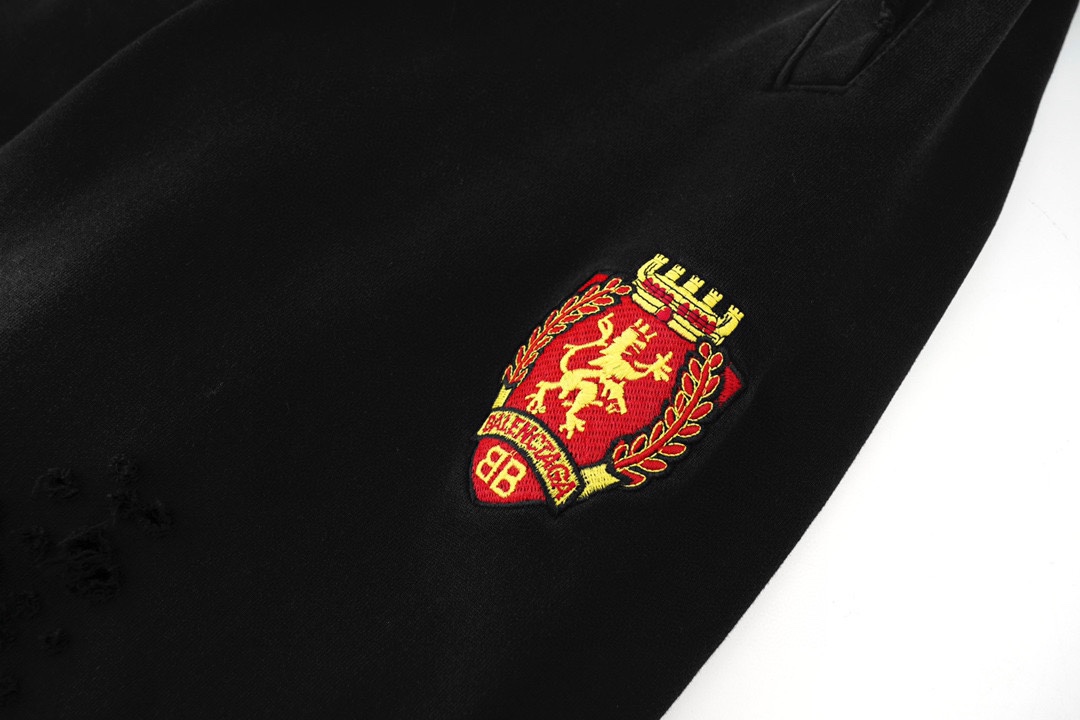 Balencia* 巴黎世* BLCG 23FW走秀款做旧破坏曼联刺绣运动长裤 460g面料毛圈做旧水洗后重量沉甸甸 秋冬必备