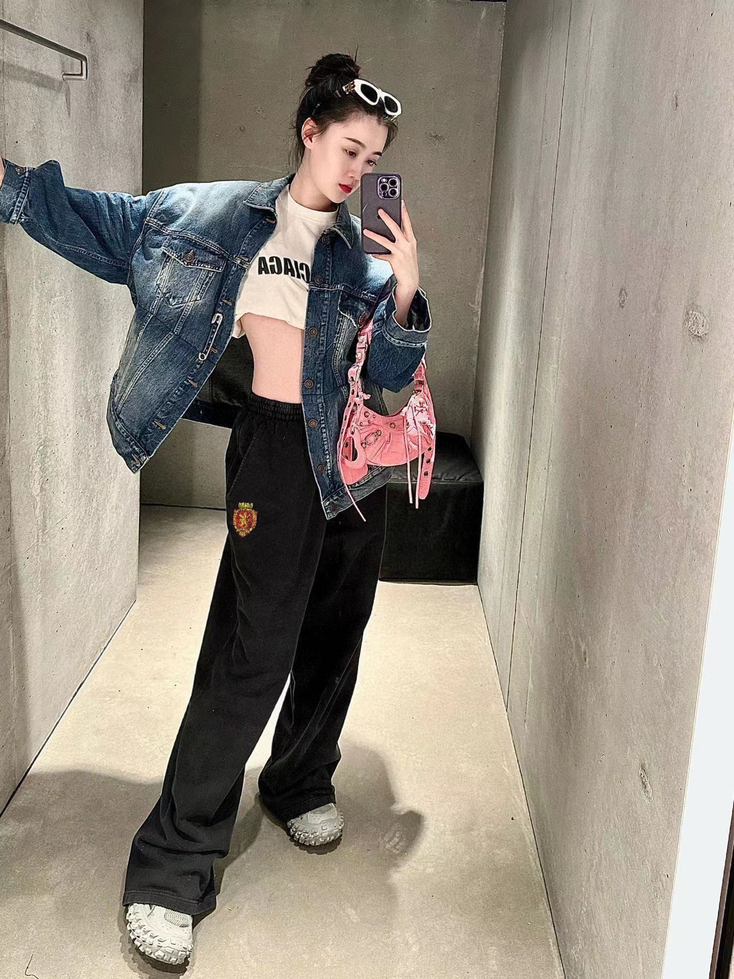 Balencia* 巴黎世* BLCG 23FW 走秀款做旧破坏曼联刺绣运动长裤 (Y*BG)
