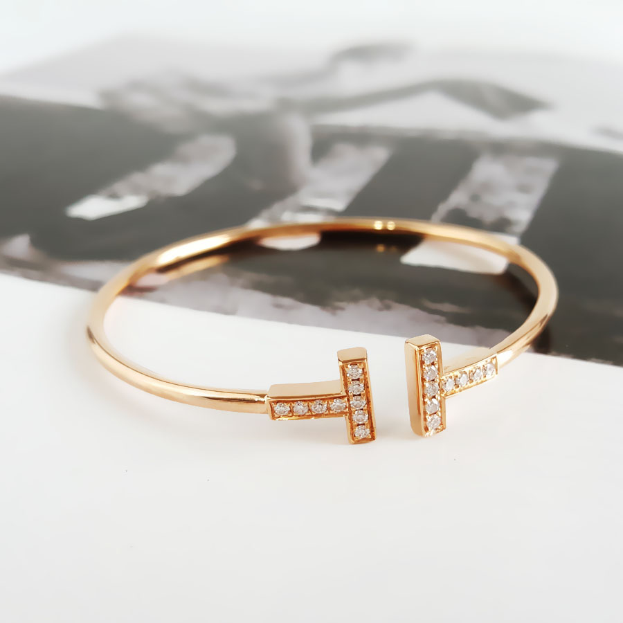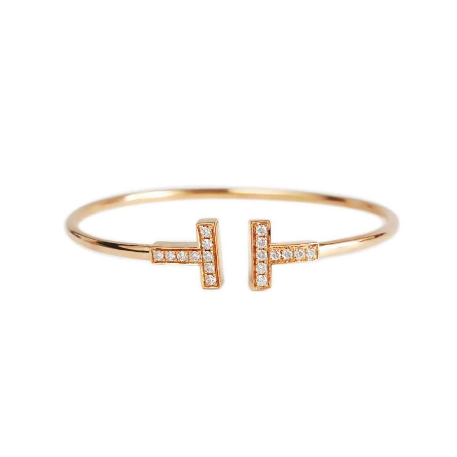 款式 | 玫瑰金镶钻双T开口线圈手镯 |
