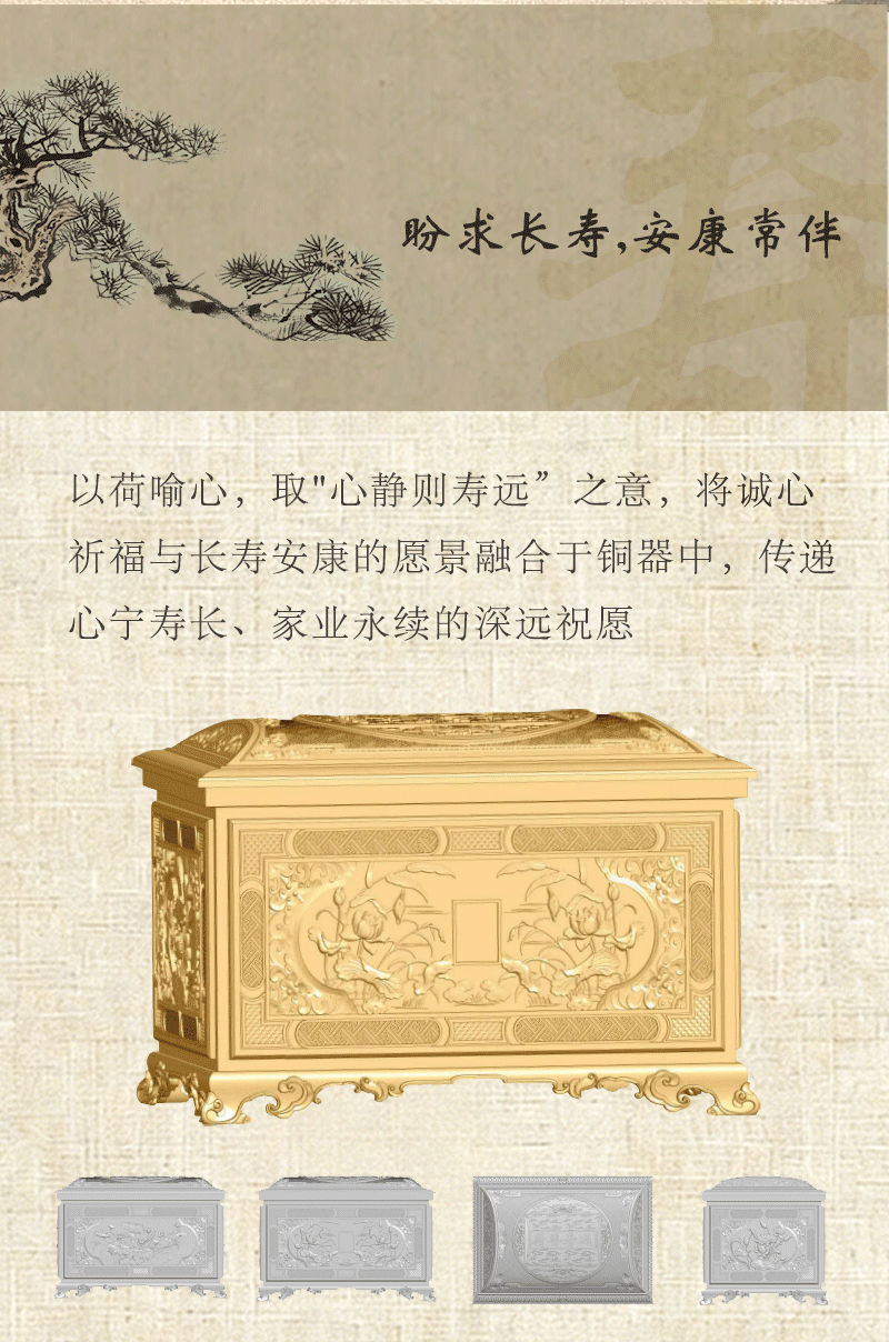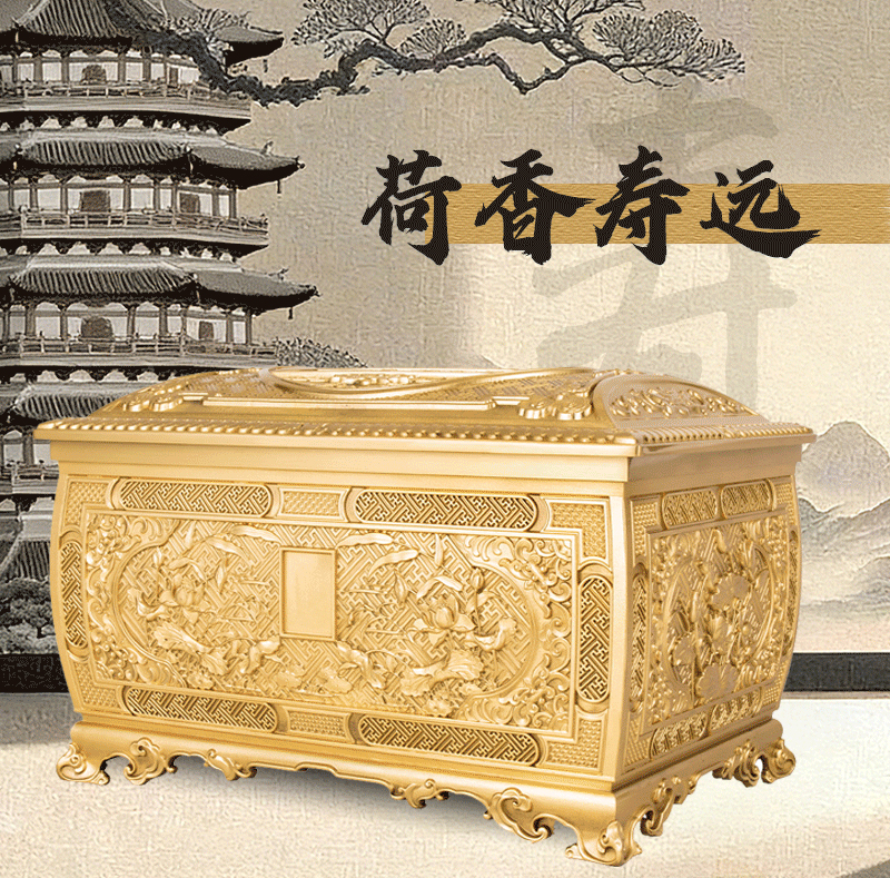 铜制骨灰盒心款·荷香寿远款红花梨木男女寿盒