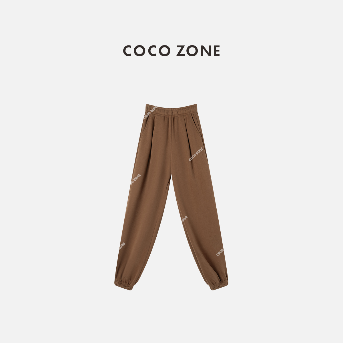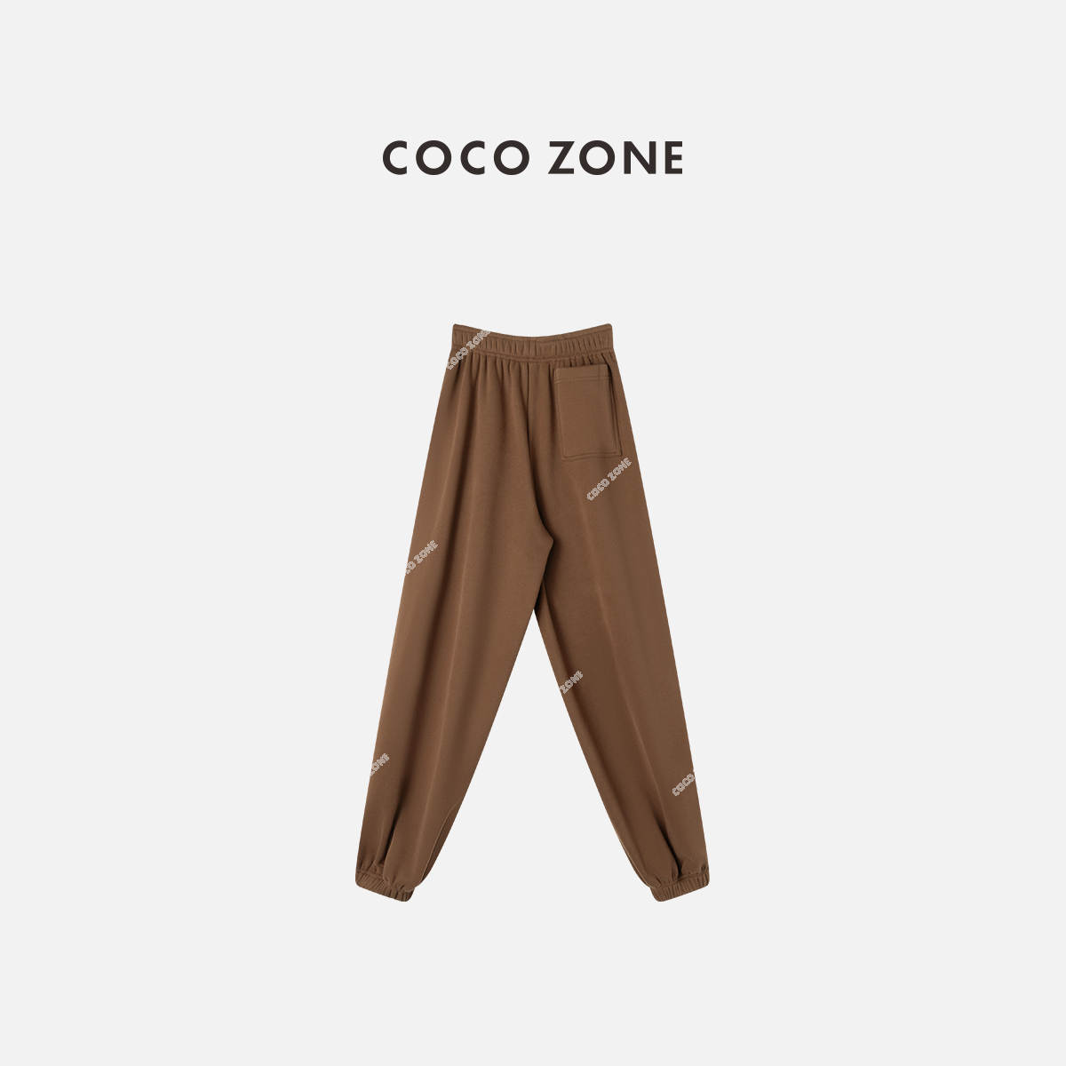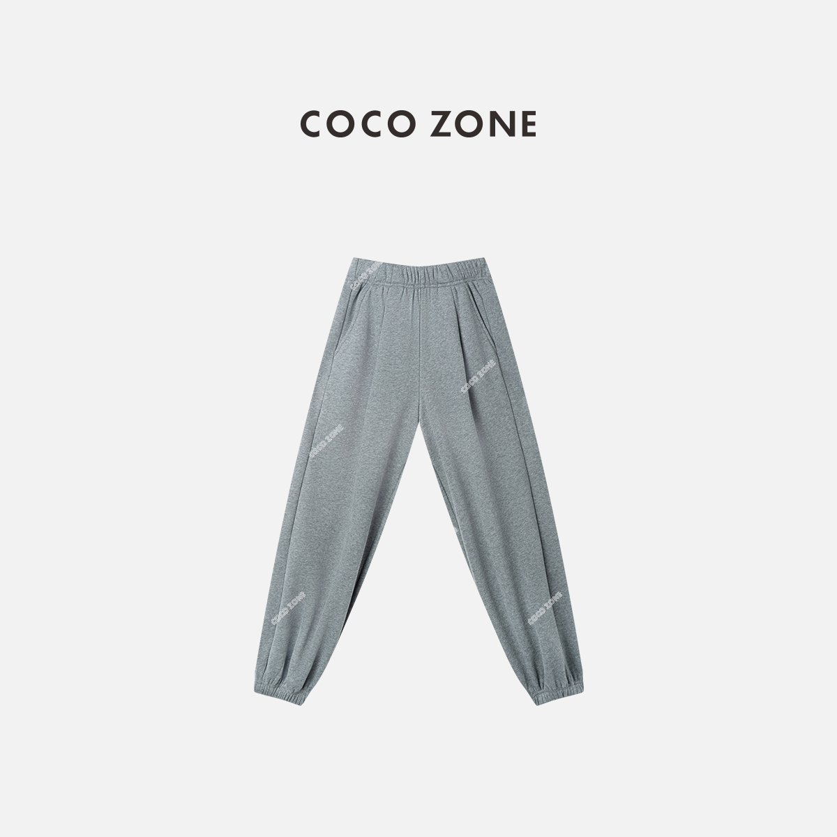 COCO ZONE 复古松紧腰休闲裤纯色显瘦百搭束脚裤CC1C2182