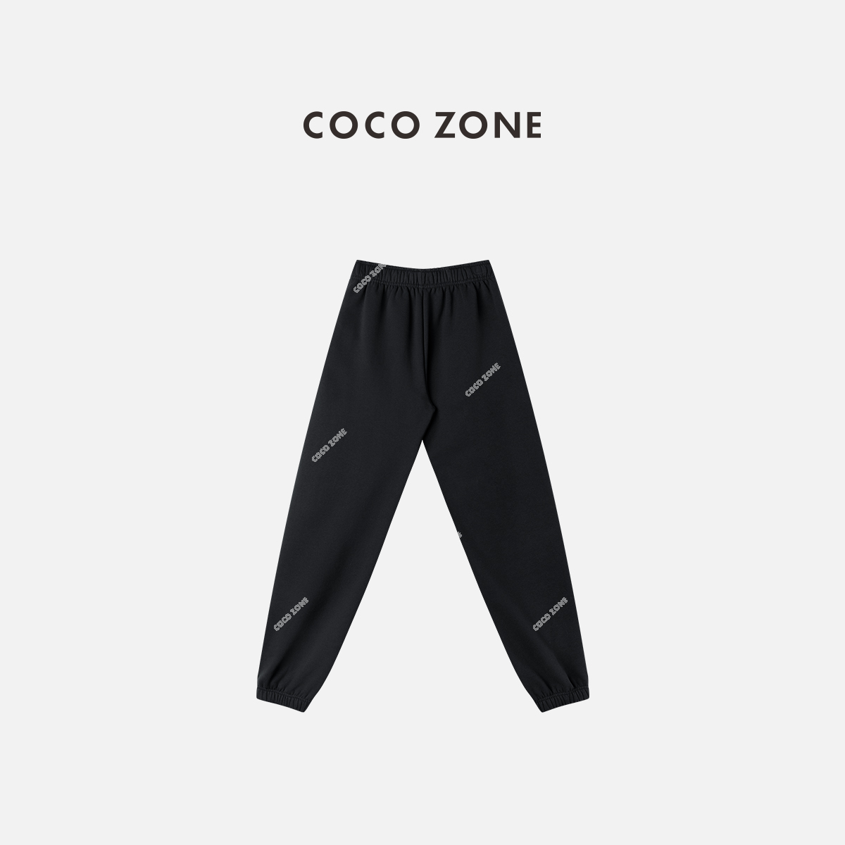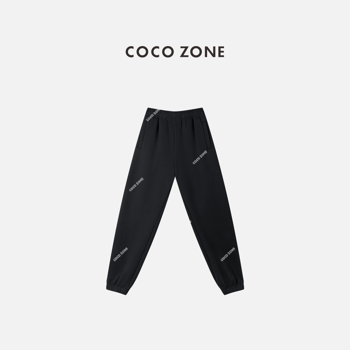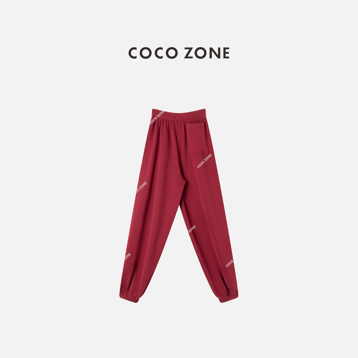 COCO ZONE 复古松紧腰休闲裤纯色显瘦百搭束脚裤CC1C2182