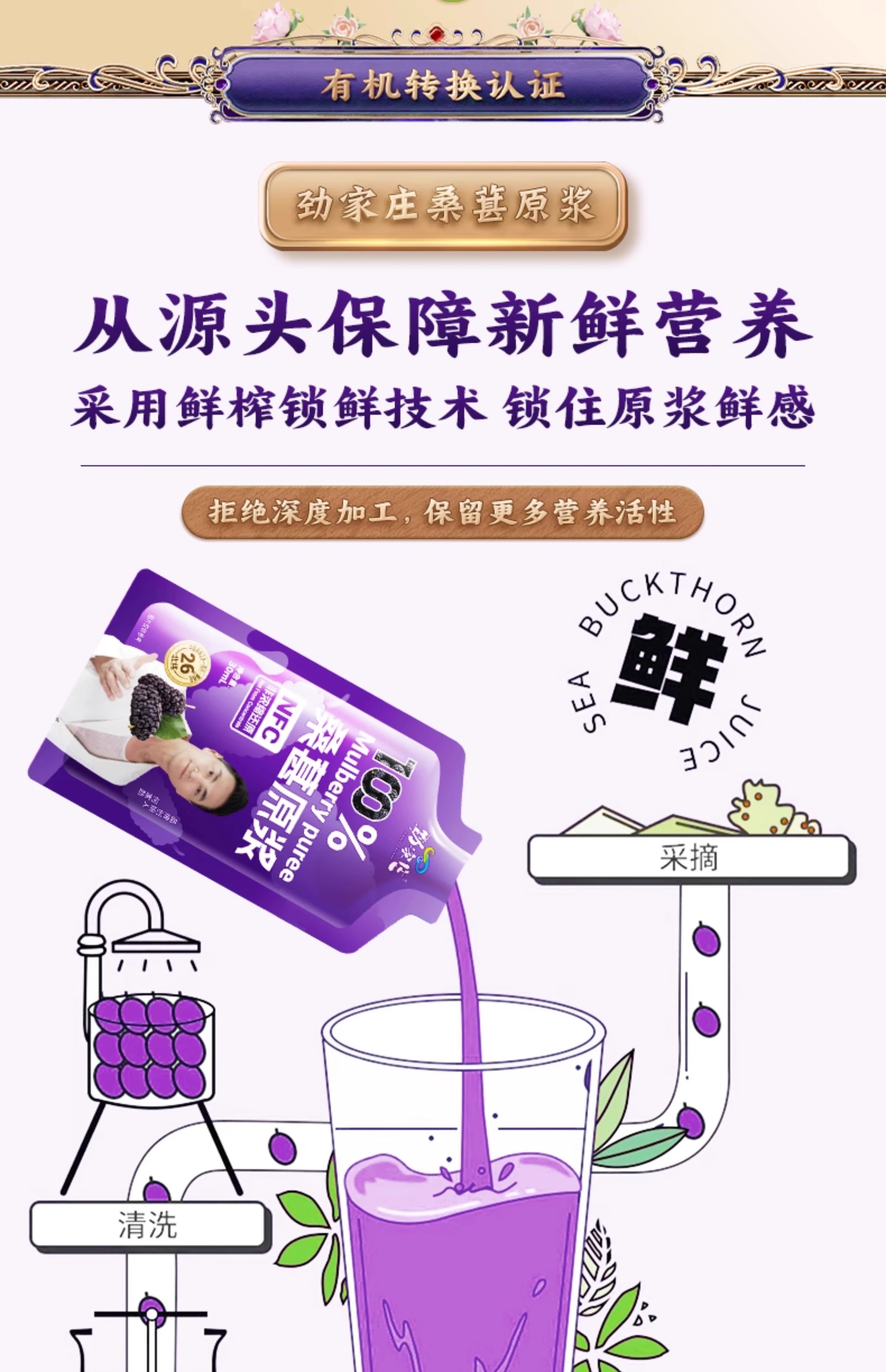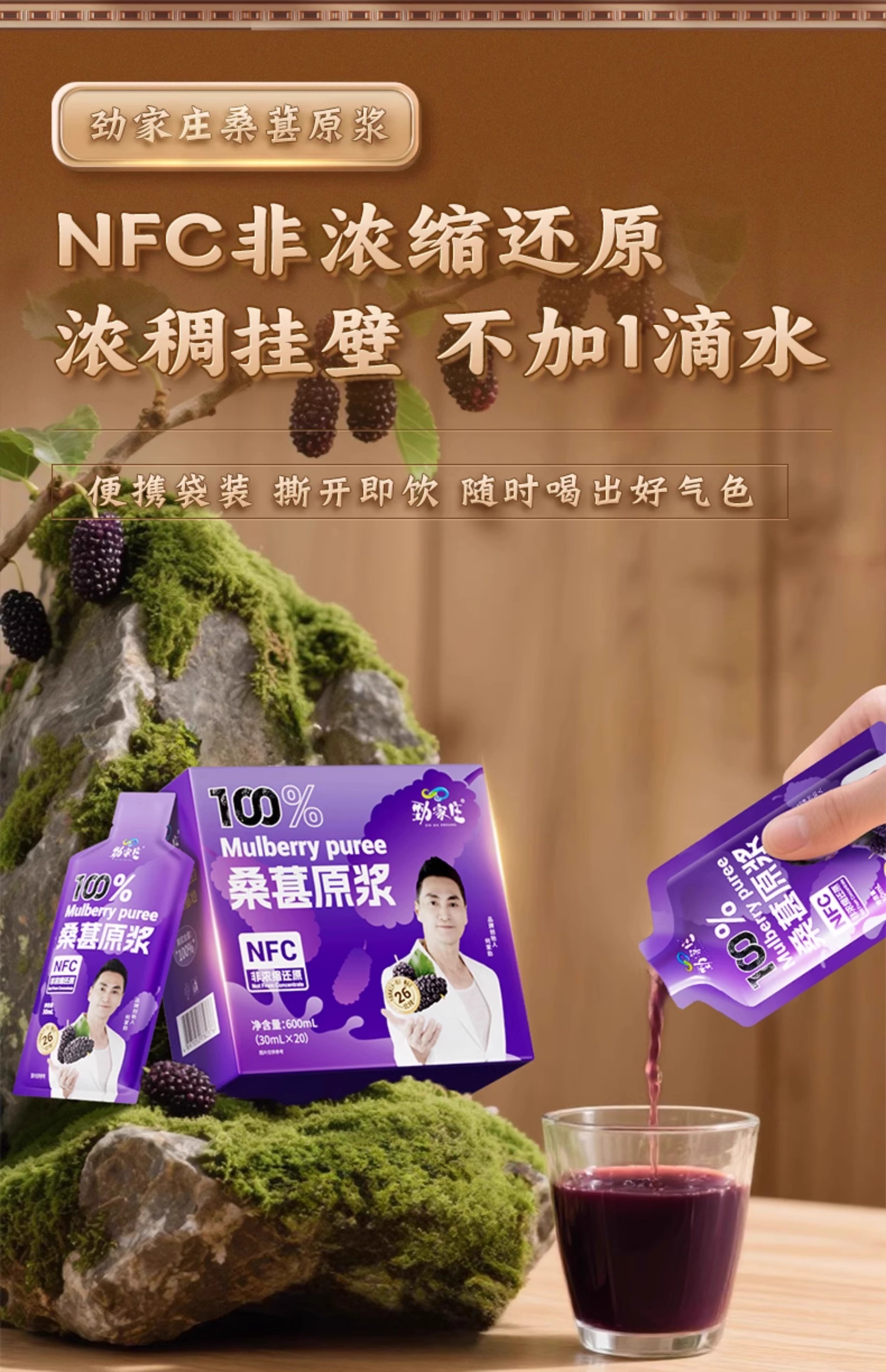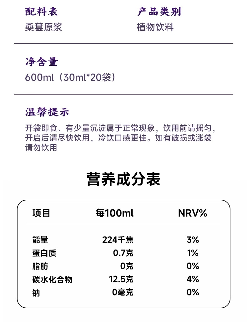 劲家庄100%桑葚原浆600ML/盒(30ML*20)