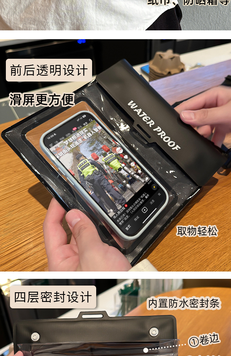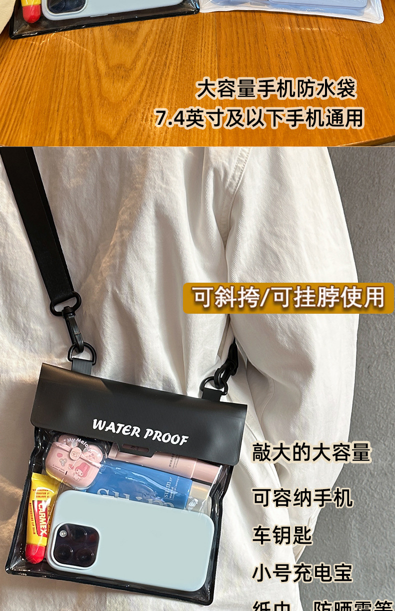 【大容量手机防水袋!可斜挎/可挂脖使用】可触屏游泳漂流斜跨大容量防水包泼水节必带收纳防水包。ry