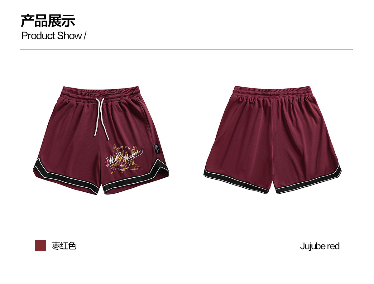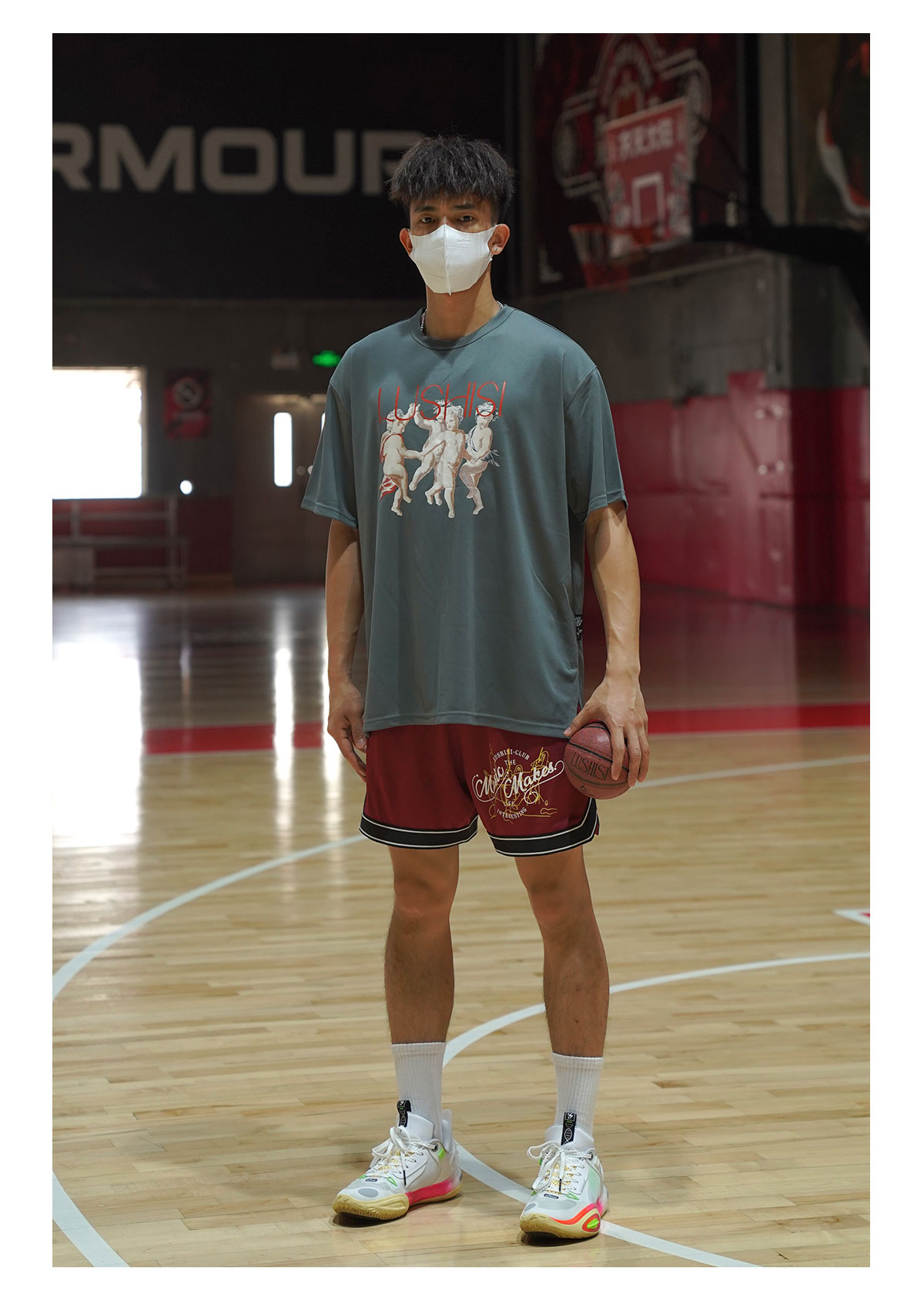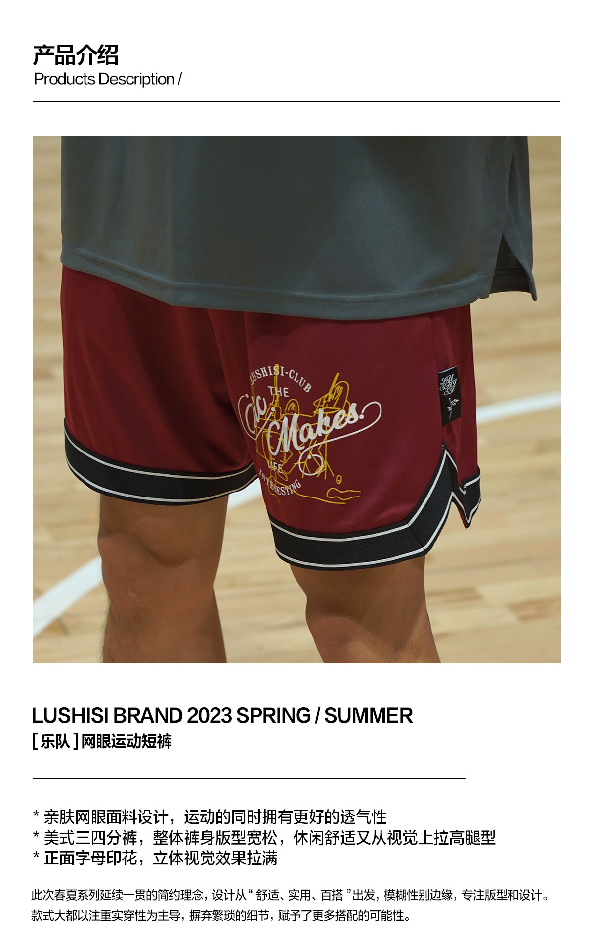 LUSHISI争冠主题篮球美式短裤夏季运动训练网眼速干四分复古球裤