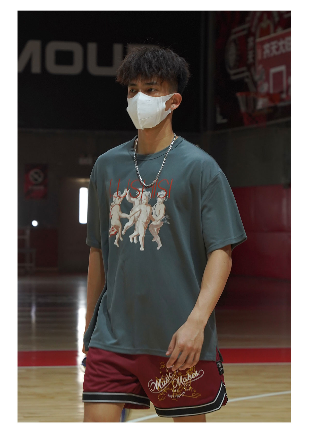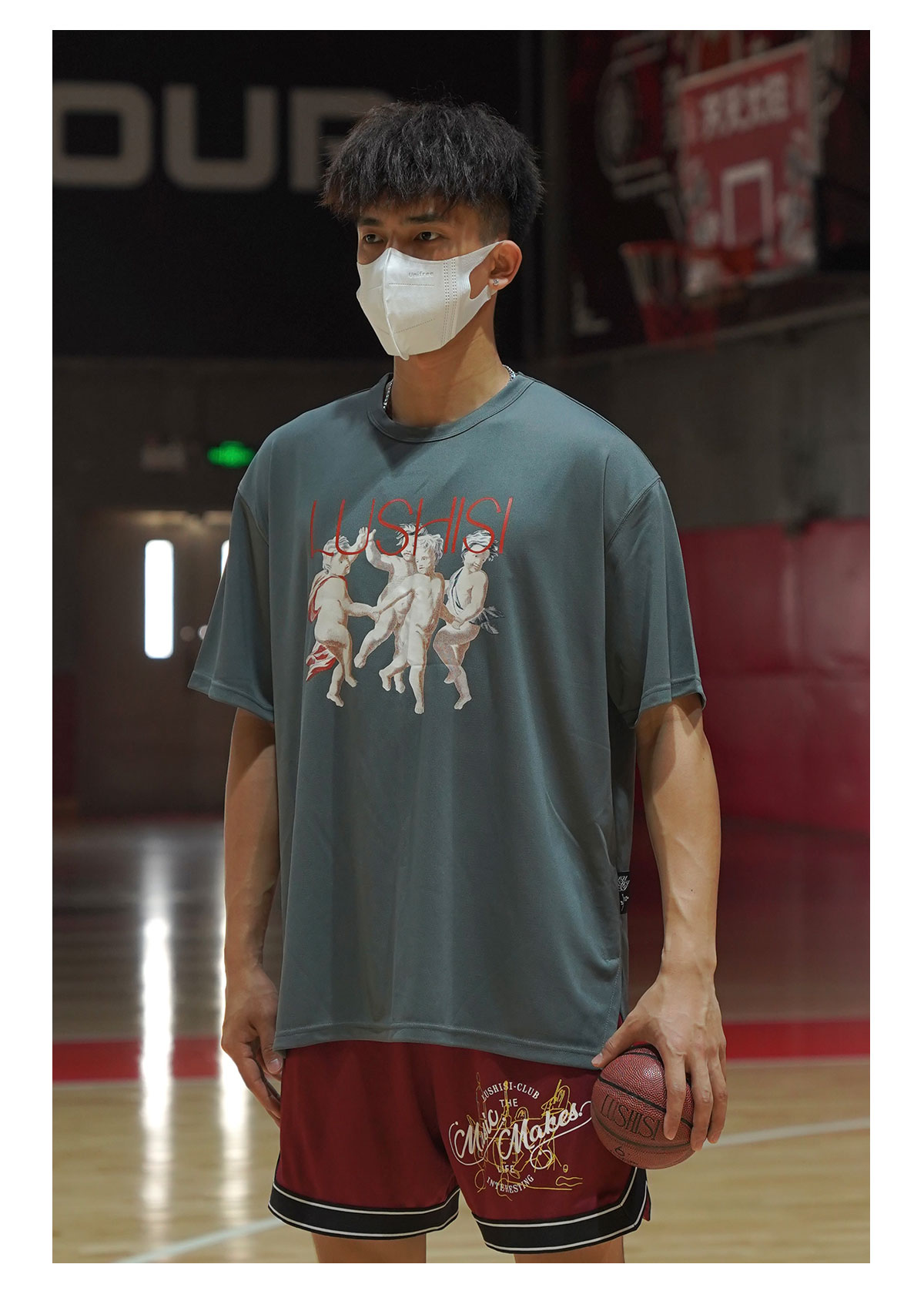 LUSHISI春夏基础篮球运动美式休闲潮流速干投篮服短袖男宽松圆领T
