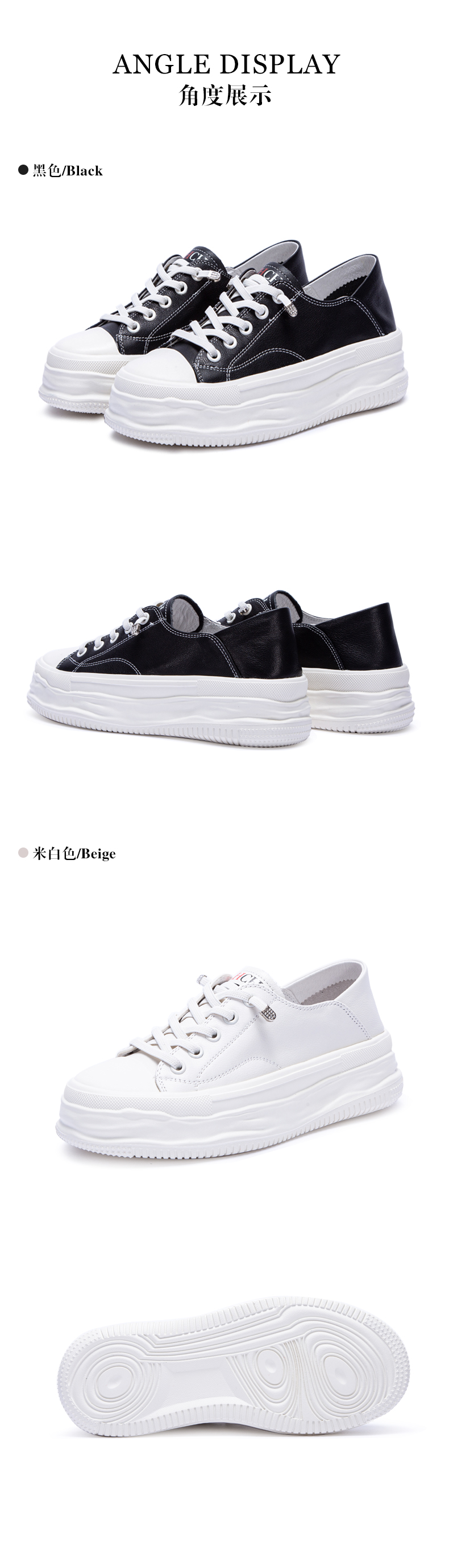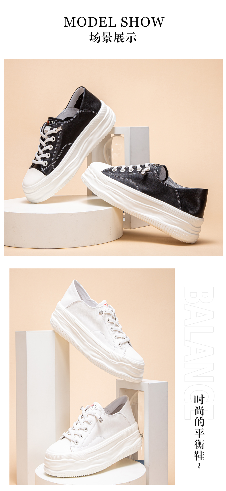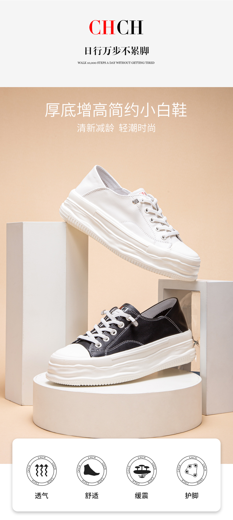 CHCH平衡鞋女鞋系带低帮厚底小白鞋39、40码【无运费险】