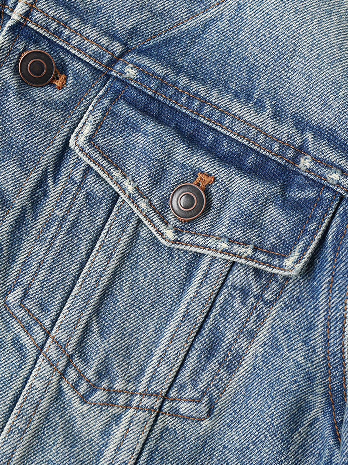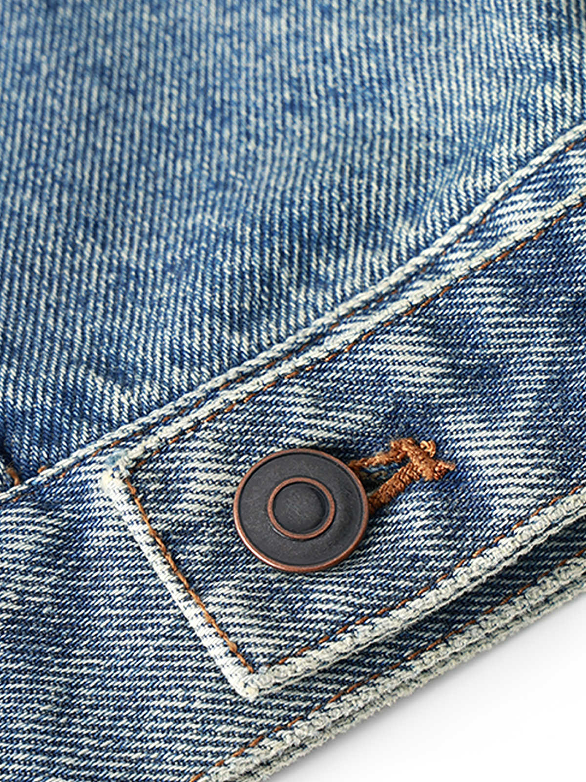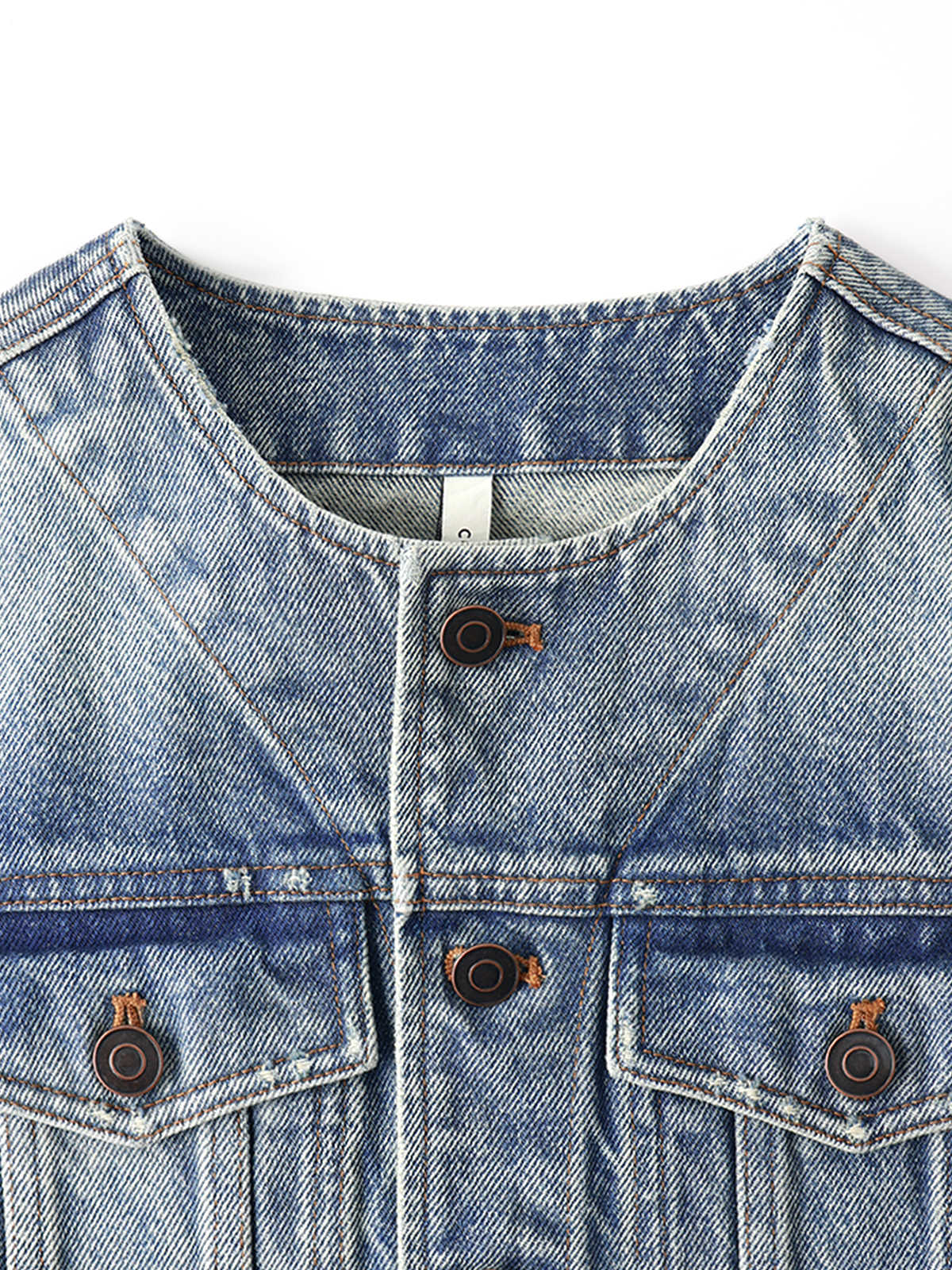 COCO ZONE100棉复古做旧牛仔外套百搭短款排扣长袖上衣24C10370