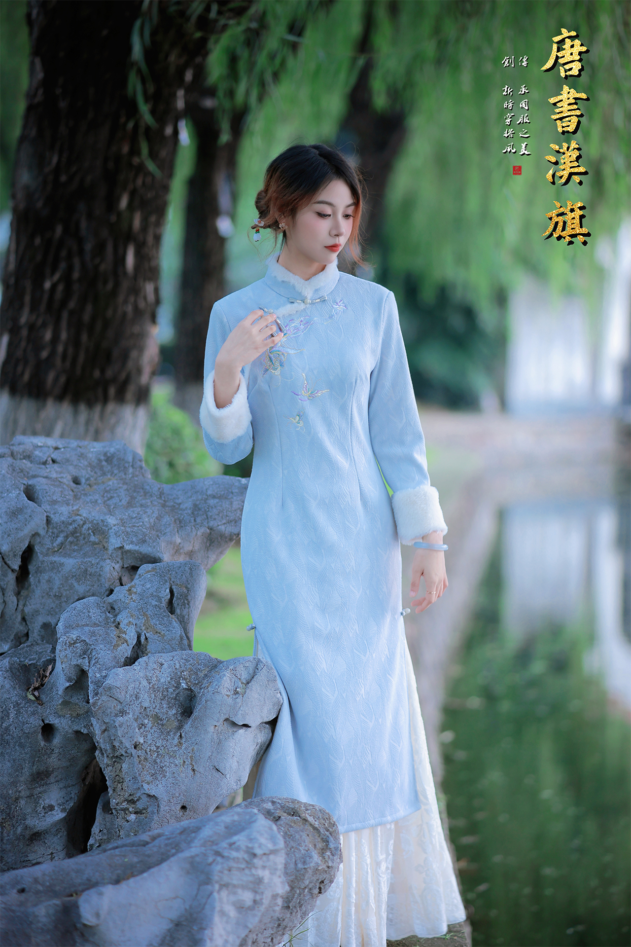 【鹤绒冬祺】清冷浅蓝调+细密暗纹,自带温婉滤镜✨ 领口/袖口带有绒毛,暖糯又显贵气 斜襟绣着灵动仙鹤纹样,国风细节拉满 长款修身版型,日常/约会穿都衬气质 秋冬也能穿的温柔战袍,氛围感直接拉满~