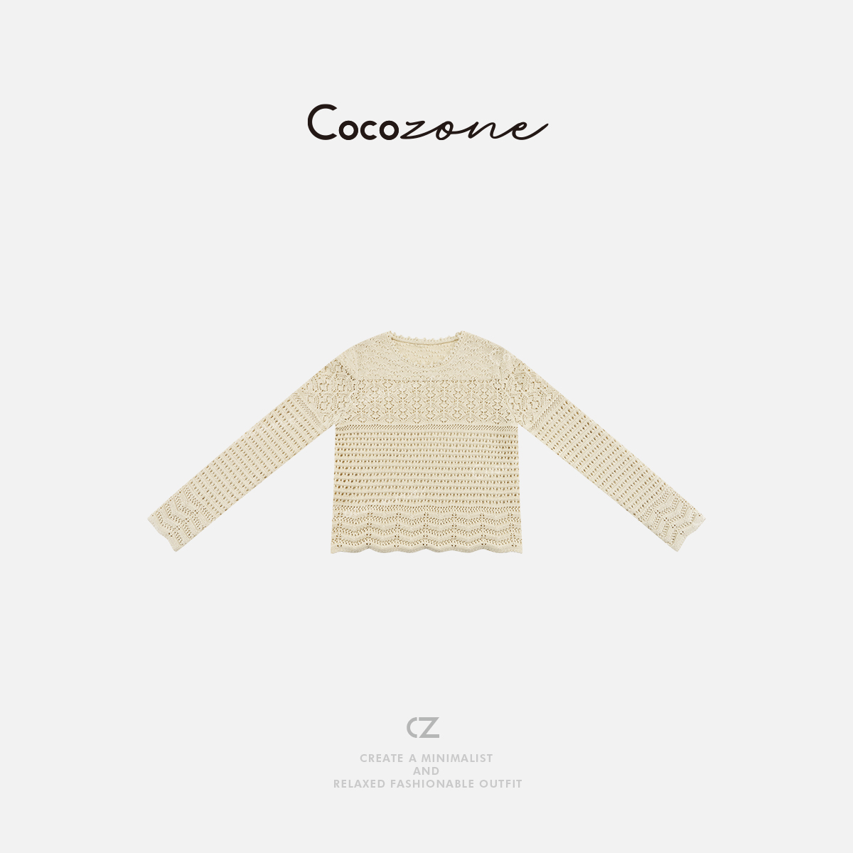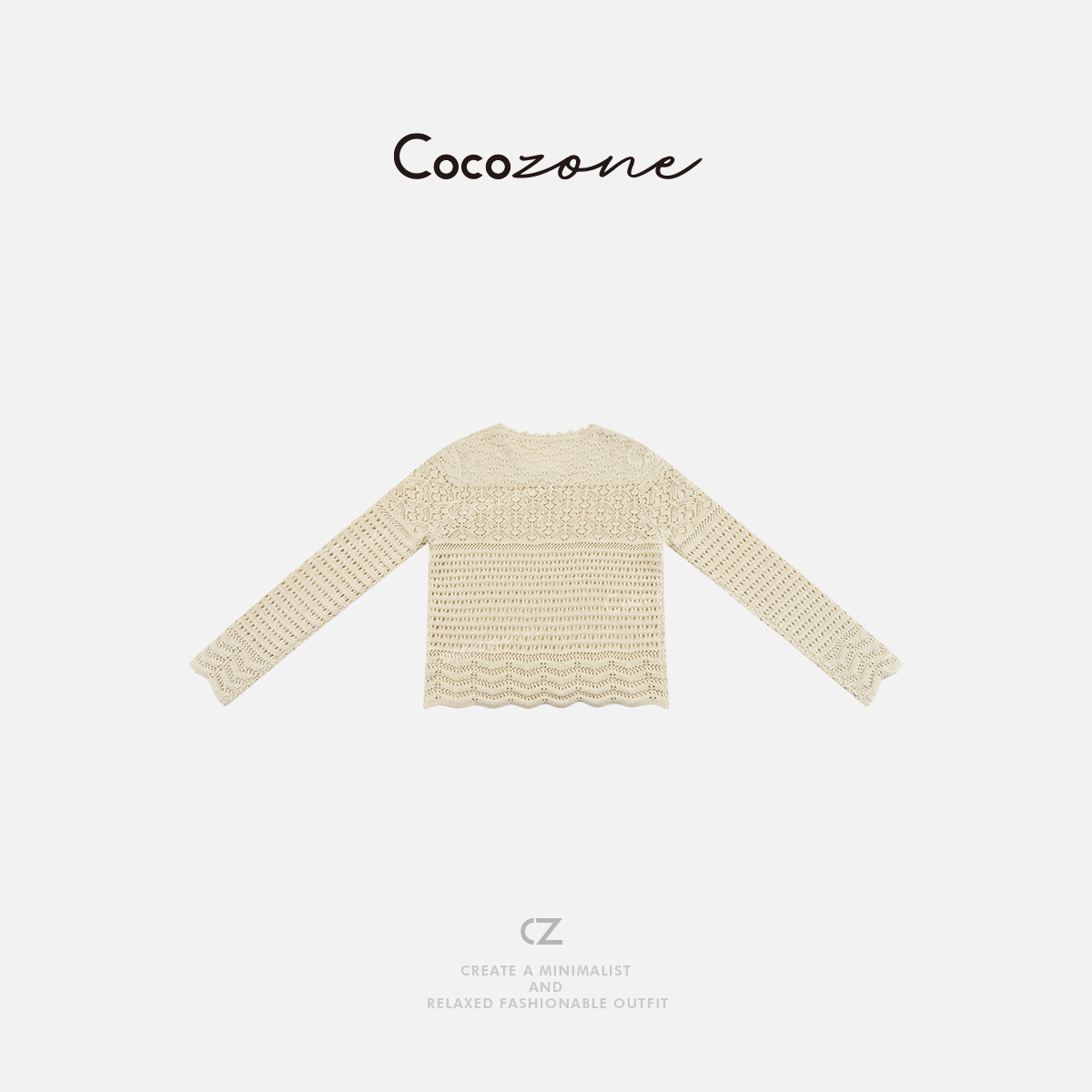 COCO ZONE 早春百搭显瘦镂空薄款长袖针织衫ACD1A0110