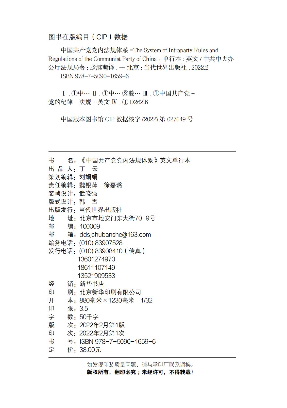 On July 1, 2021, General Secretary Xi Jinping announced at the grand gathering marking the centenary of the Communist Party of China (CPC) that the Party had "developed a relatively sound system of intraparty rules and regulations." This major achievement in institution building is hard-earned, and is the result of our Party's continuous promotion of the development of the Party Constitution and institutions over the past 100 years, especially the result of the comprehensive deepening of reform of the Party building system since the 18th National Congress of the Communist Party of China;the achievement of historic importance in Party building is a shining page in the annals of the CPC, and is an important milestone in the history of Party building, especially in the history of developing intraparty rules and regulations. It also marks that the development of intraparty rules and regulations has thus entered a new stage of high-quality development, and the practice of full and rigorous governance and rule-based governance over the CPC has stood at a new historical starting point. This basic institutional support is fundamental and provides more robust systemic guarantees for the unity and consistency of the Party and for the Party's leadership role in pursuing a great struggle, a great project, a great cause, and a great dream. It is of great significance for the Party to learn from history, create a brighter future, unite and lead the people of the whole country in realizing the great rejuvenation of the Chinese nation.