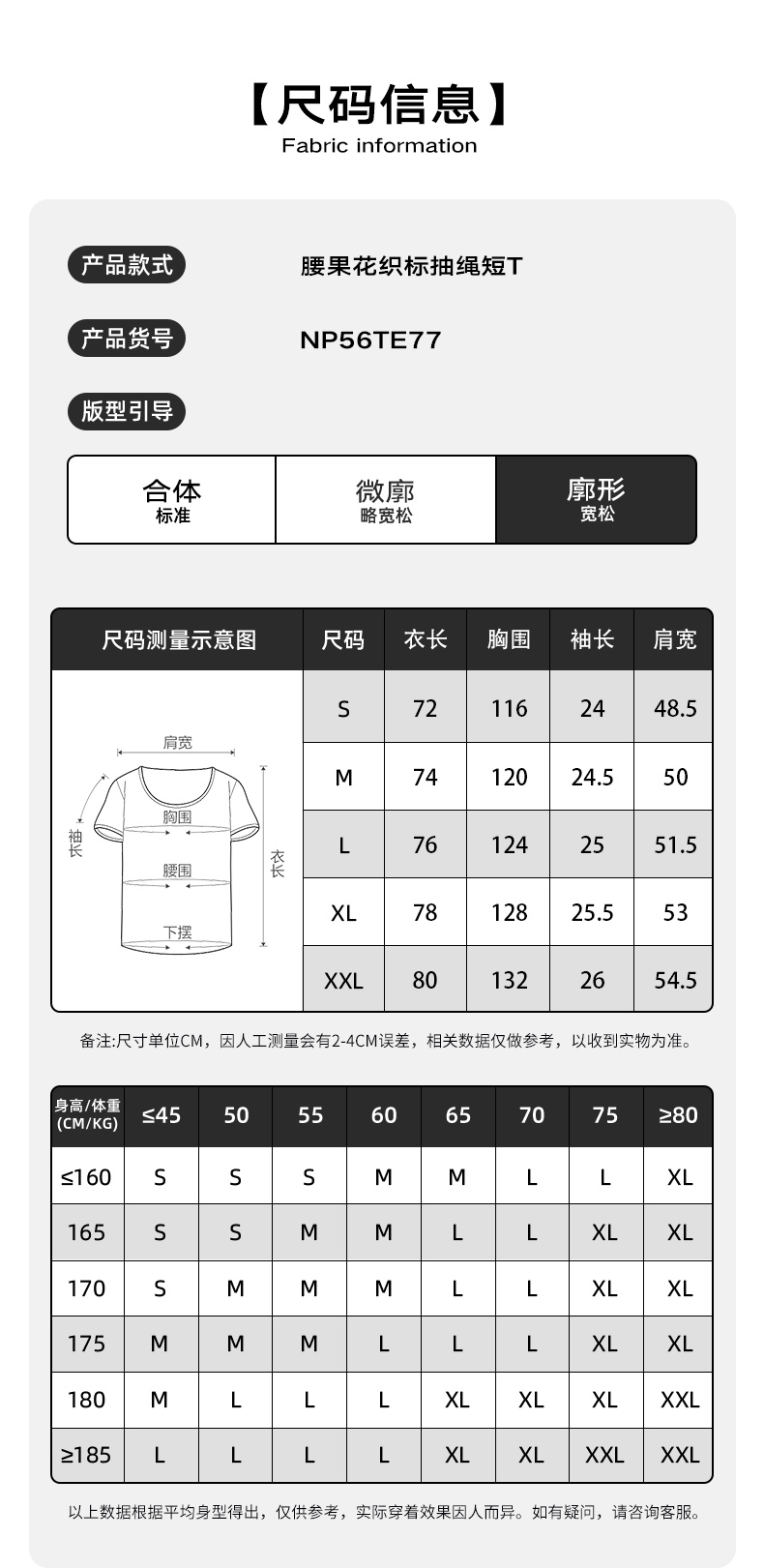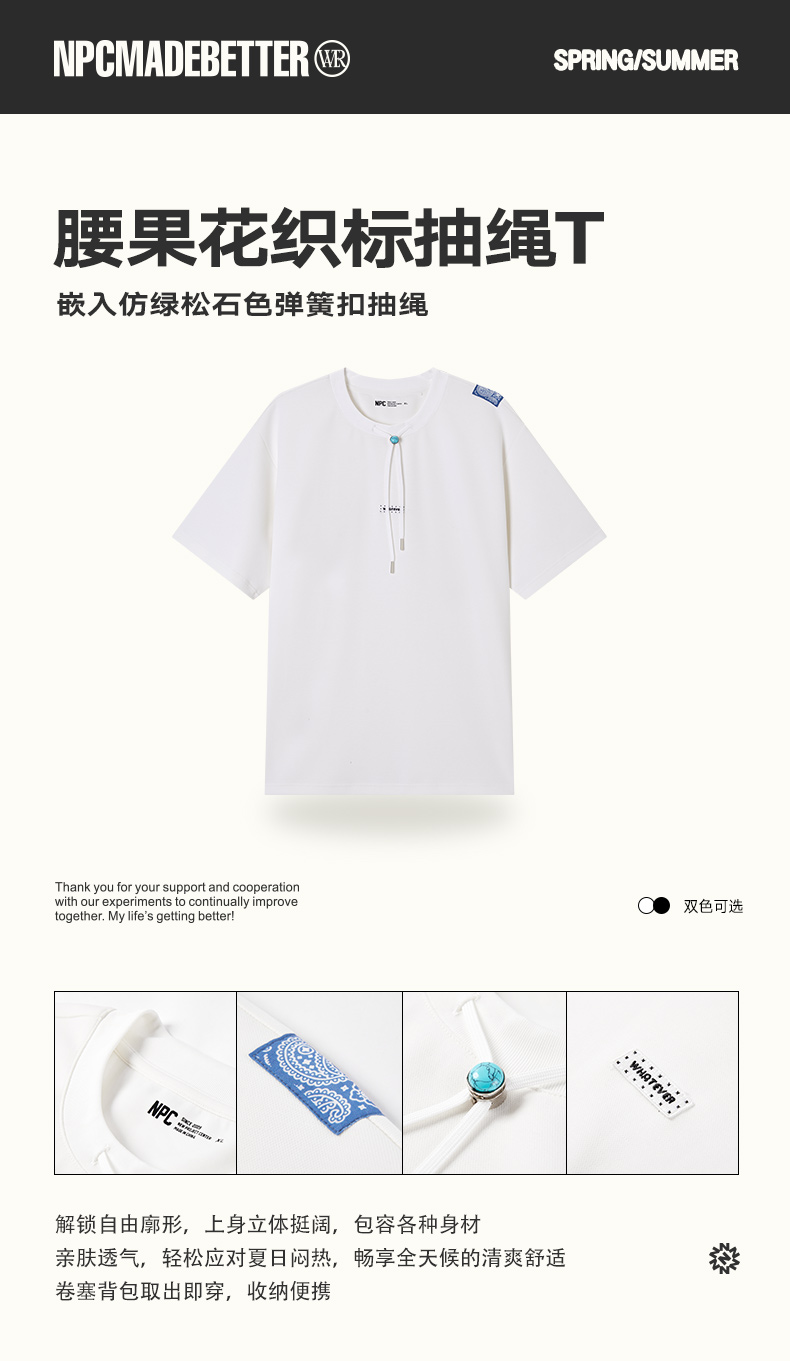 NPC潮牌常规款T恤腰果花织标圆领夏季国风短袖休闲加厚NP56TE77