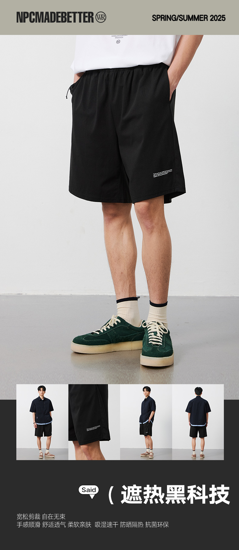 NPC潮牌字母印花【光盾索罗娜】休闲短裤男防晒抑菌松紧腰NP52TR26