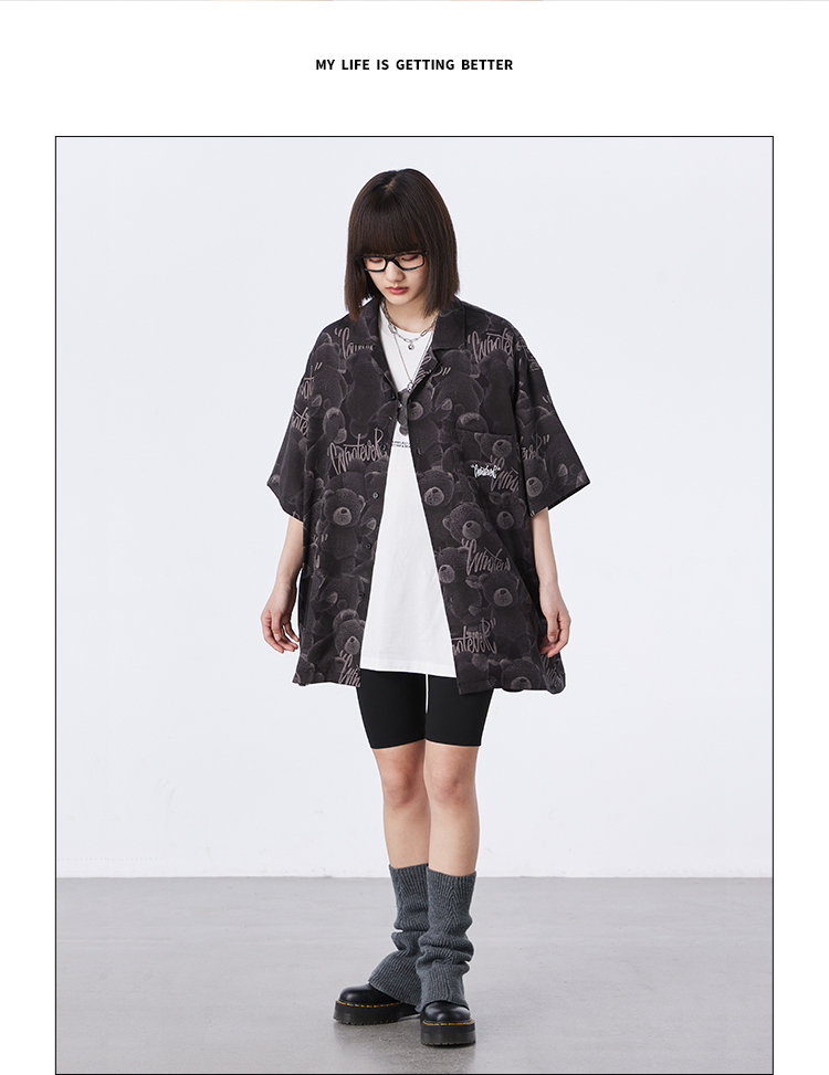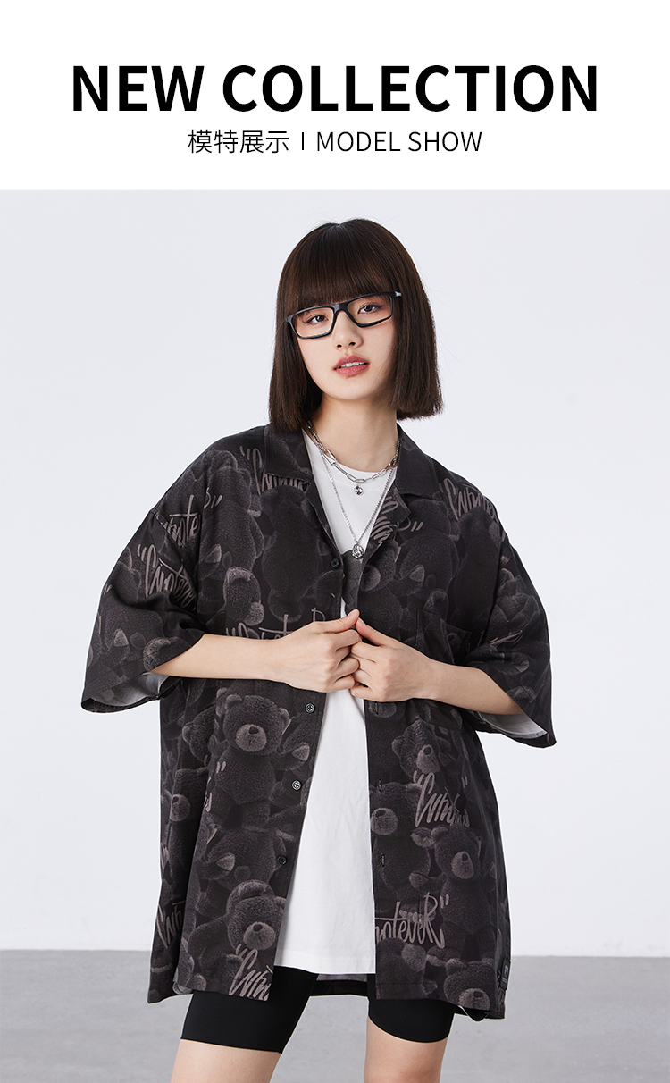 NPC潮牌BetterBear小熊系列满印小熊【天丝】衬衫情侣装NP33SH26