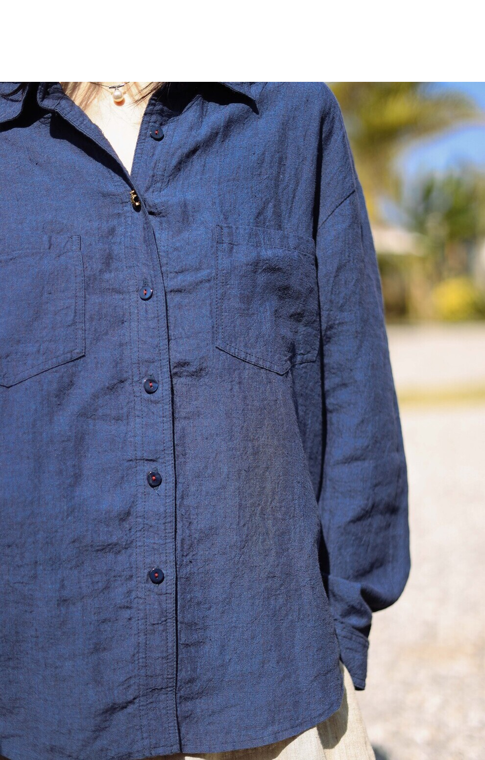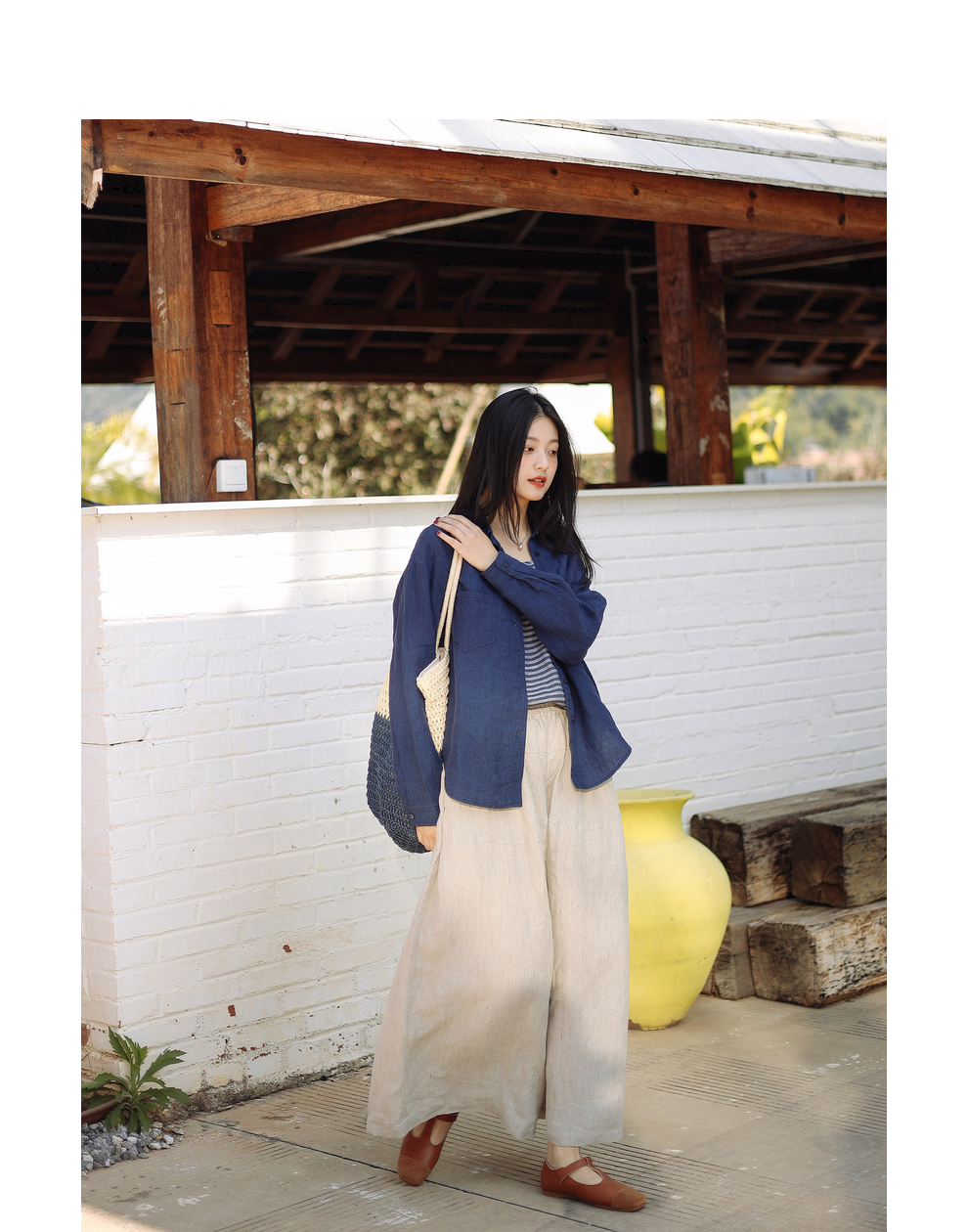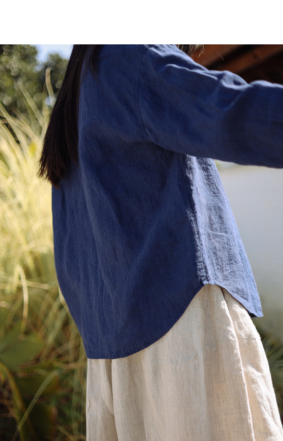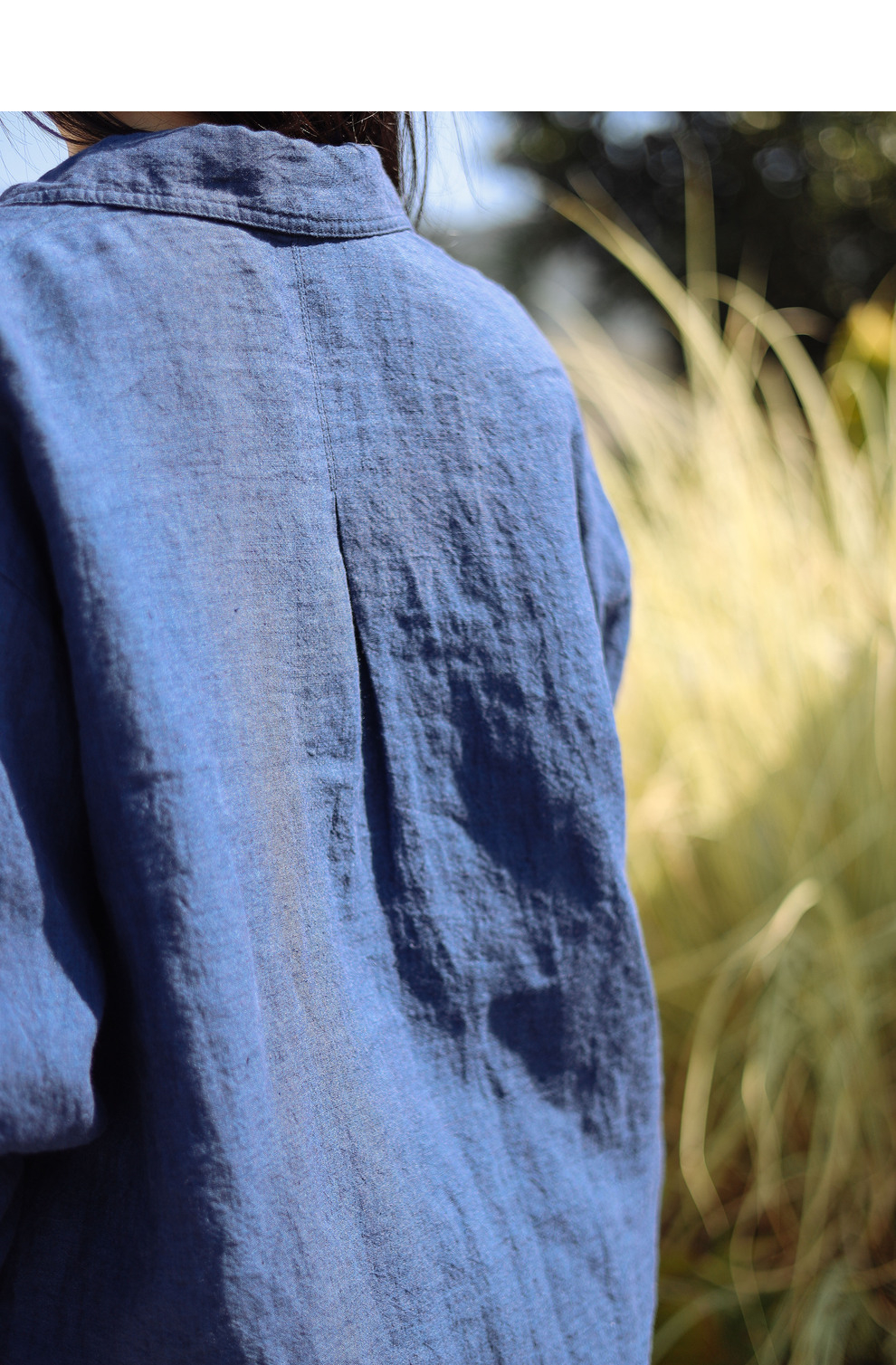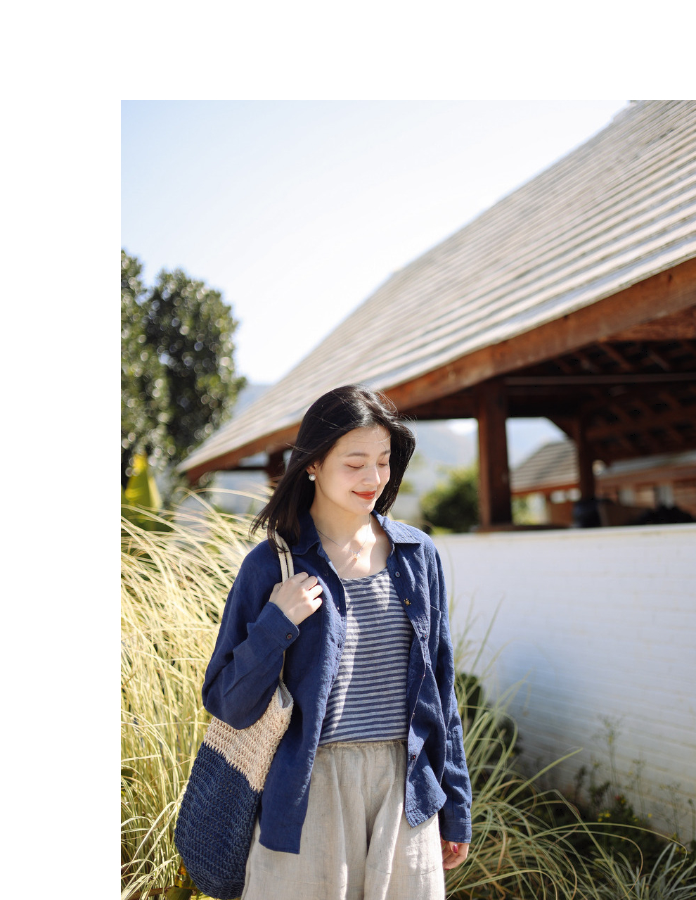 * 绽放109朵/高端盐缩酵素洗亚麻士林色织染色古铜花朵扣长袖衬衫