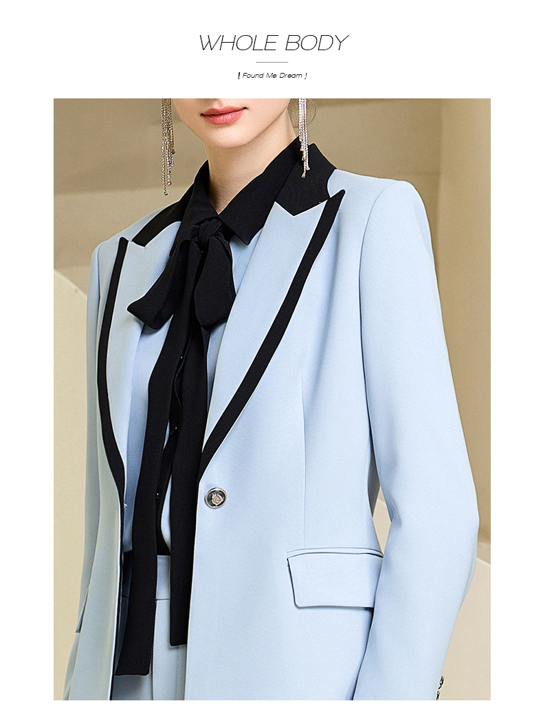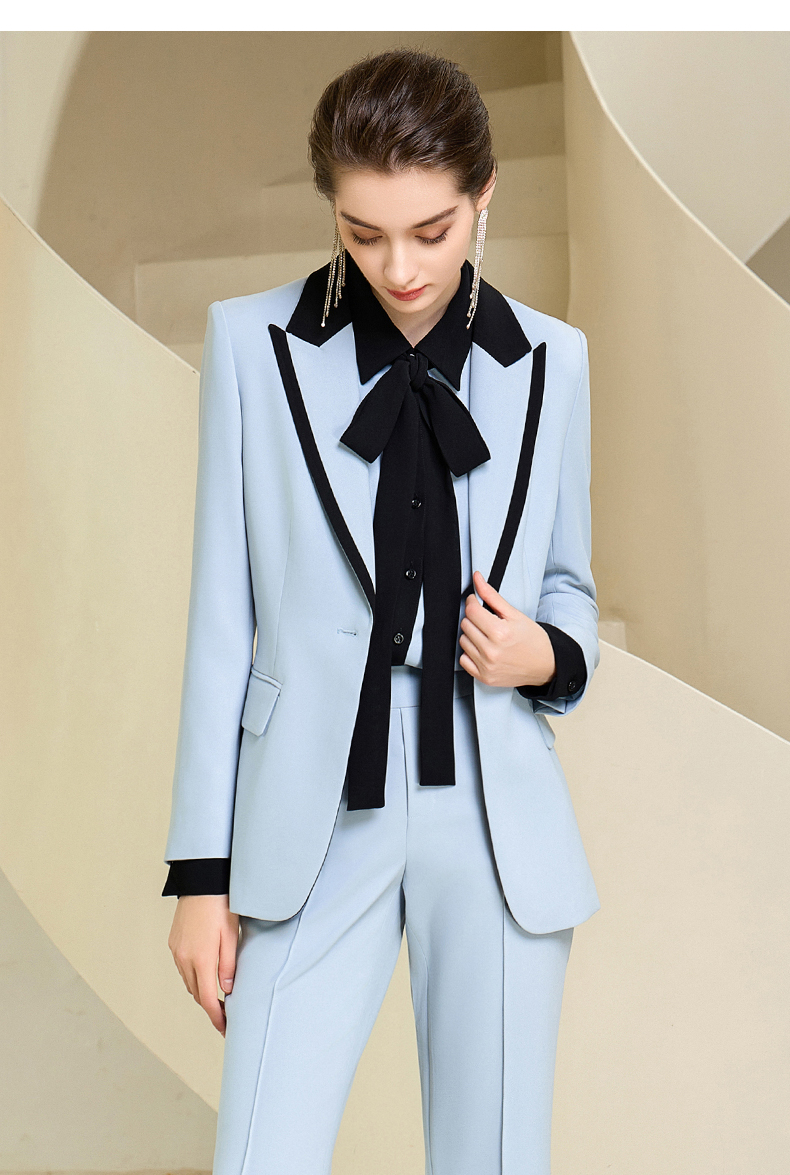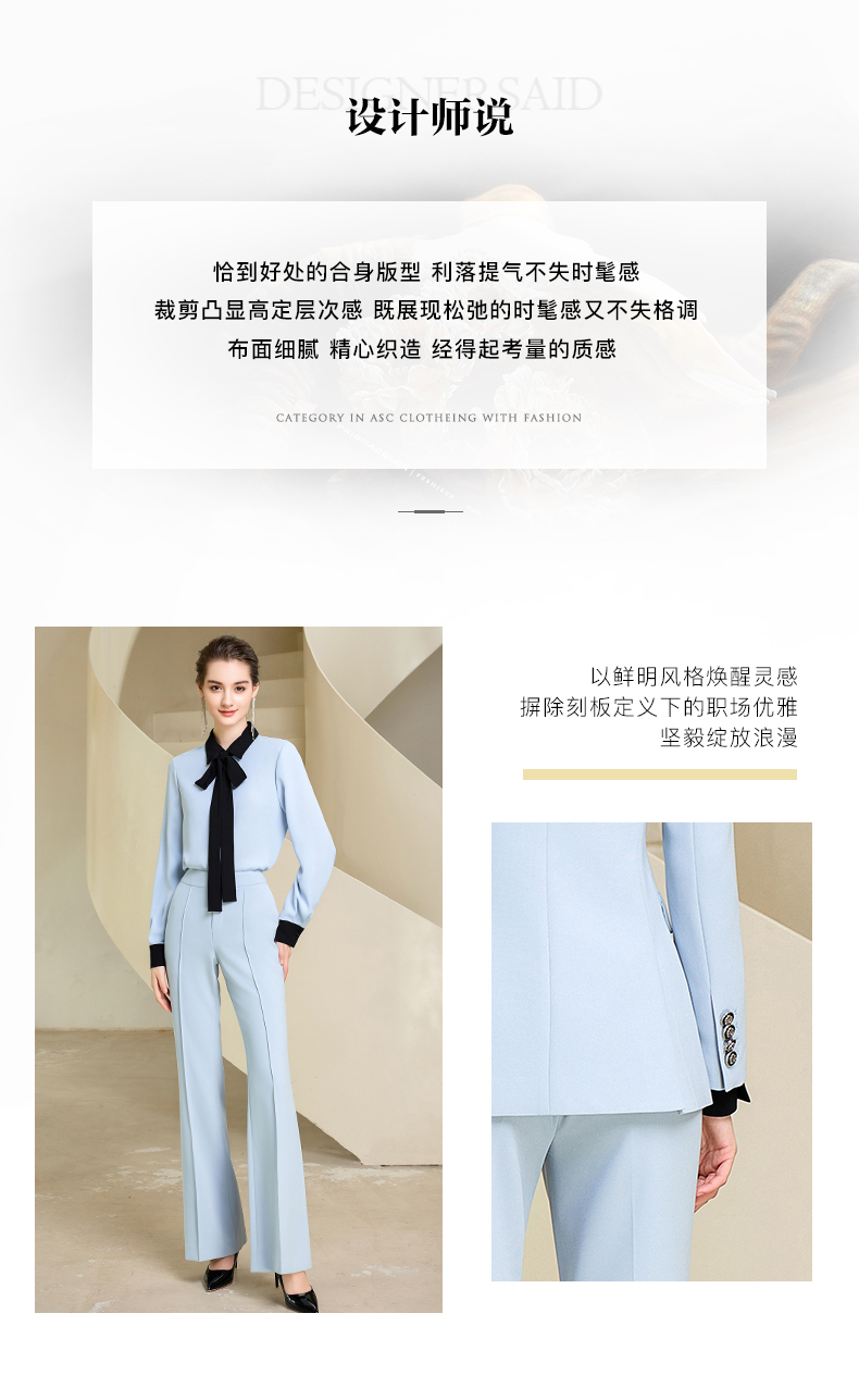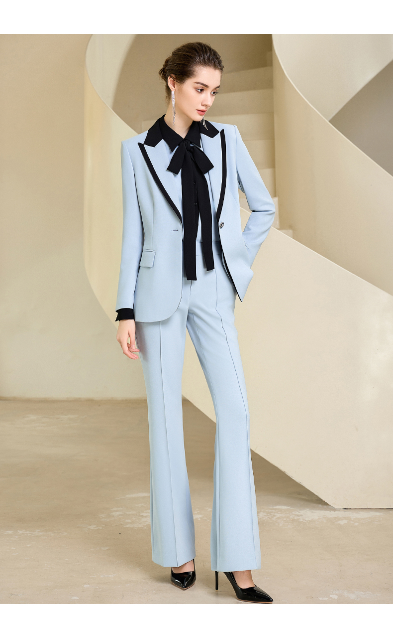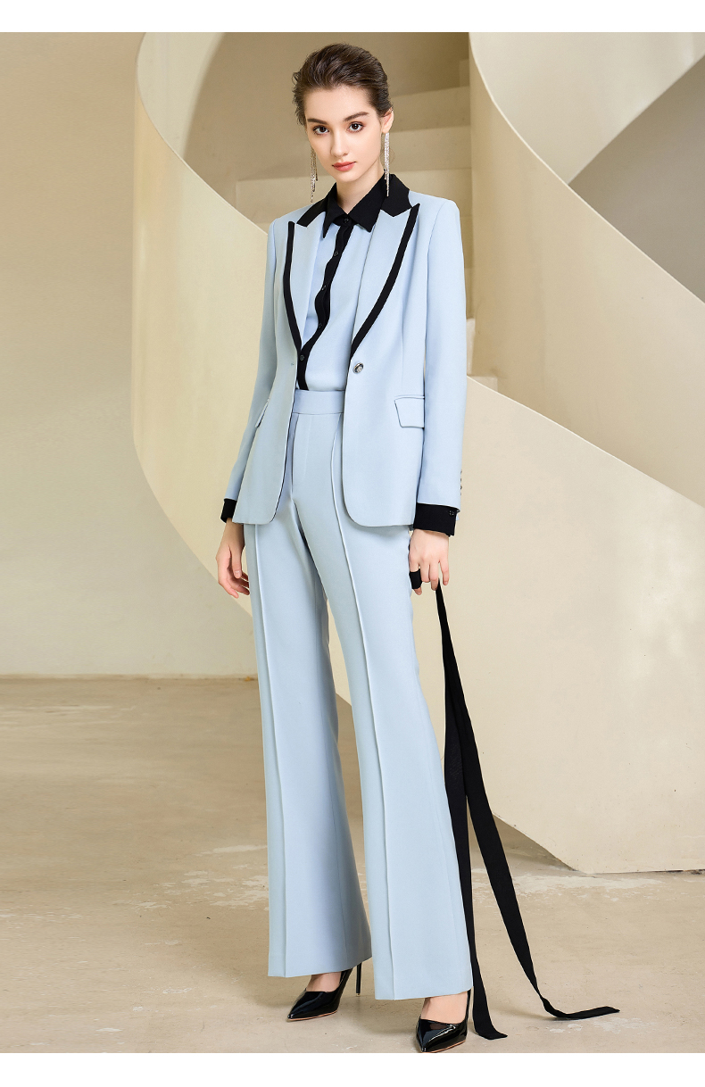 高端时尚秋季蓝色西装微喇长裤套装女西服正装