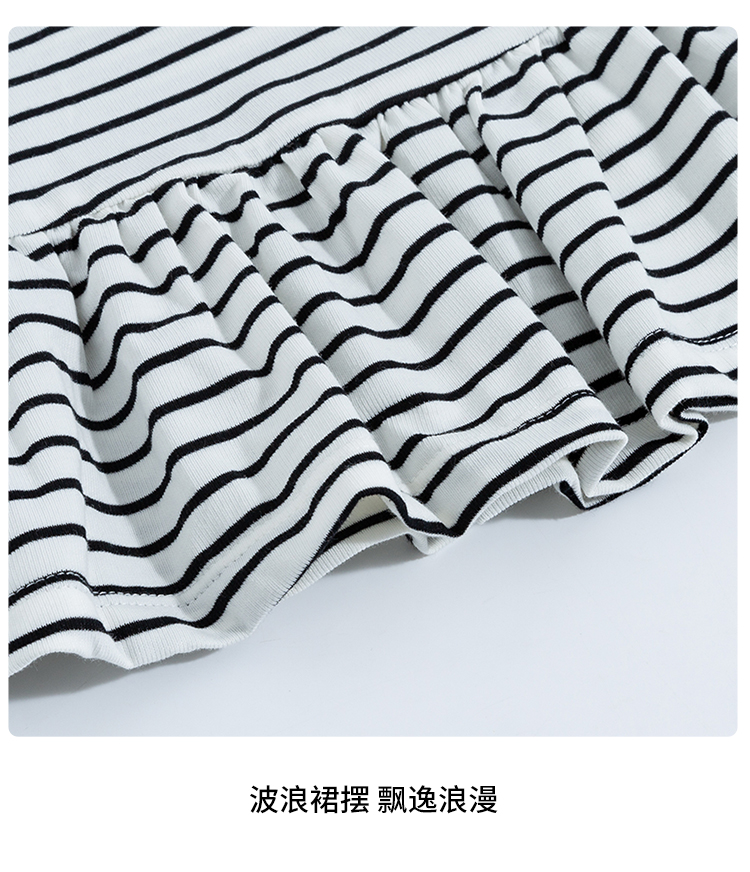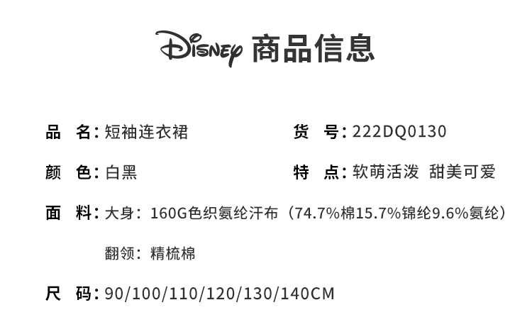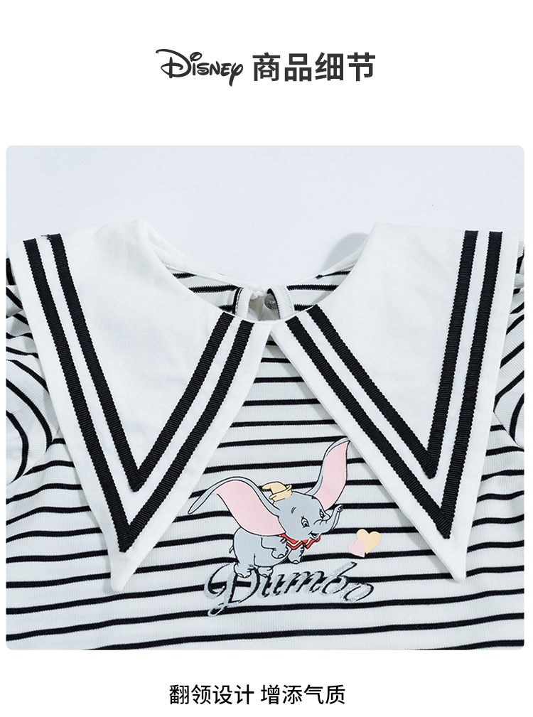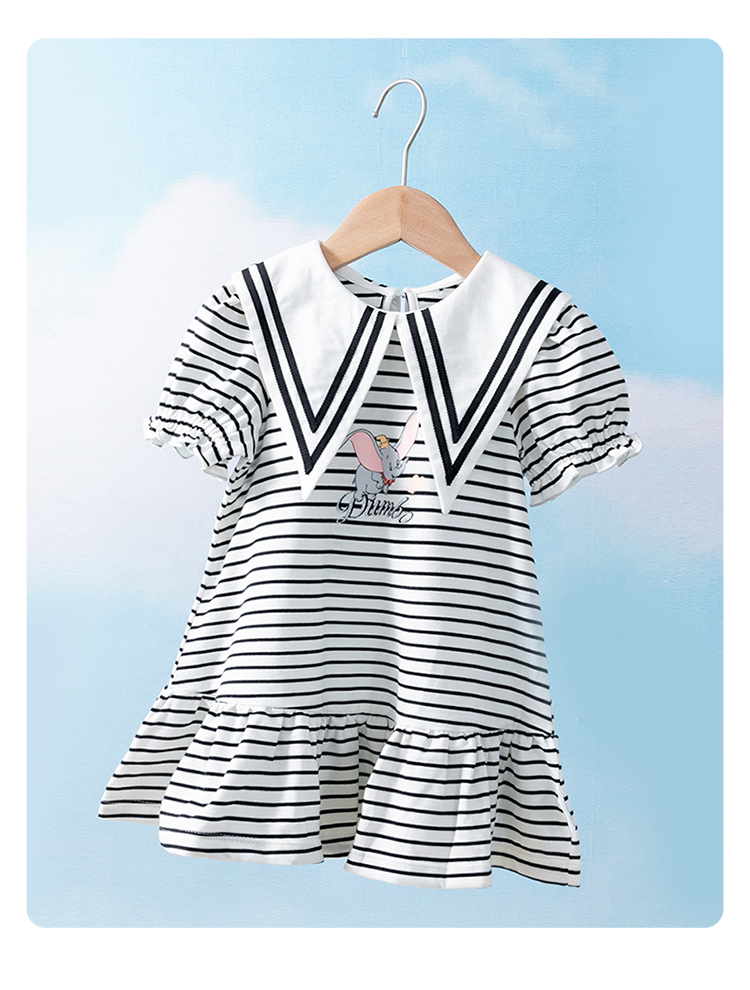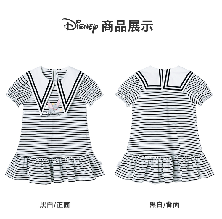 【商场同款】迪士尼童装女童短袖连衣裙洋气中大童条纹荷叶边翻尖领小飞象裙子
