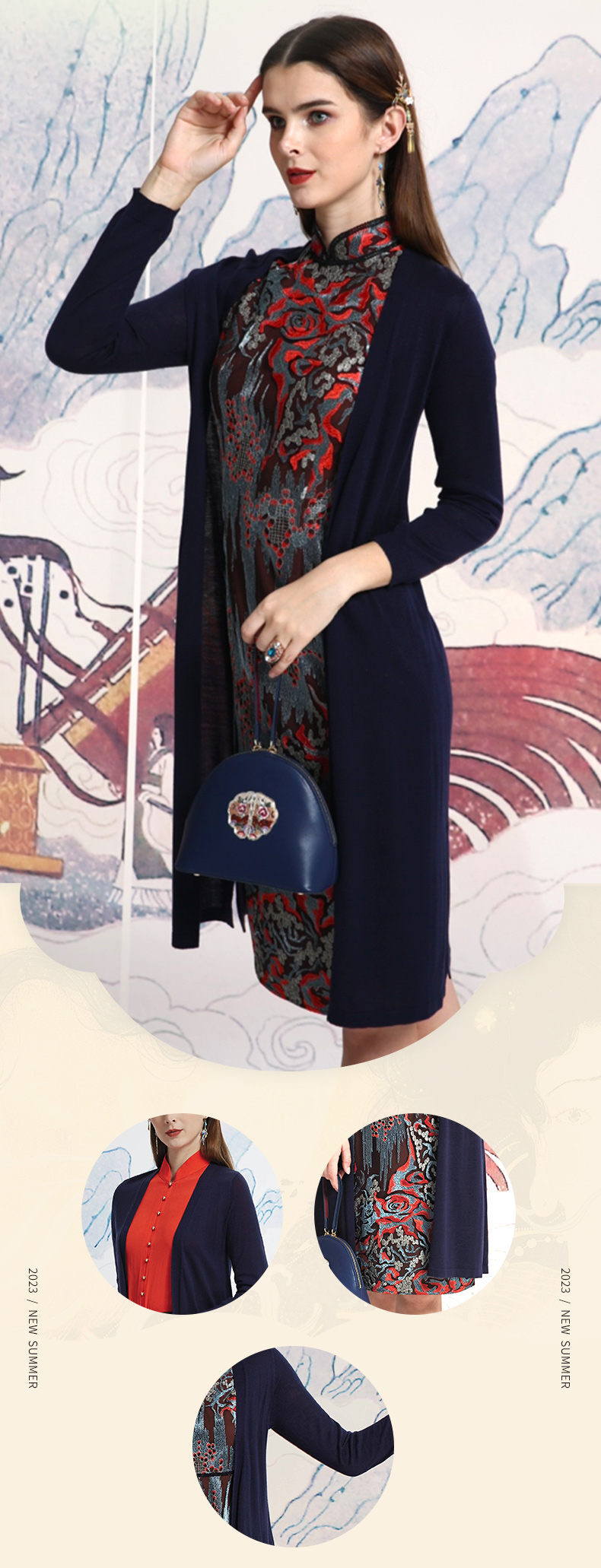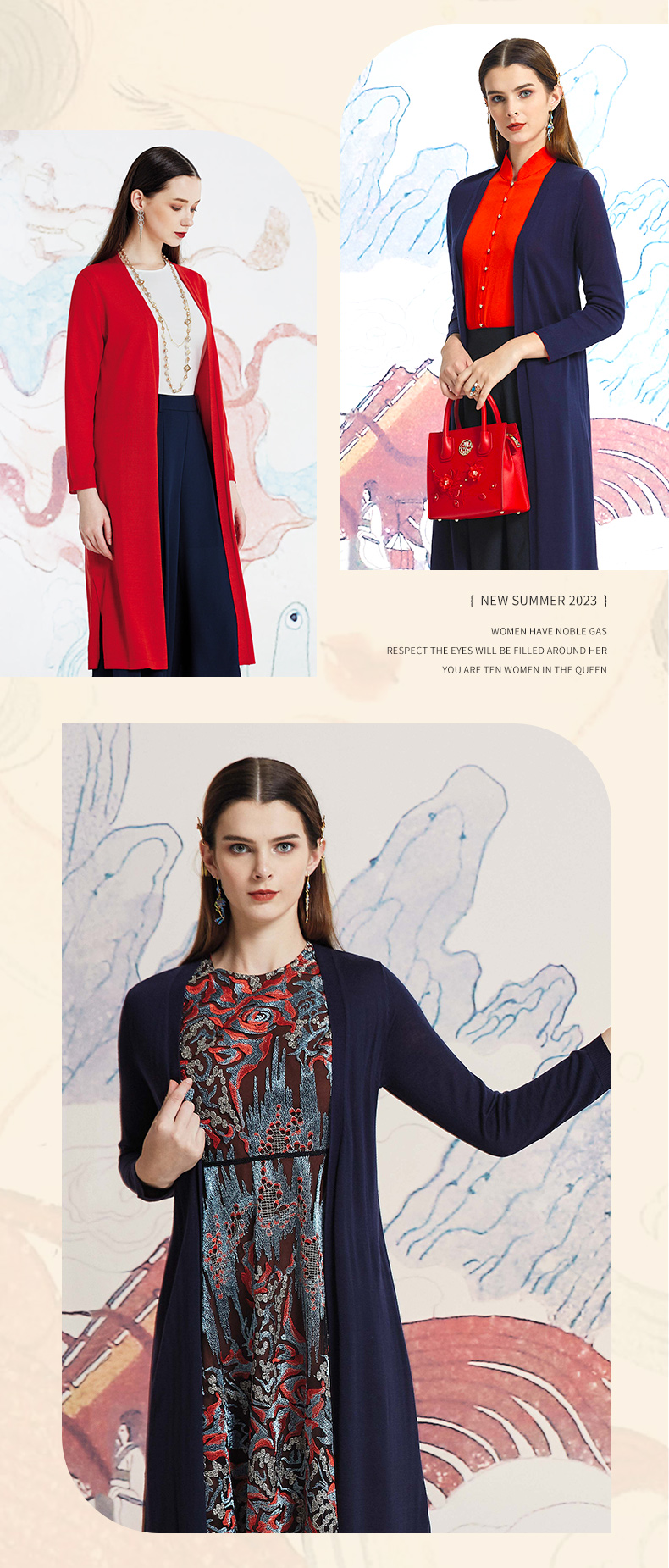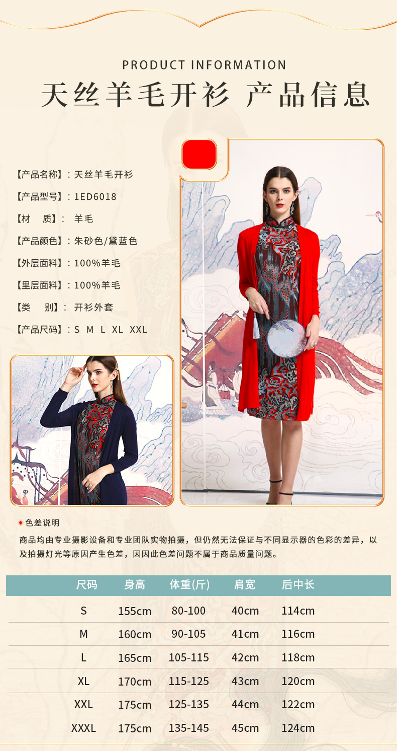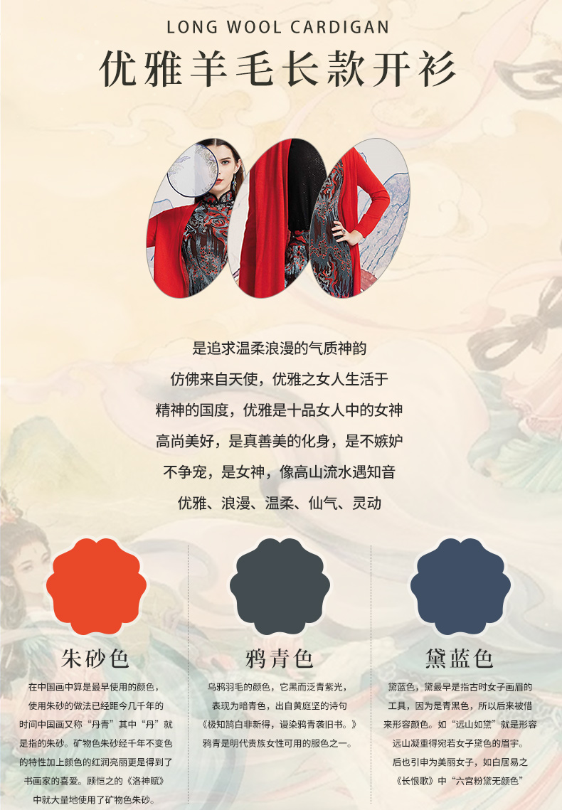 【伯妮斯茵】简约百搭中长款朱砂色、黛蓝色、石榴红色针织衫---丹青如黛--《洛神赋》1ED6018