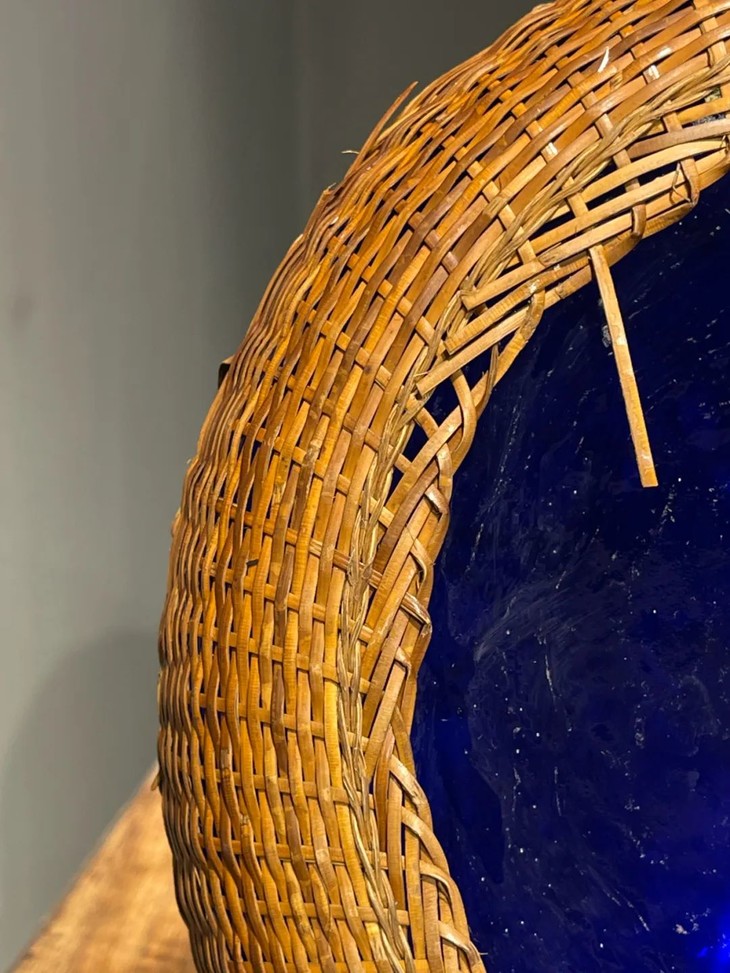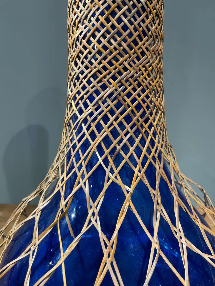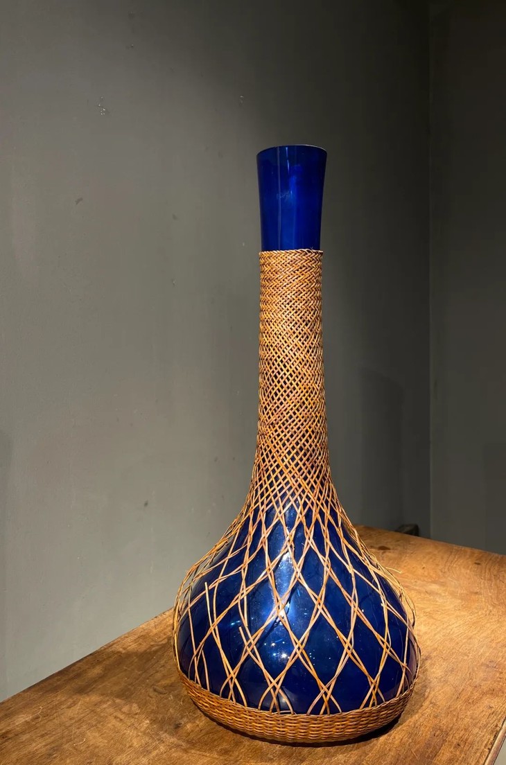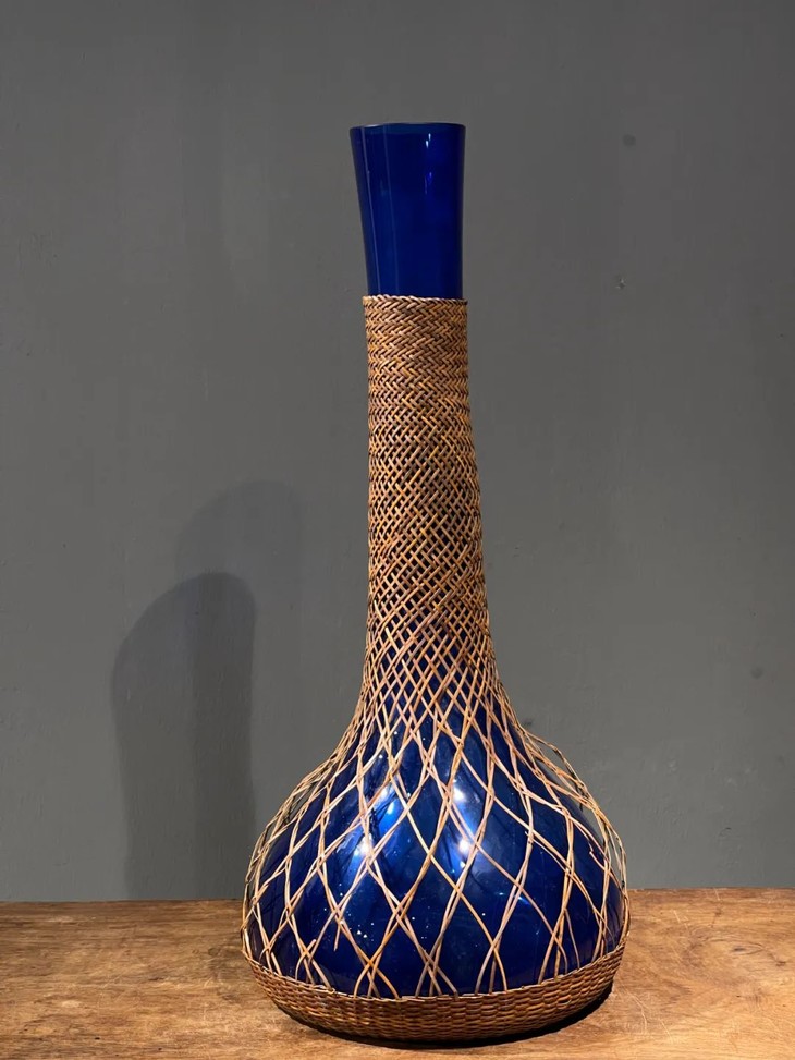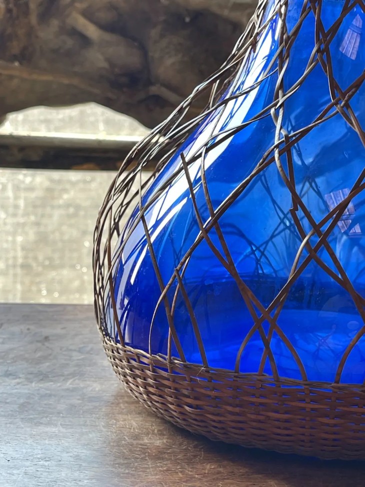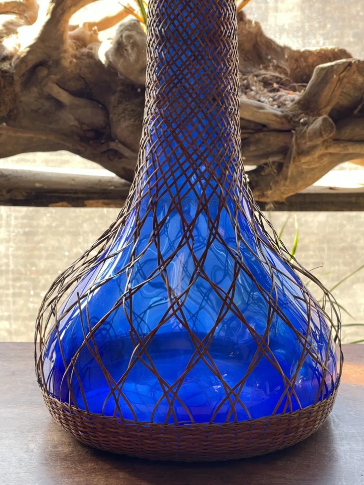 编竹护套蓝料长颈荸荠瓶