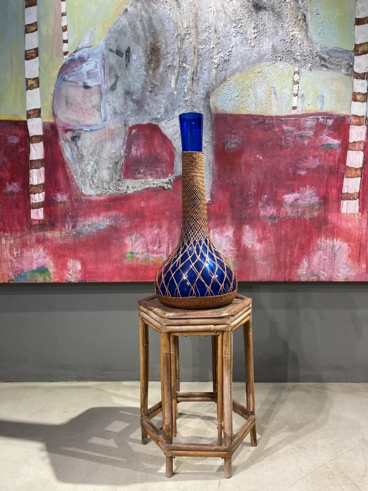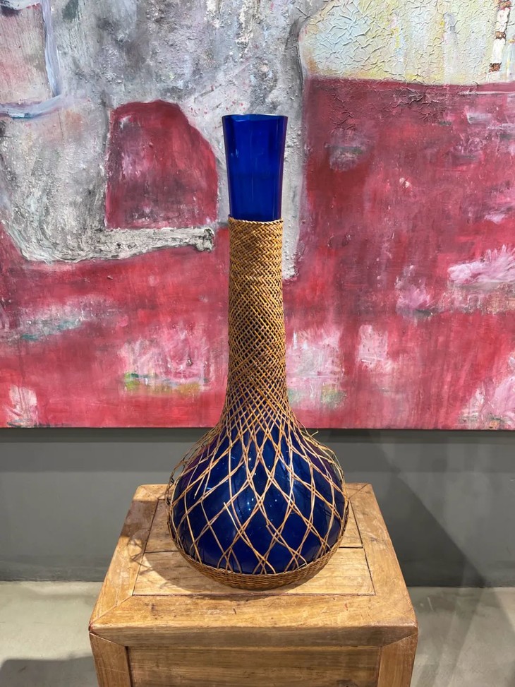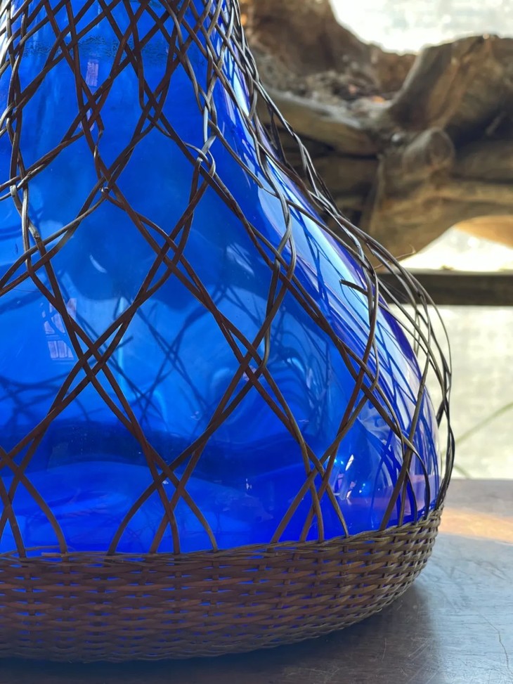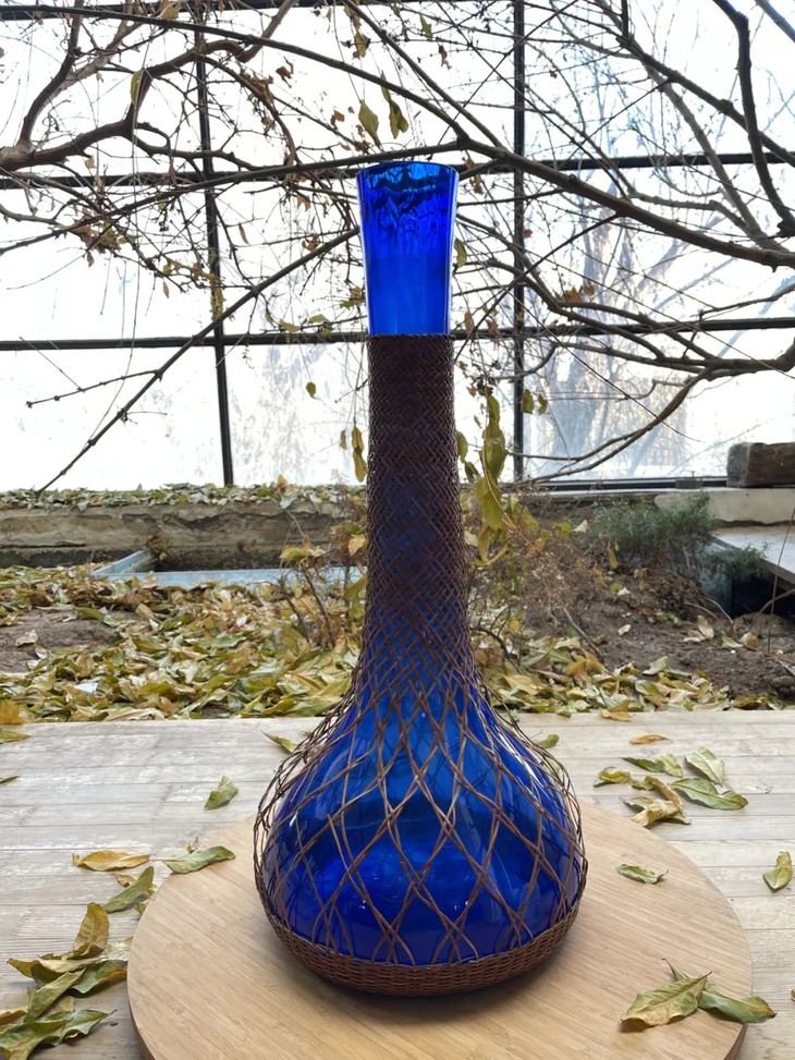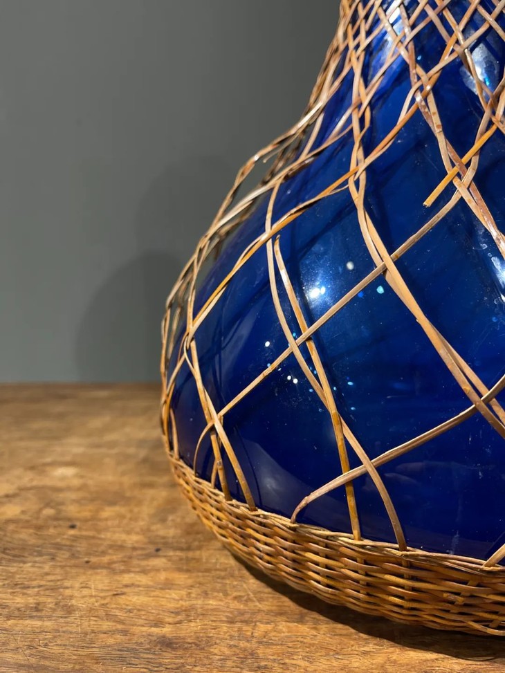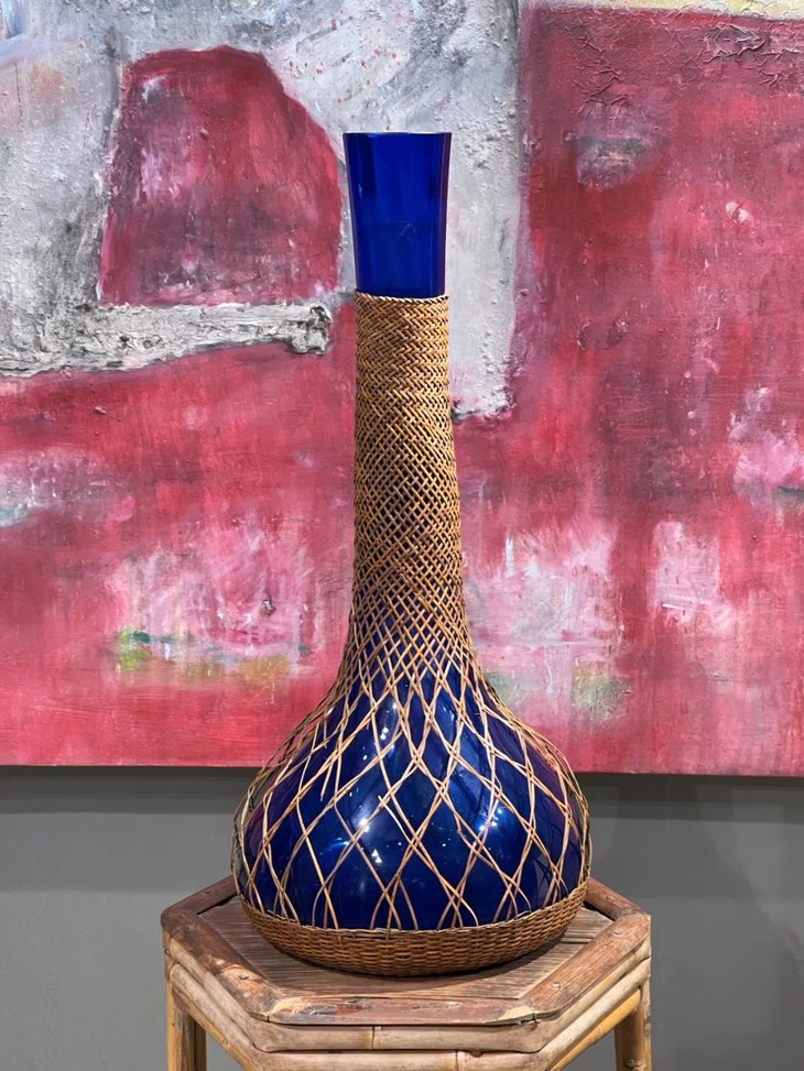 编竹护套蓝料长颈荸荠瓶