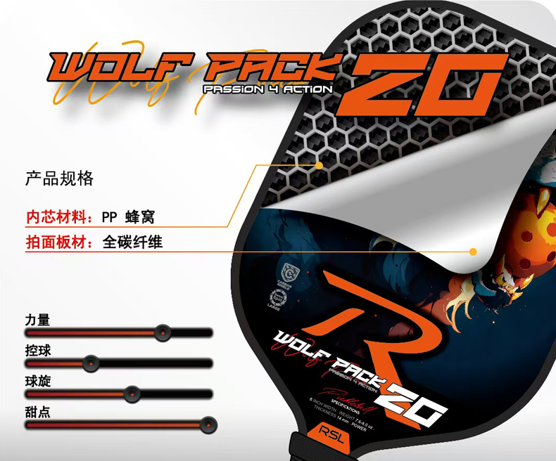 RSL亚狮龙匹克球拍Bullseye 10 球拍Wolf Pack 20匹克拍Juliet 30全碳素Romeo 40壁球拍