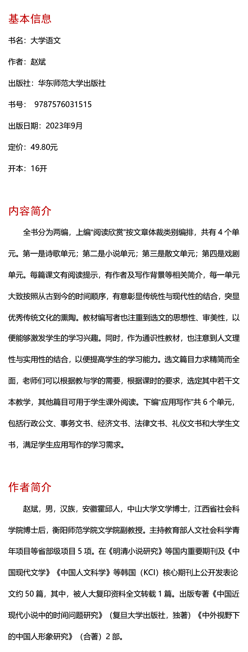 大学语文 赵斌 通识性教材 华东师范大学出版社