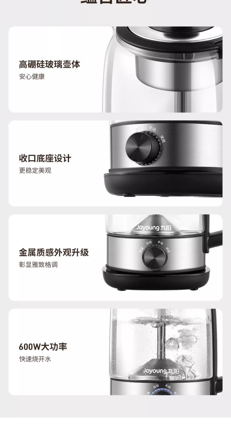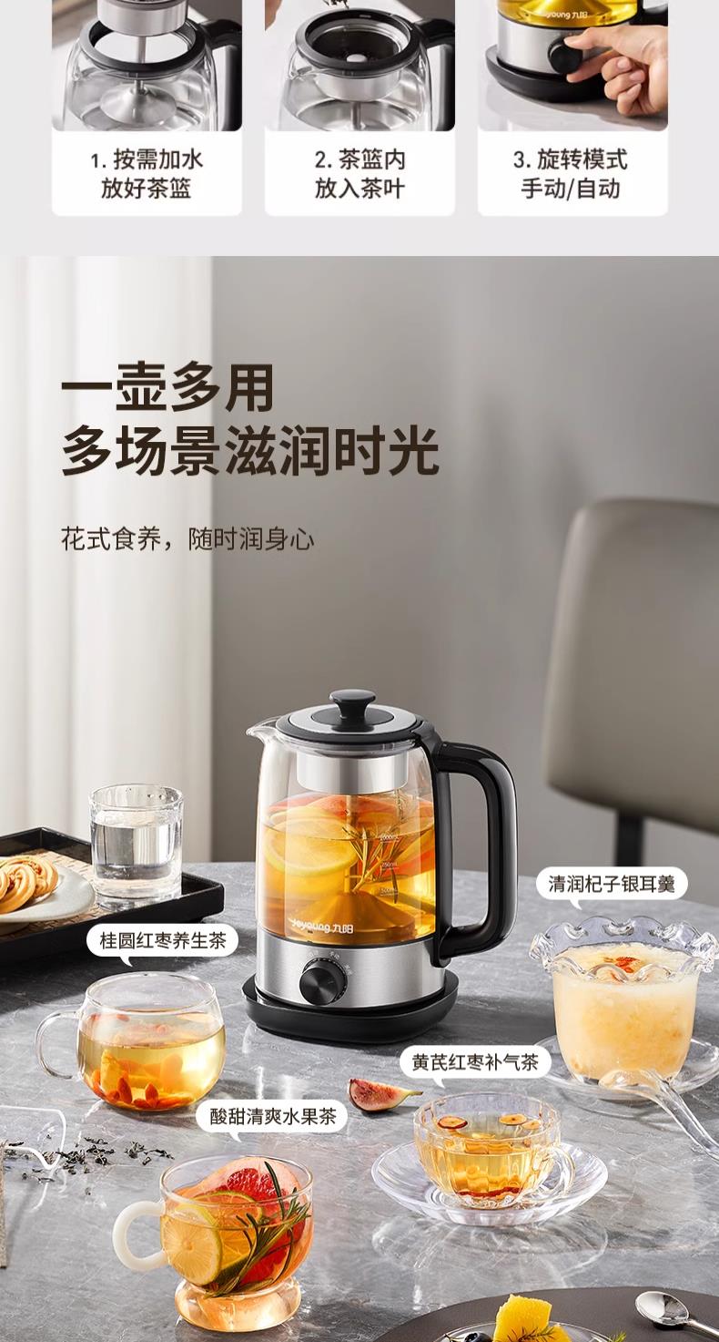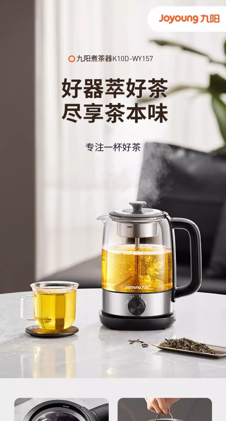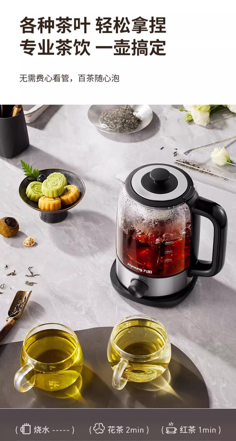 九阳煮茶器喷淋式煮茶壶1.0L1.5L升家用养生壶全自动泡茶壶蒸汽蒸茶器