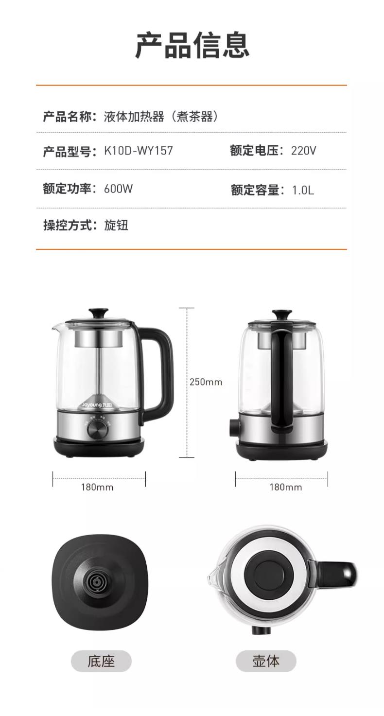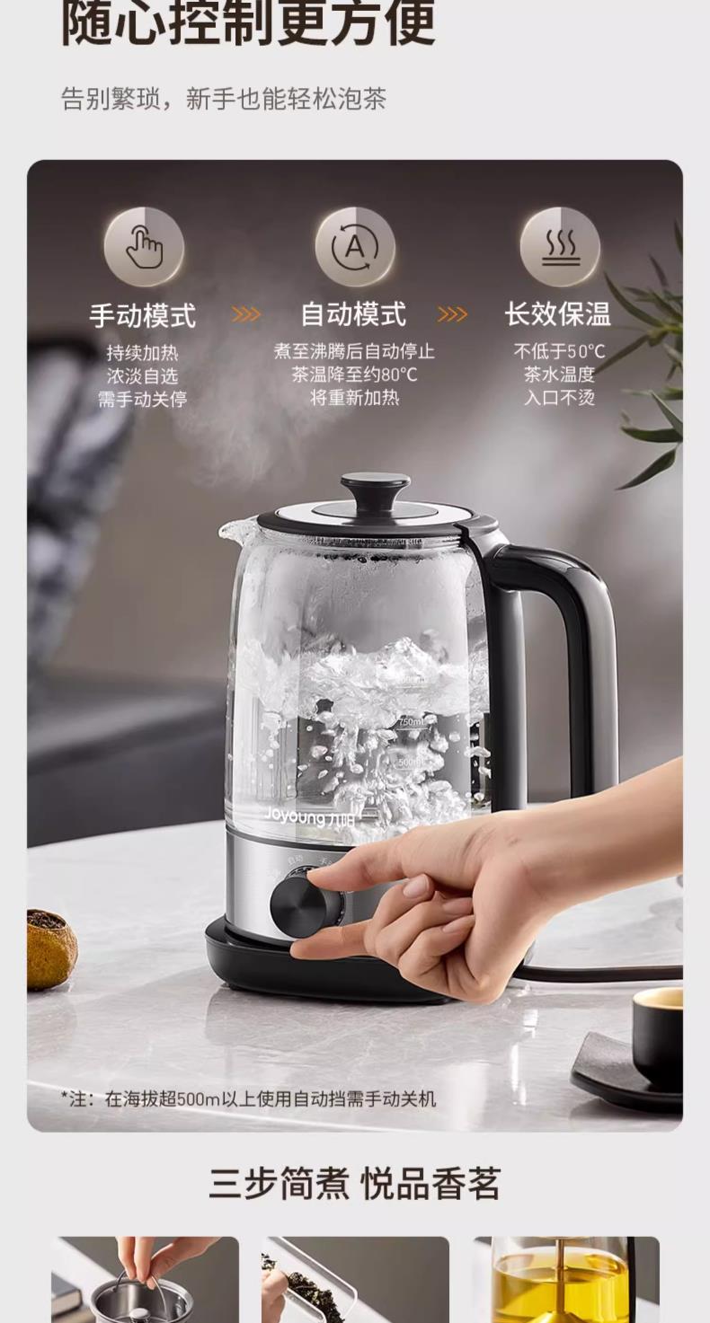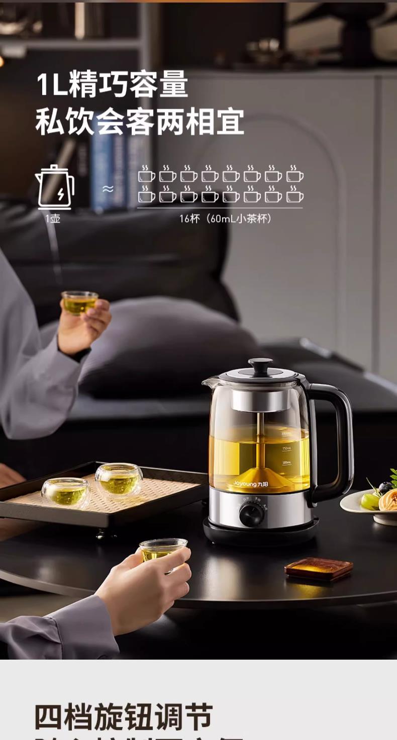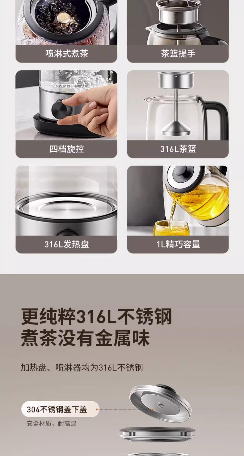 九阳煮茶器喷淋式煮茶壶1.0L1.5L升家用养生壶全自动泡茶壶蒸汽蒸茶器