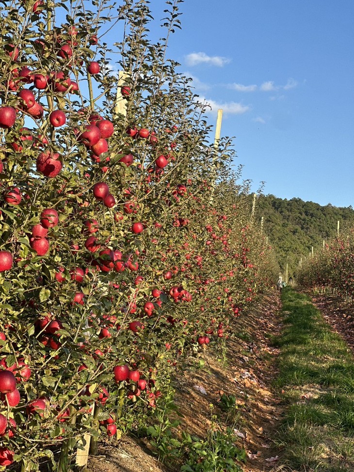 更绝的是种养一体,自有养羊场的羊粪发酵后混着有机肥喂树,再加上长日照、大温差的产区buff,糖分和脆度直接拉满,这才养出外皮全红、汁水爆棚的好苹果!