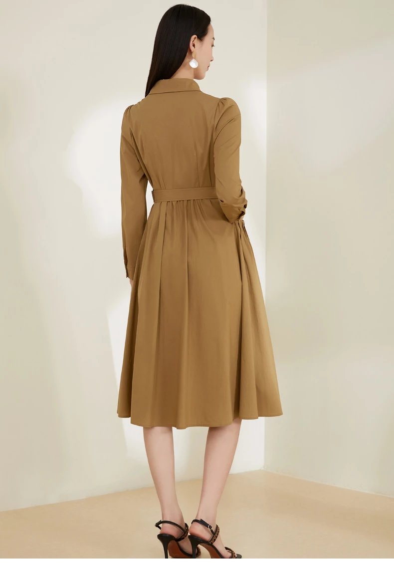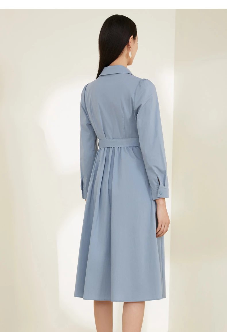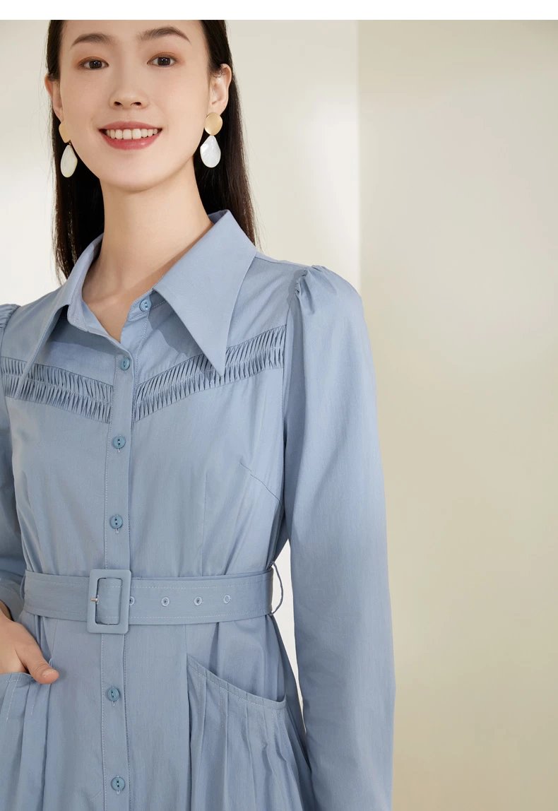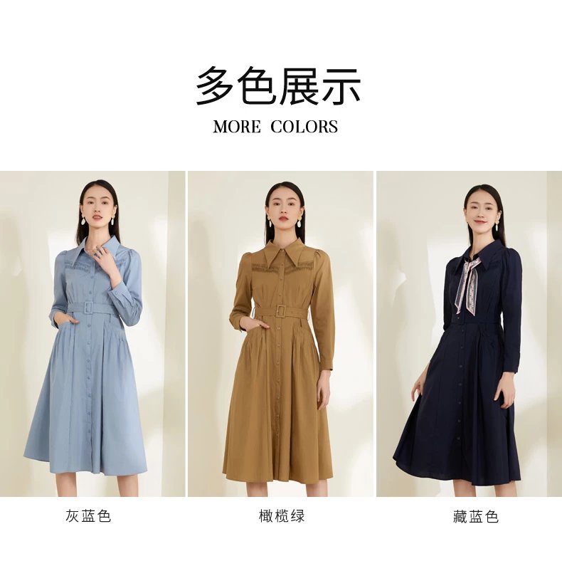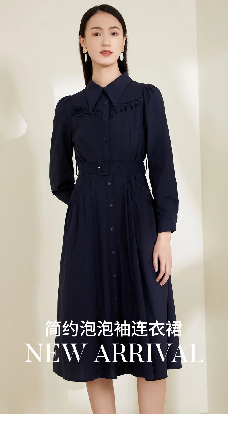 玳莎泡泡袖连衣裙2022春季上新款气质收腰显瘦百搭长袖衬衫式连衣裙 CA35301