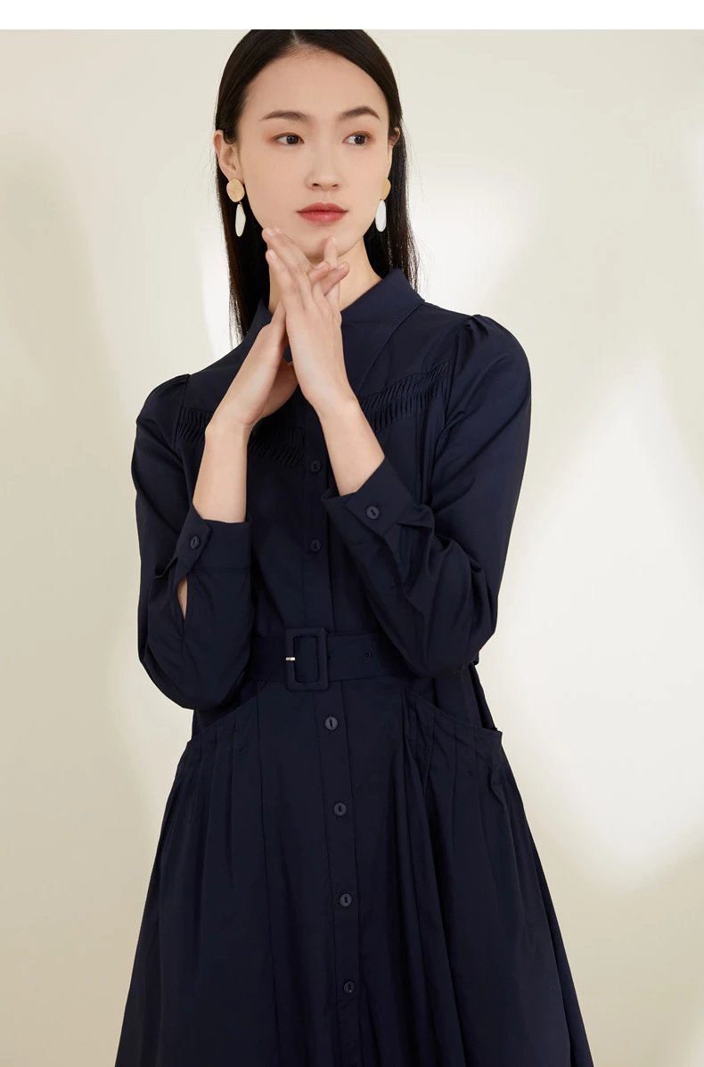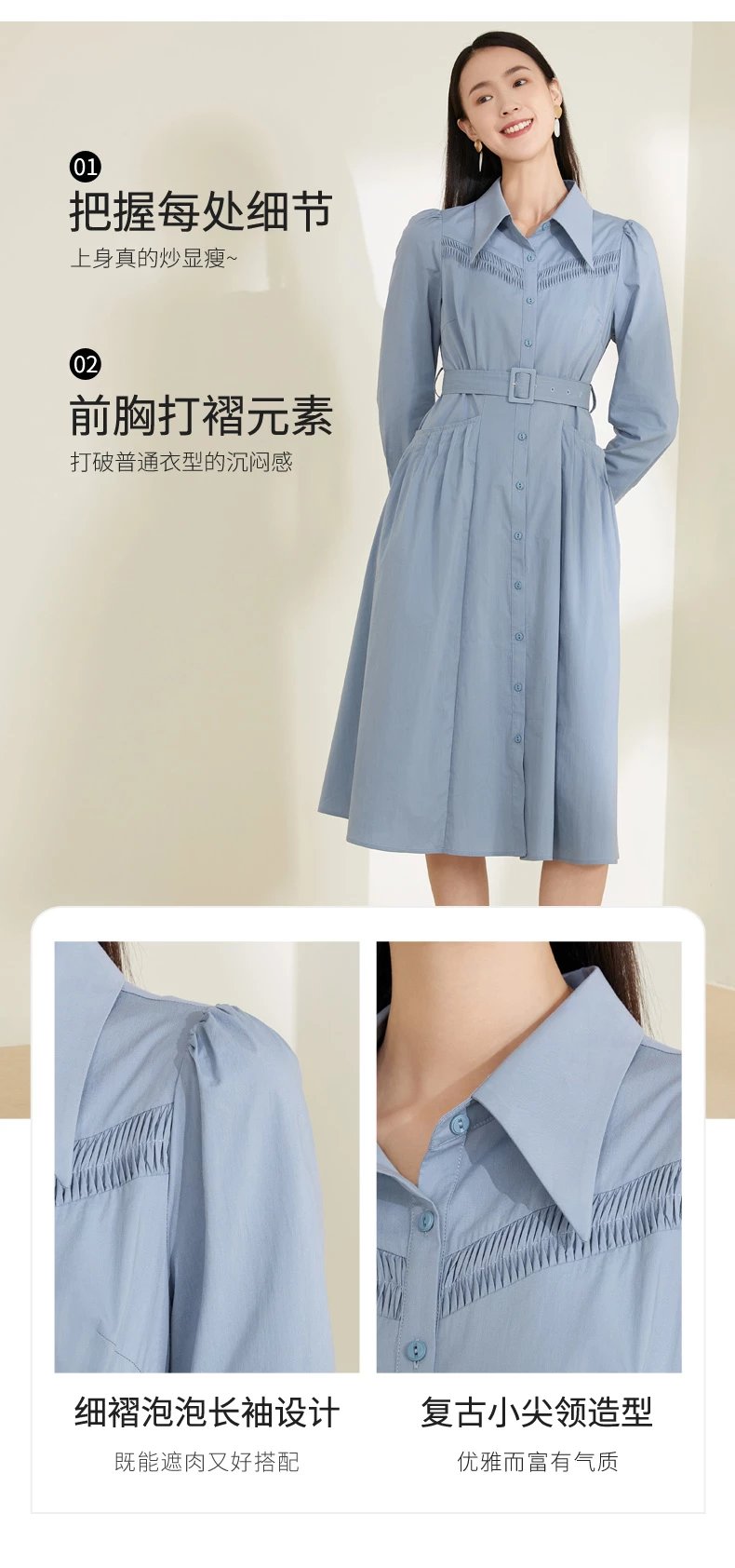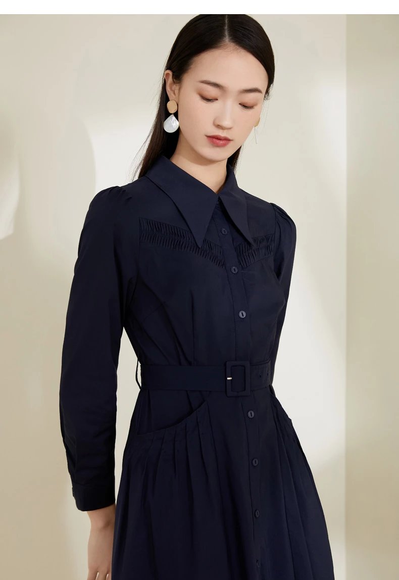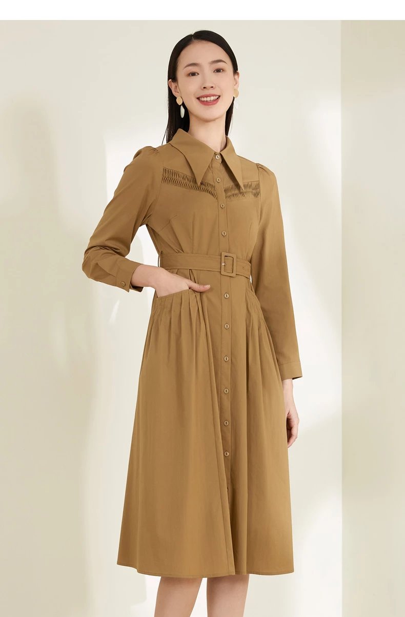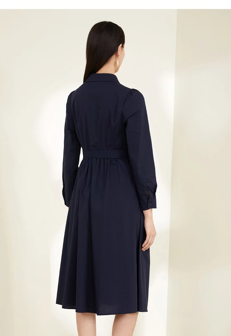 玳莎泡泡袖连衣裙2022春季上新款气质收腰显瘦百搭长袖衬衫式连衣裙 CA35301