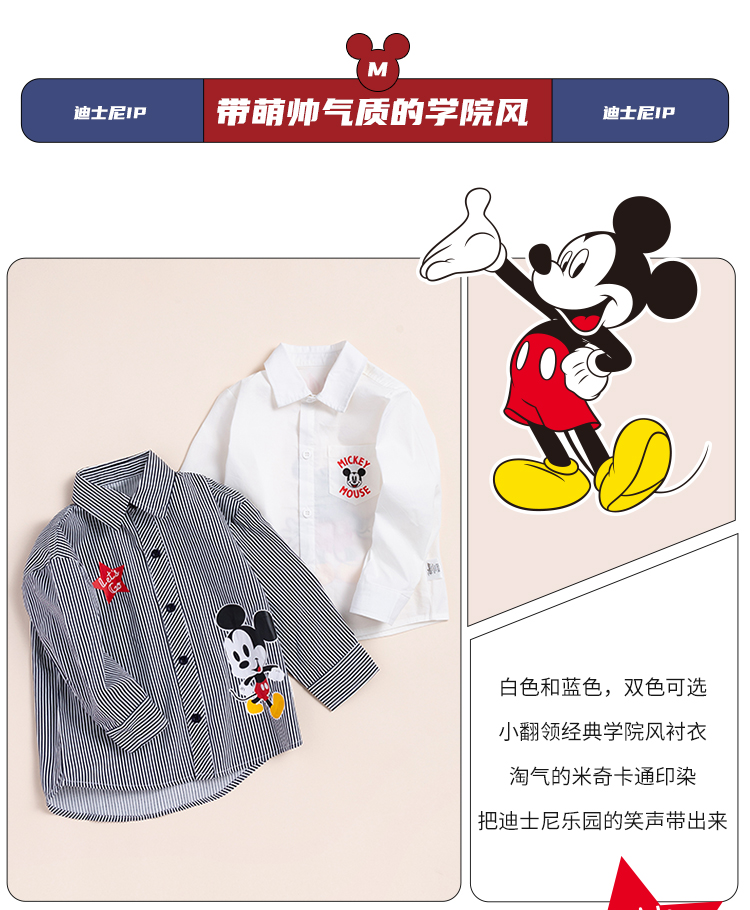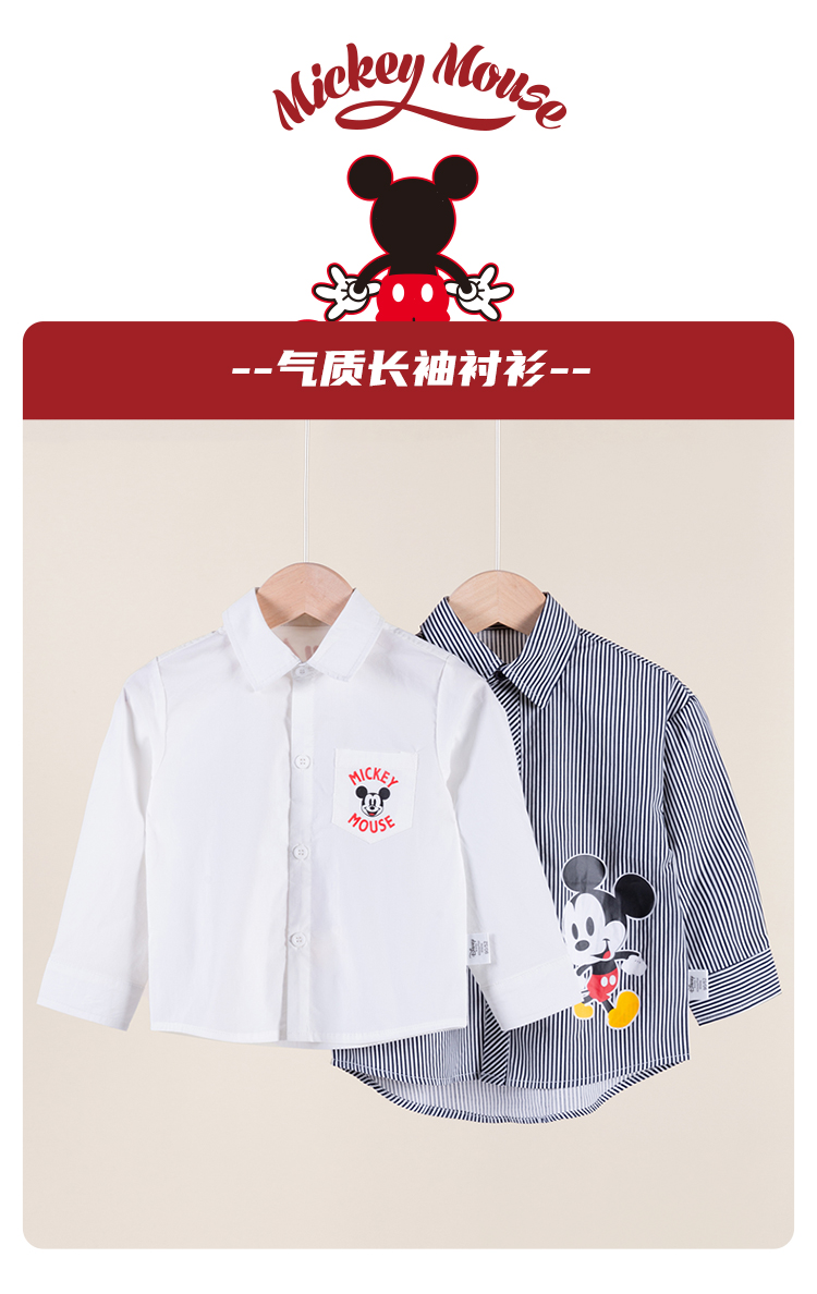 迪士尼男童儿童春秋帅气潮长袖衬衫翻领polo衫