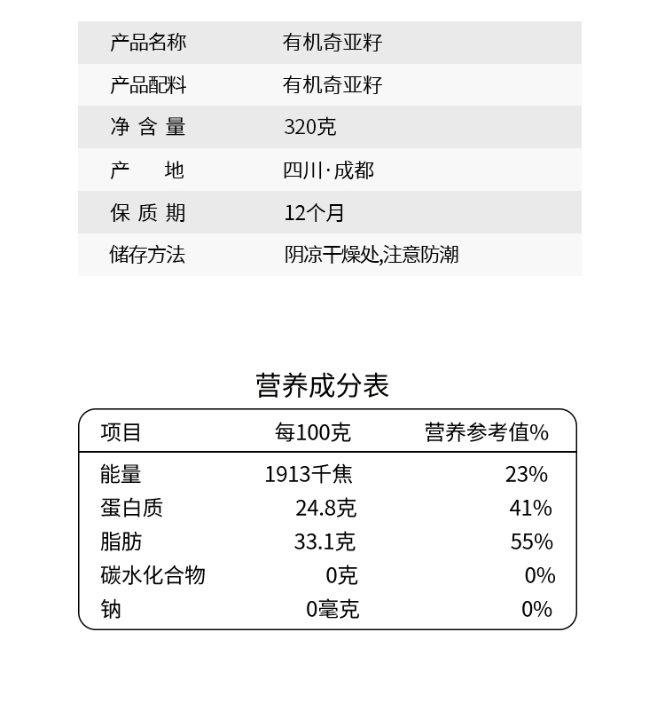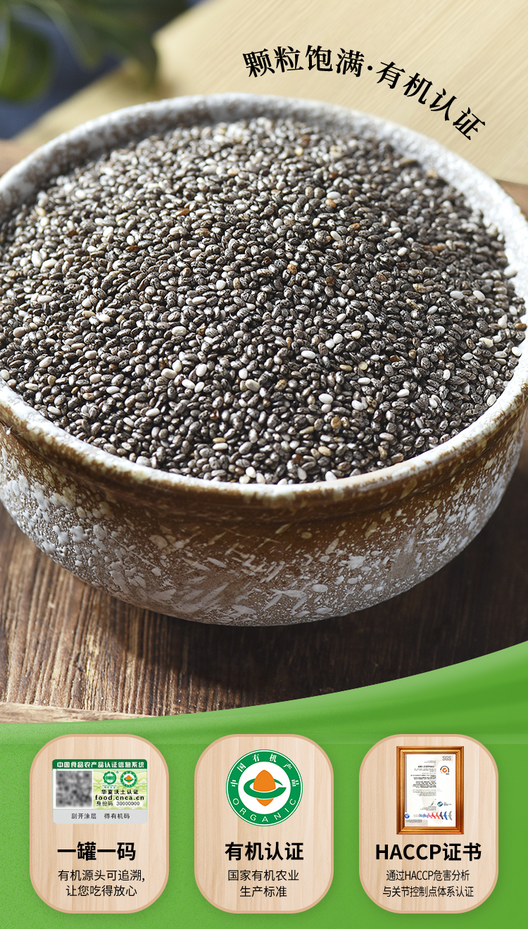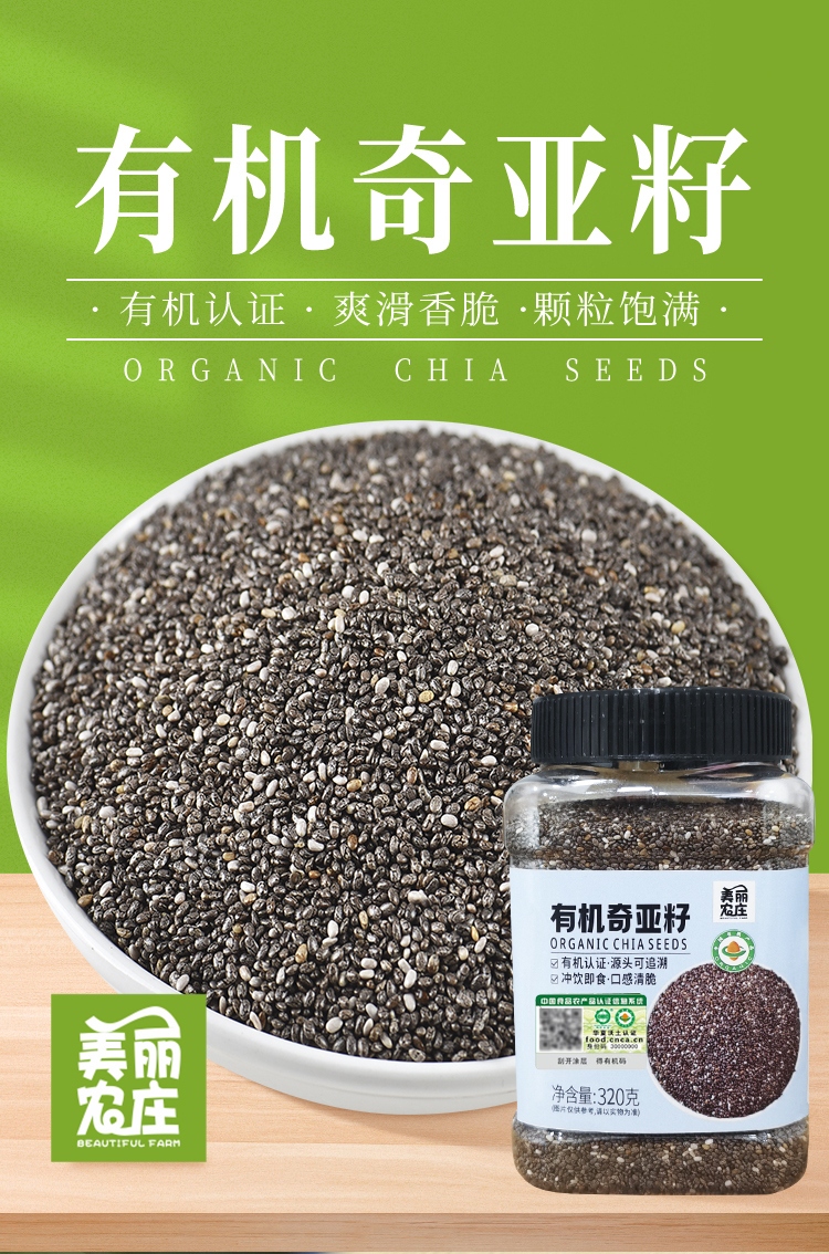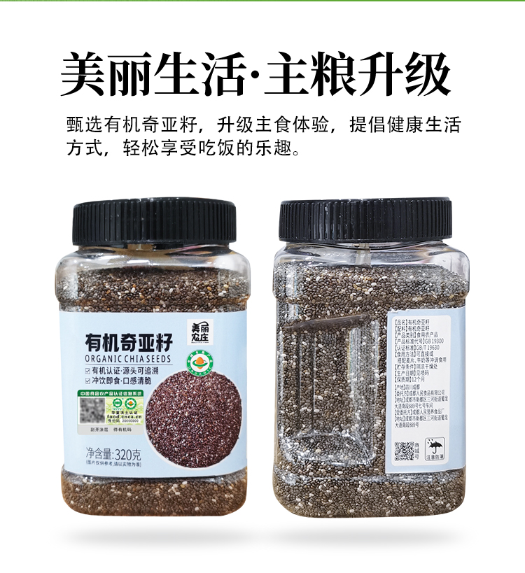 美丽农庄有机奇亚籽 饱腹代餐食品高蛋白质冲饮搭配320g/罐