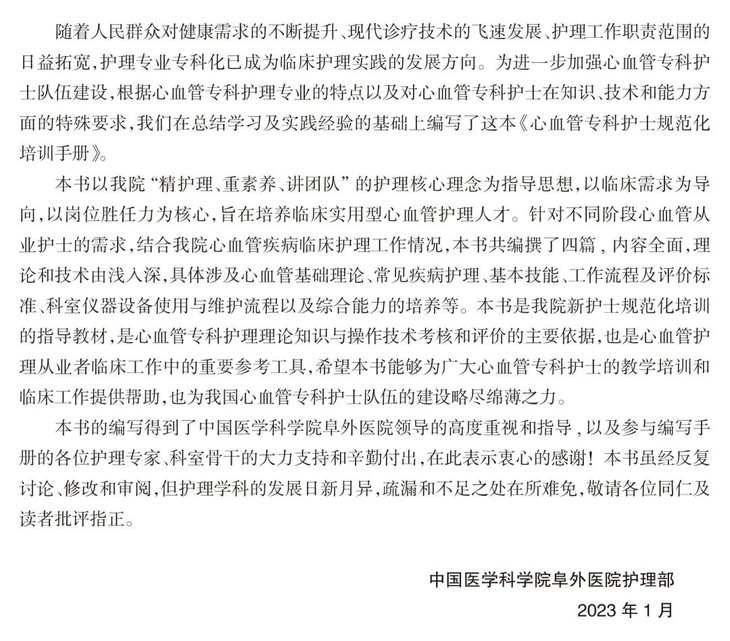 书名:心血管专科护士规范化培训手册