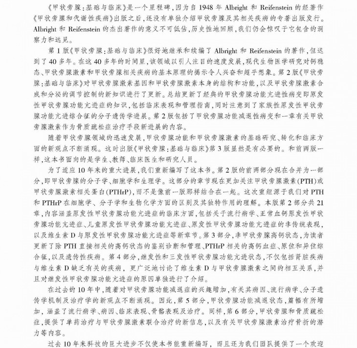 权威性:编者为国际著名内分泌学专家,其将数十年从事甲状旁腺及相关疾病的研究工作进行了高度总结
