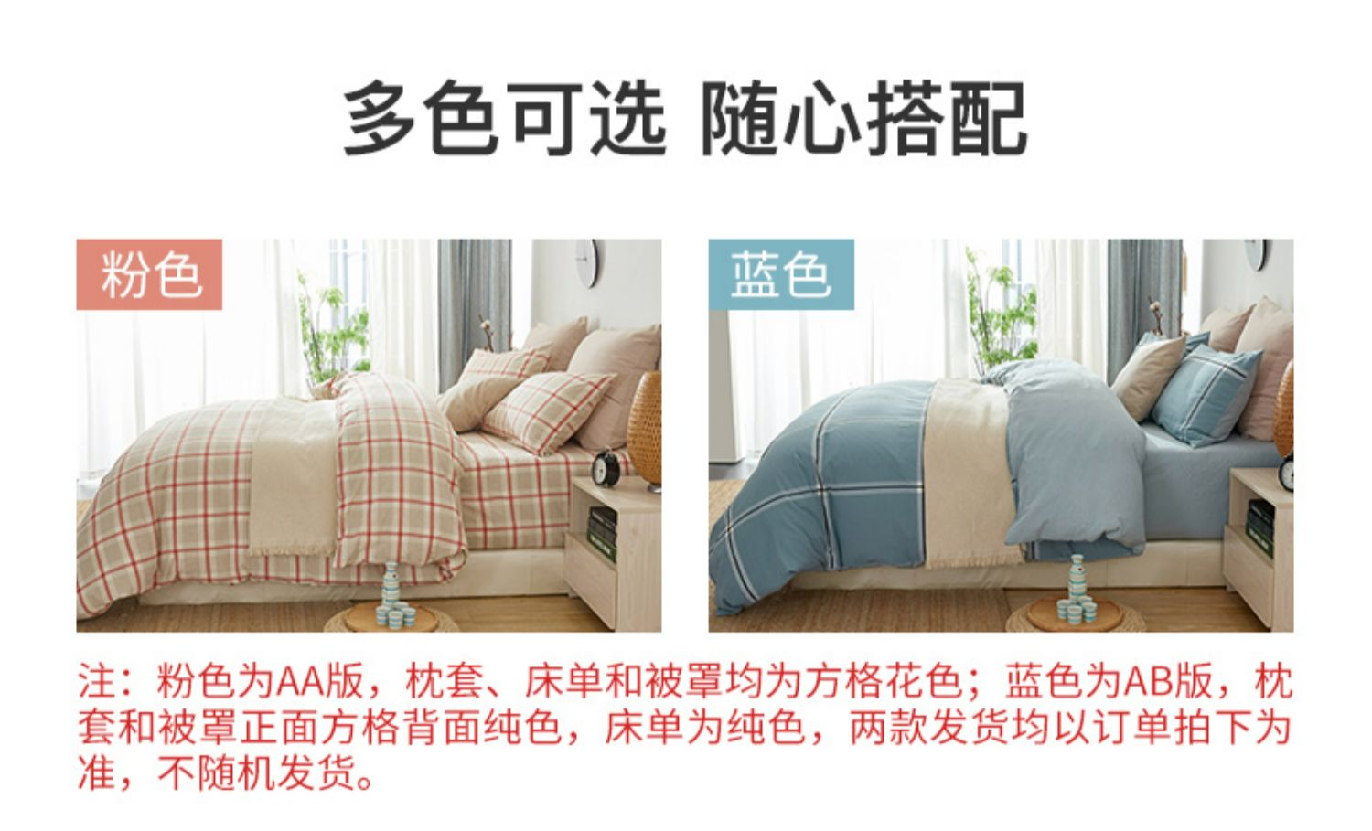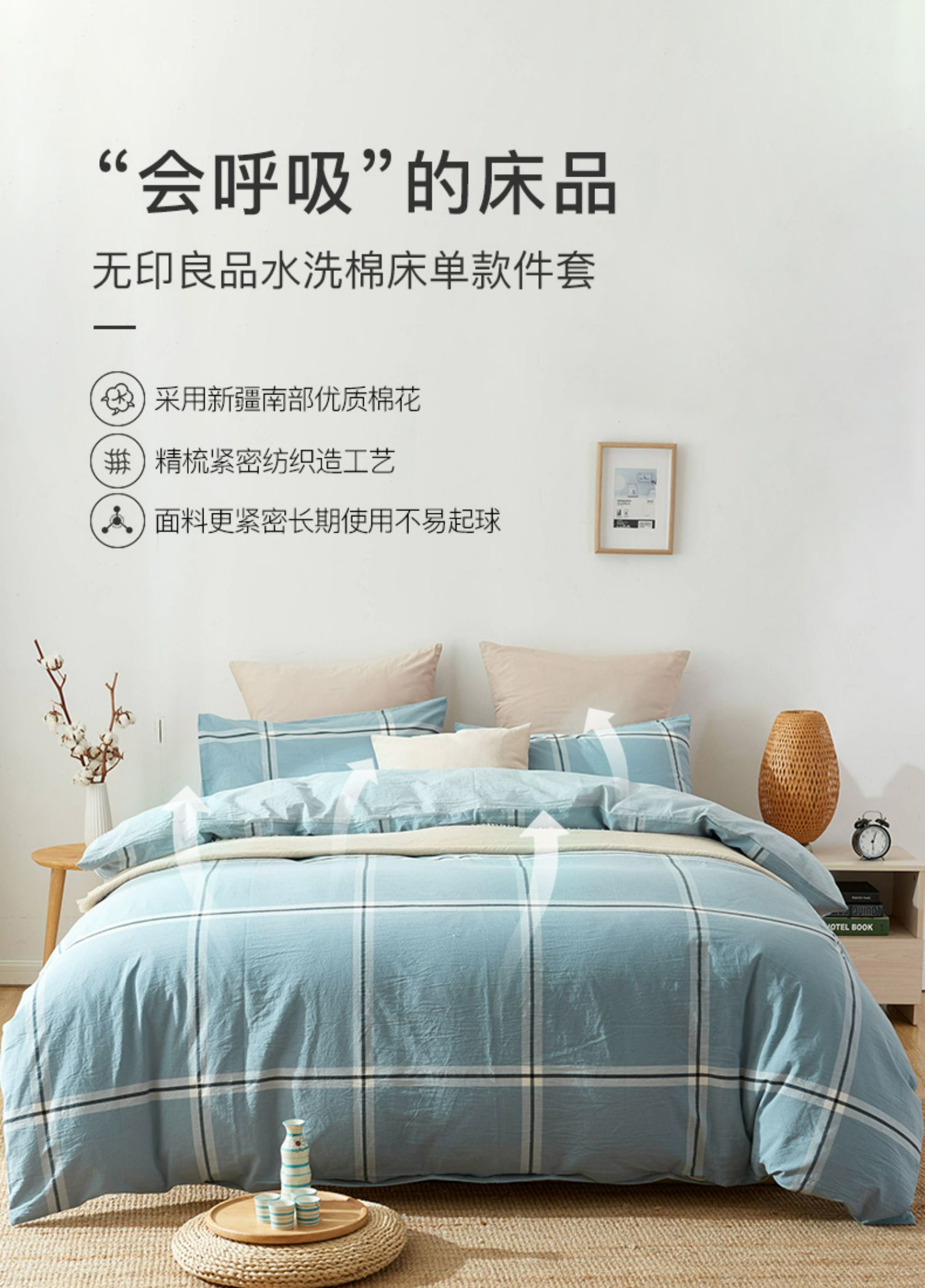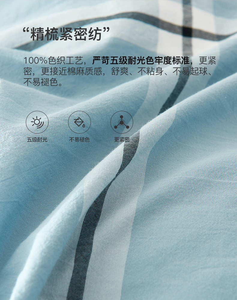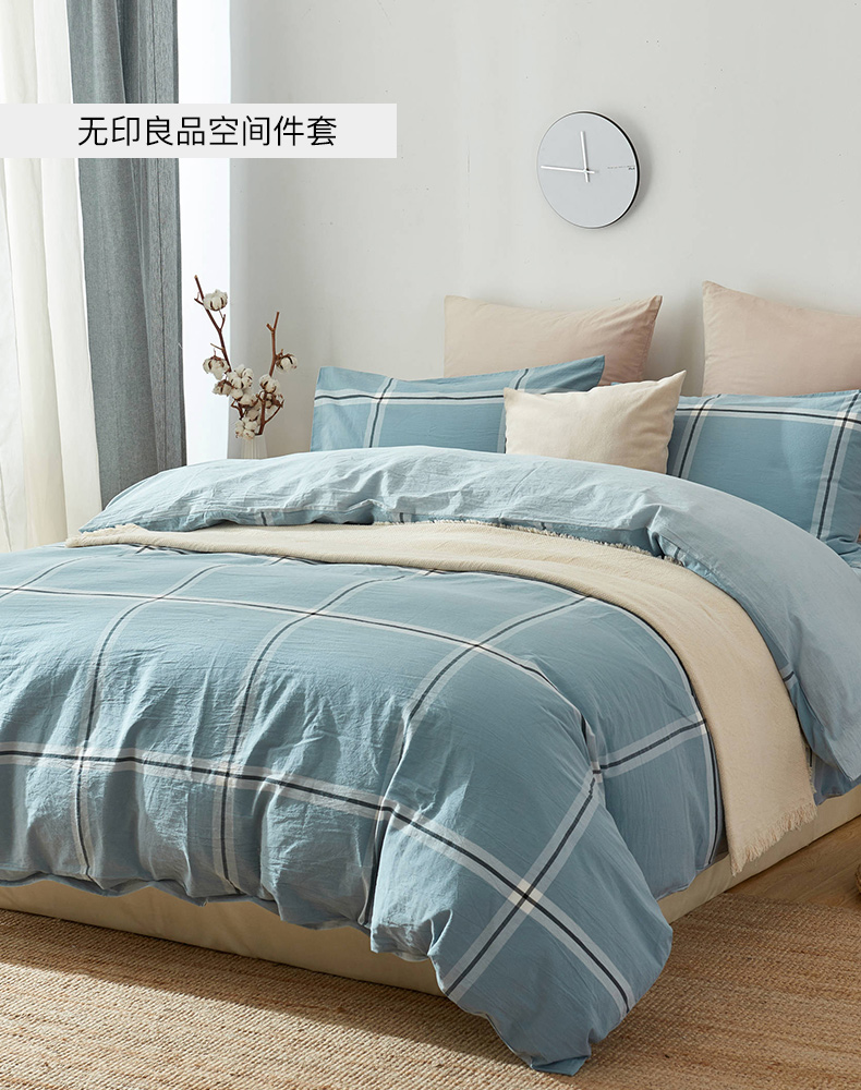 空间系列三四件套纯棉格子条纹床单被套枕套 无印良品