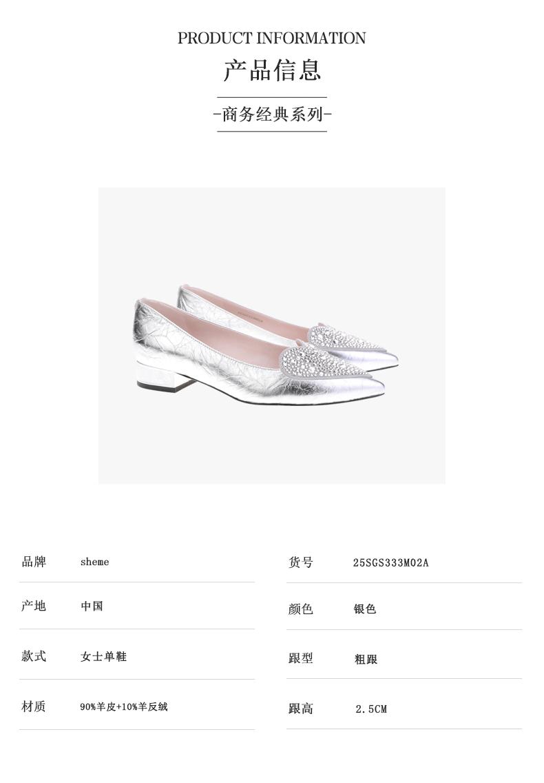 sheme手抓纹羊皮心型水晶经典优雅日常百搭女士单鞋可定制